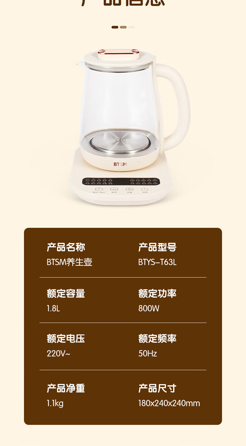 BTSM暖芯壶养生壶 象牙色