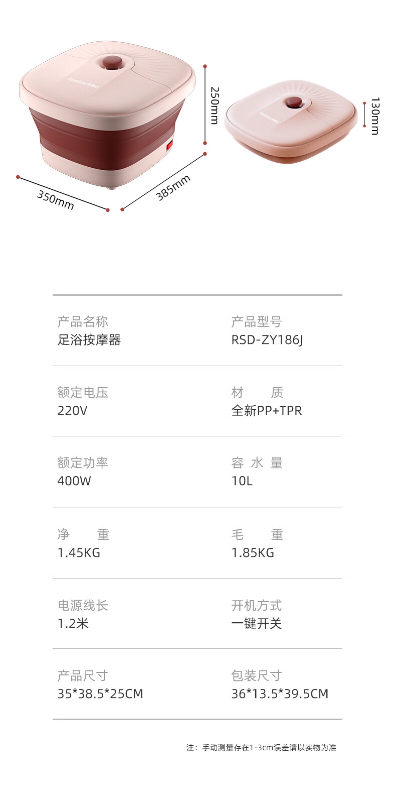 荣事达 折叠足浴盆 RSD-ZY186J 粉色