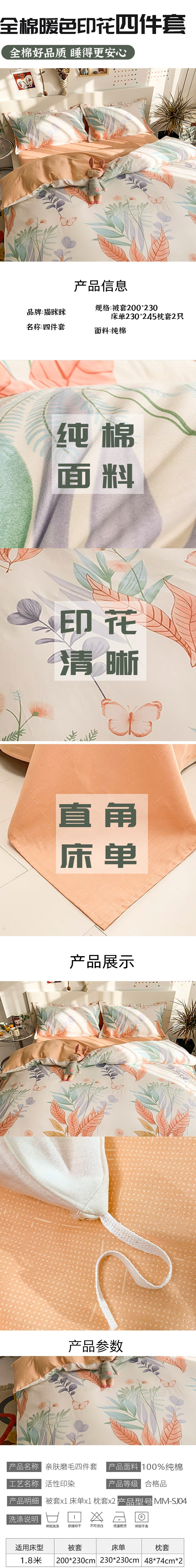 猫眯眯MM-SJ04花曳纯棉四件套1.8m床200x230 花色