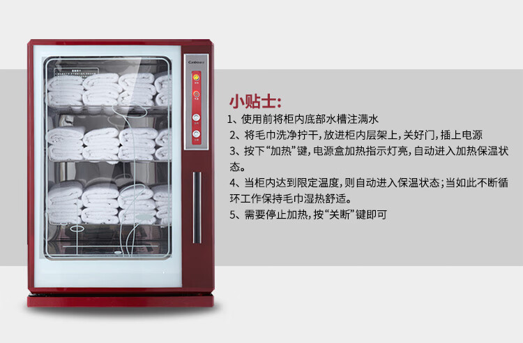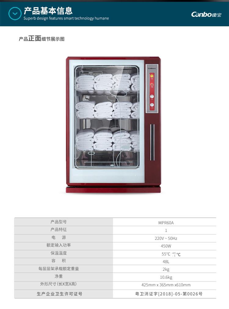 康宝(Canbo)毛巾消毒柜 MPR60A-1商用小型蒸汽杀菌加热衣物浴巾酒 台 红色