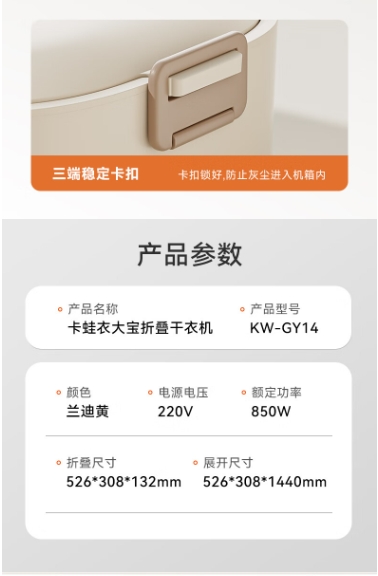 smart frog卡蛙衣大宝家用干衣机KW-GY14(单位:台) 兰迪黄 黄色