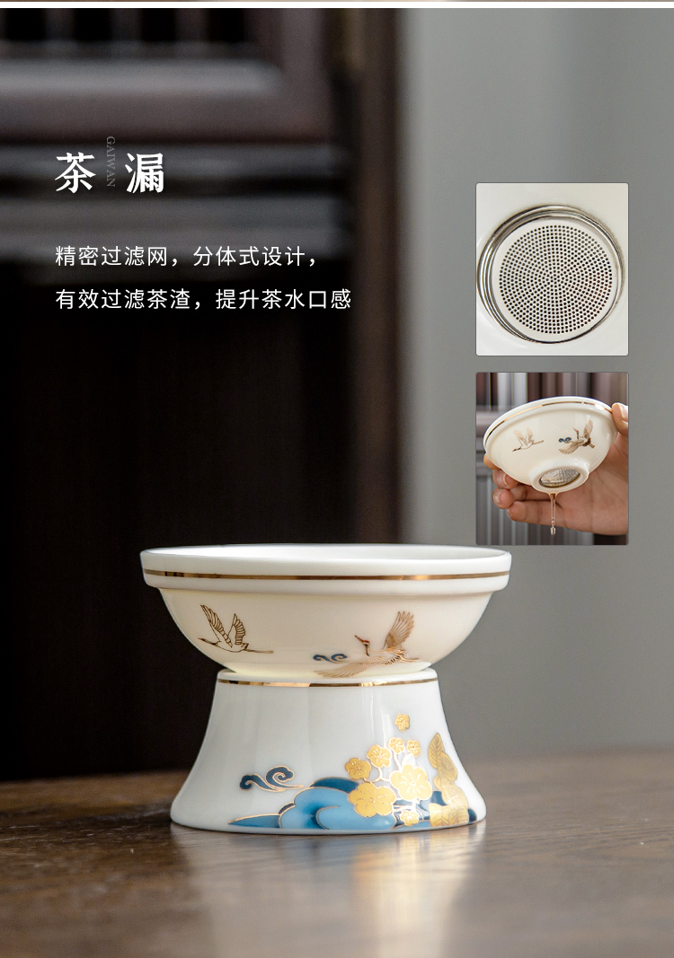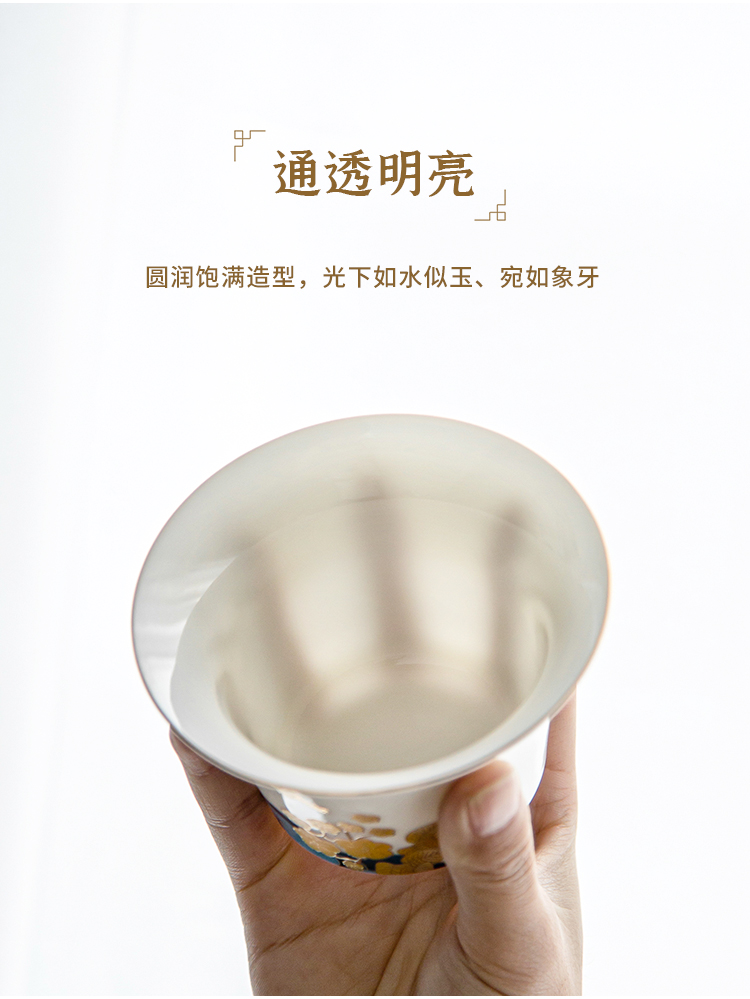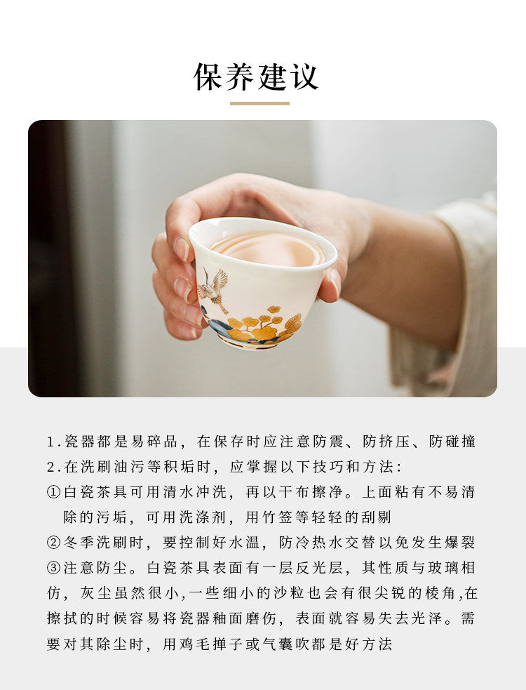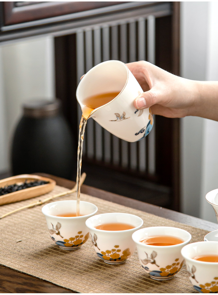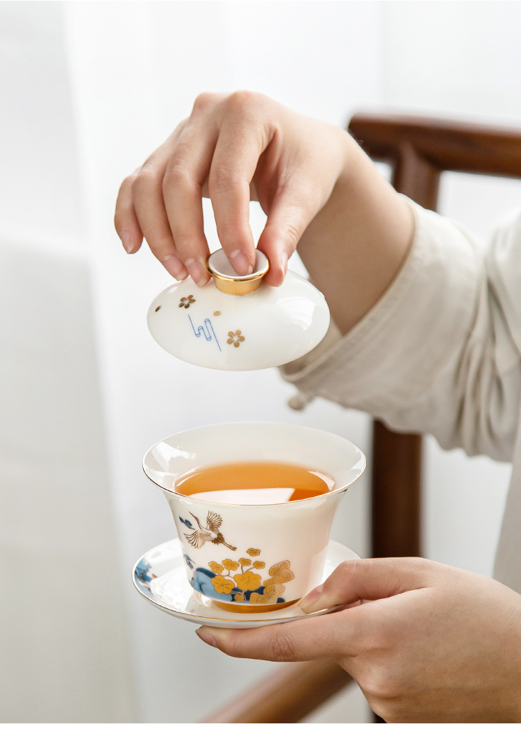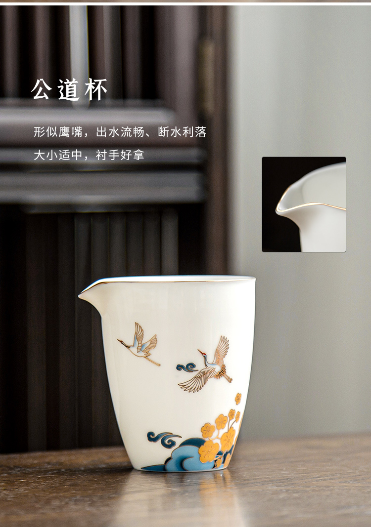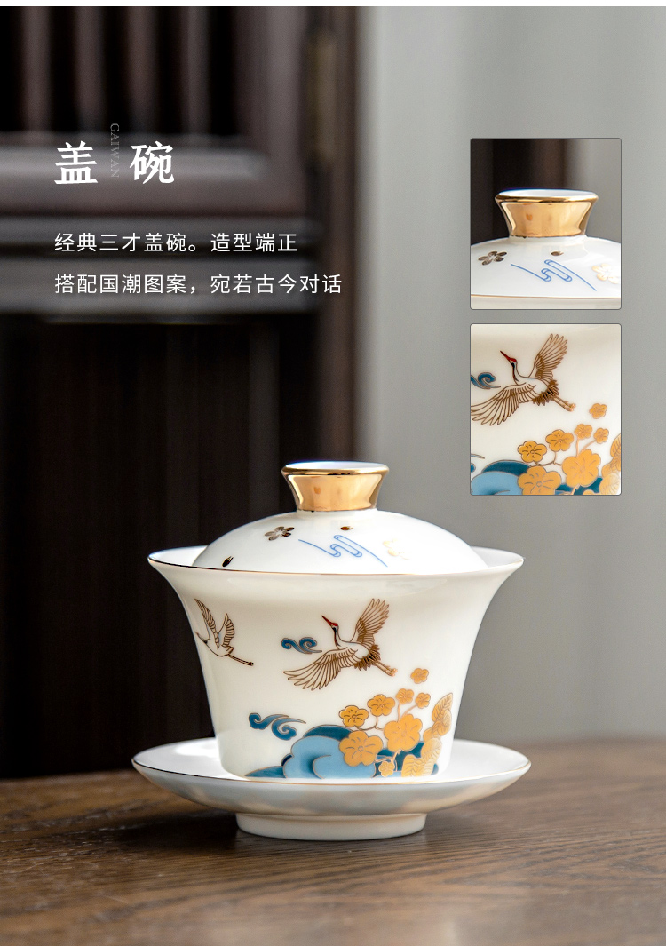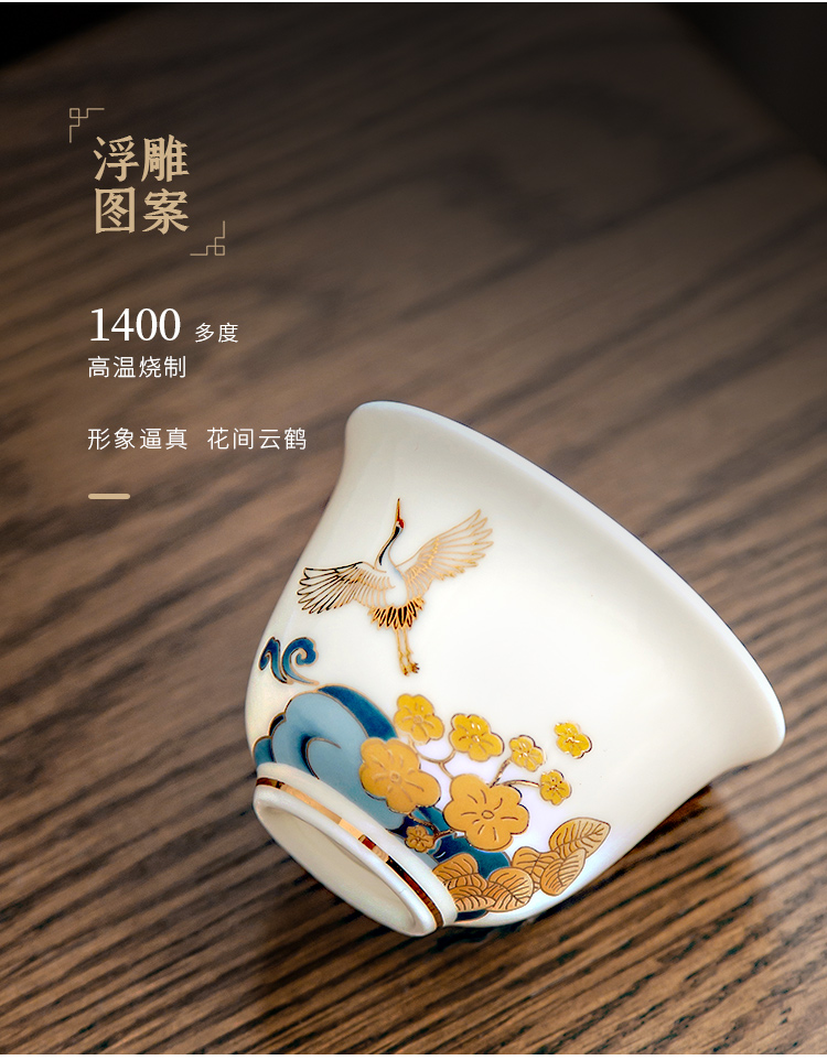 金镶玉 花间云鹤羊脂玉瓷 功夫茶具套装 10件套(单位 : 套) 白色