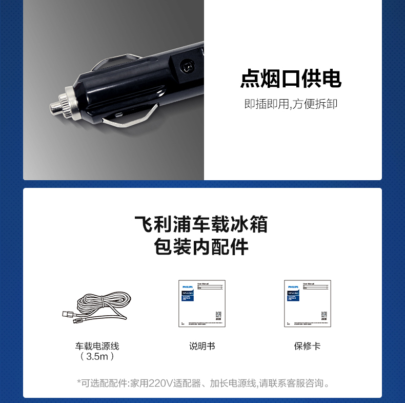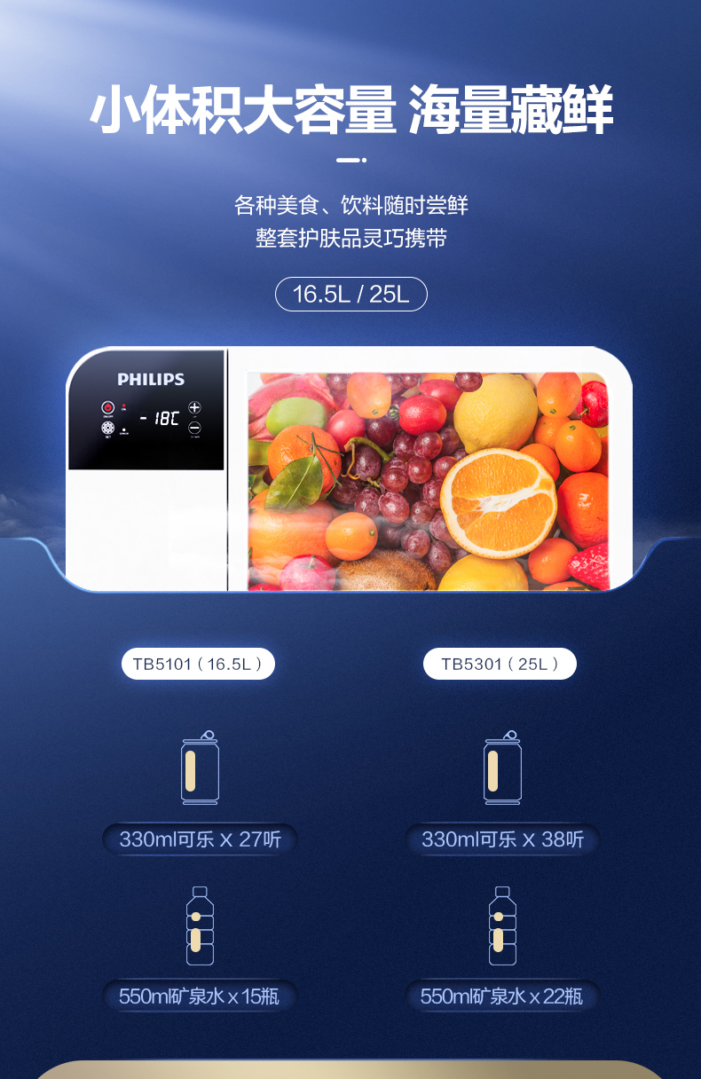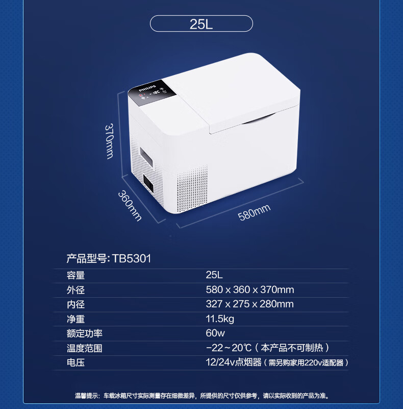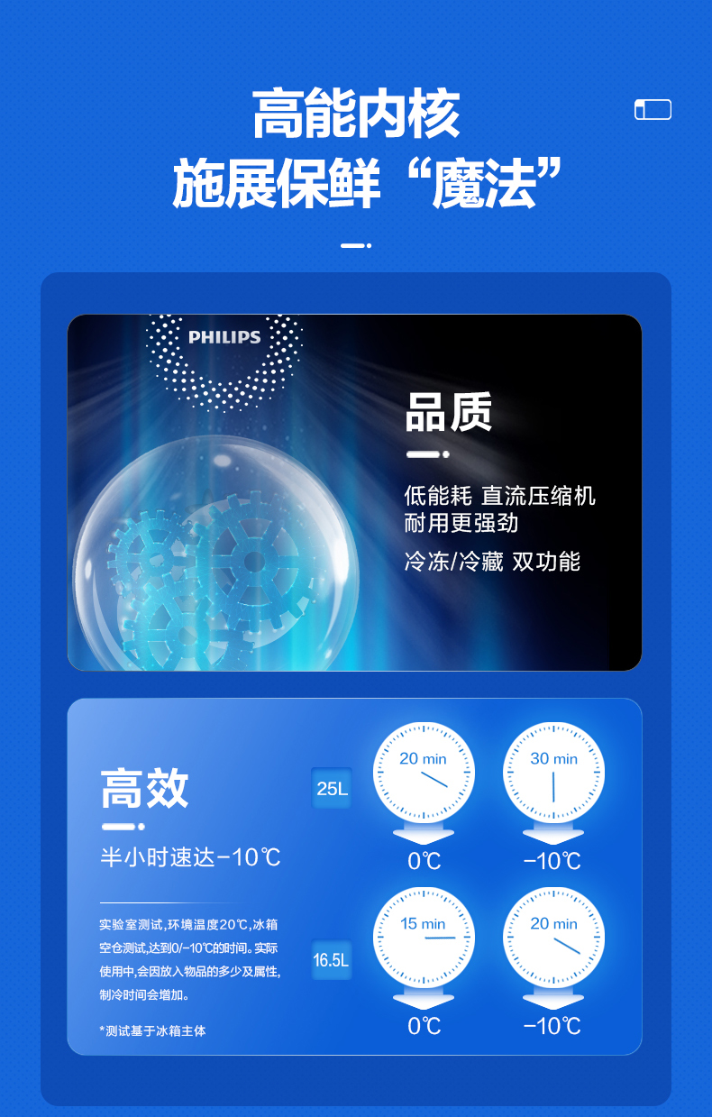 飞利浦/PHILIPS 车载冷冻冰箱25L 车家两用小冰箱母乳冰箱便捷式急速强力制冷 冷冻冷藏防震速 白色