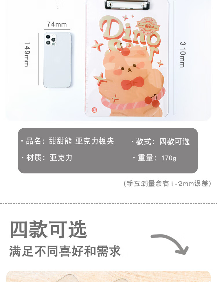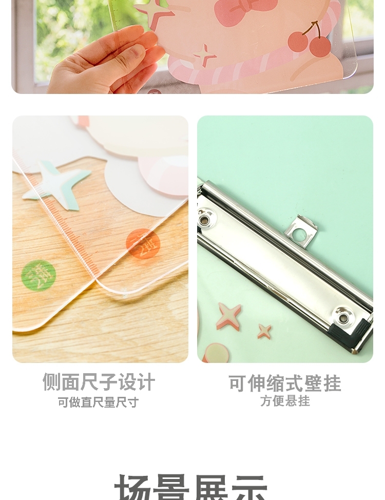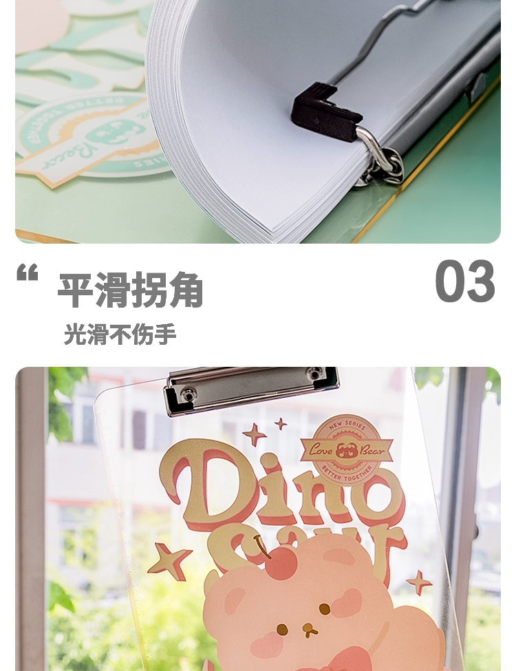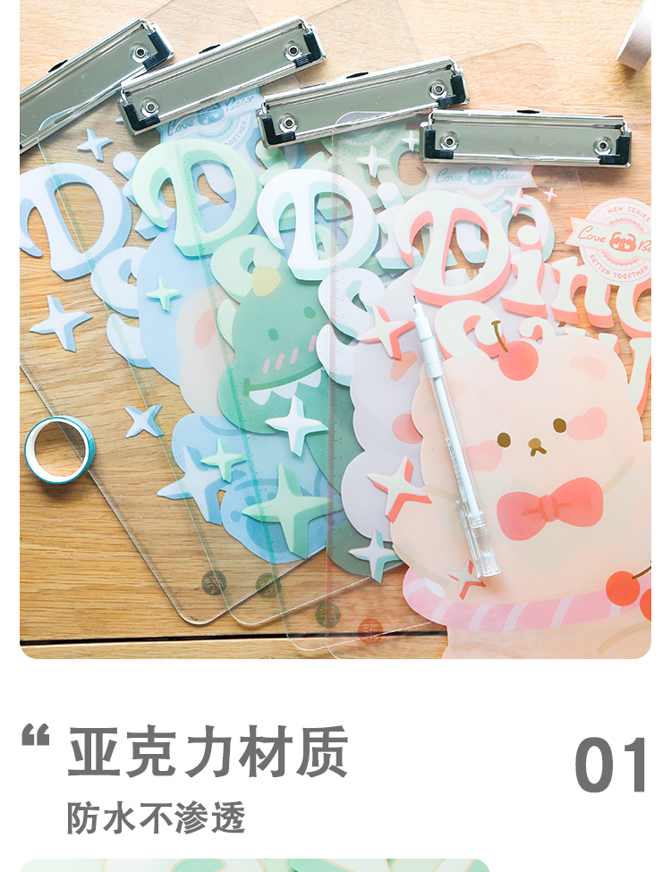 三年二班A4亚克力强力文件资料板夹 简约可爱小清新学生办公收纳多功能文具大容量透明考试垫板写字板/个 圈圈