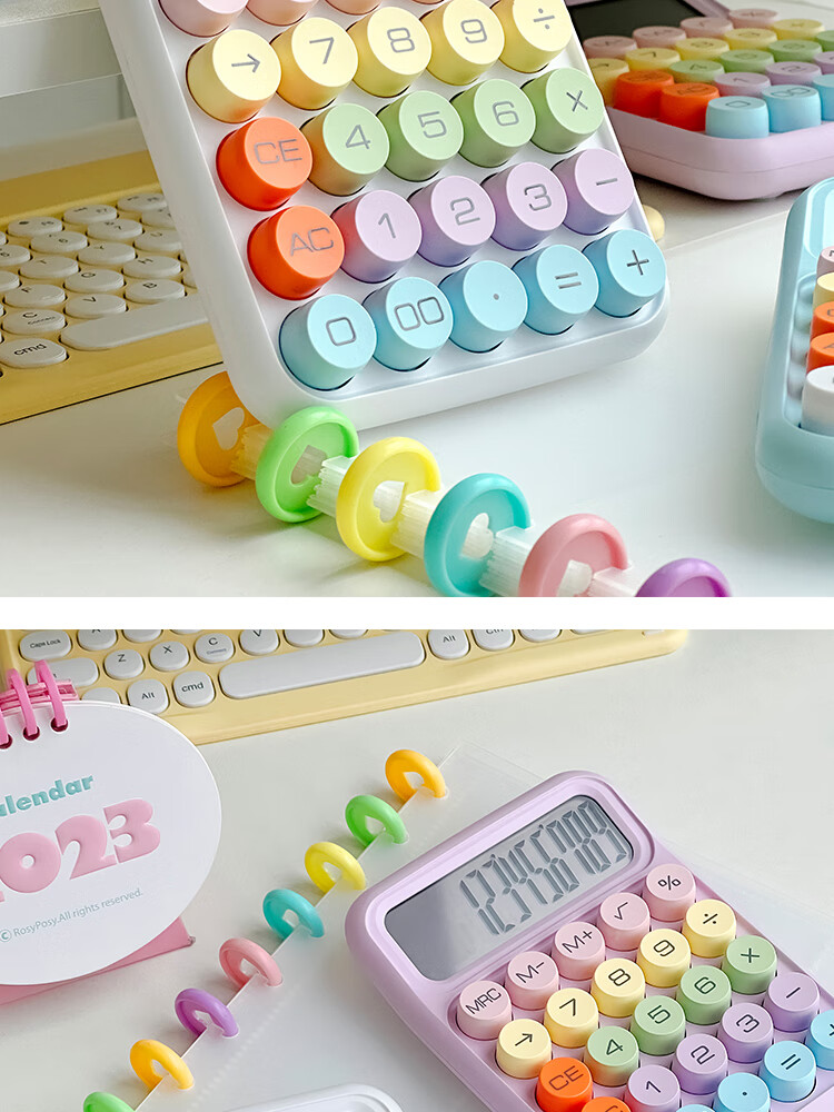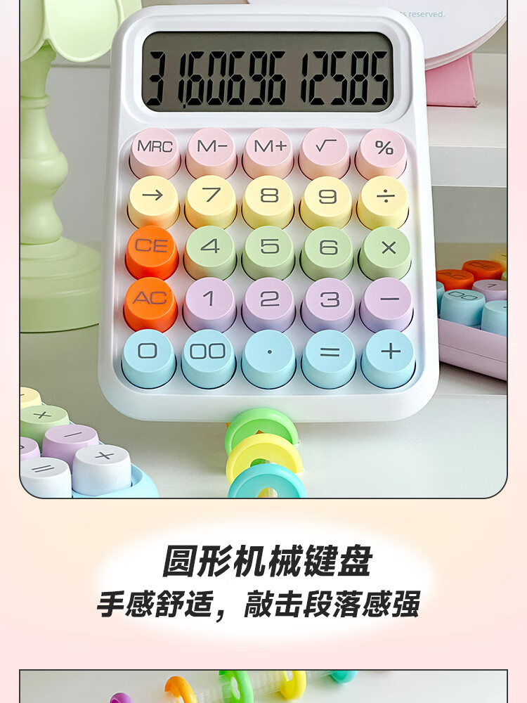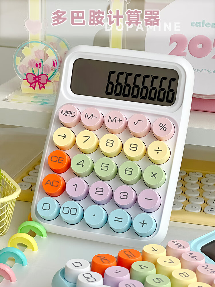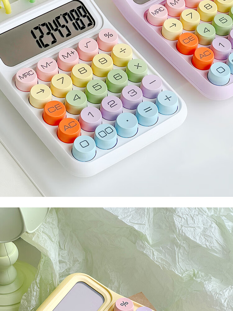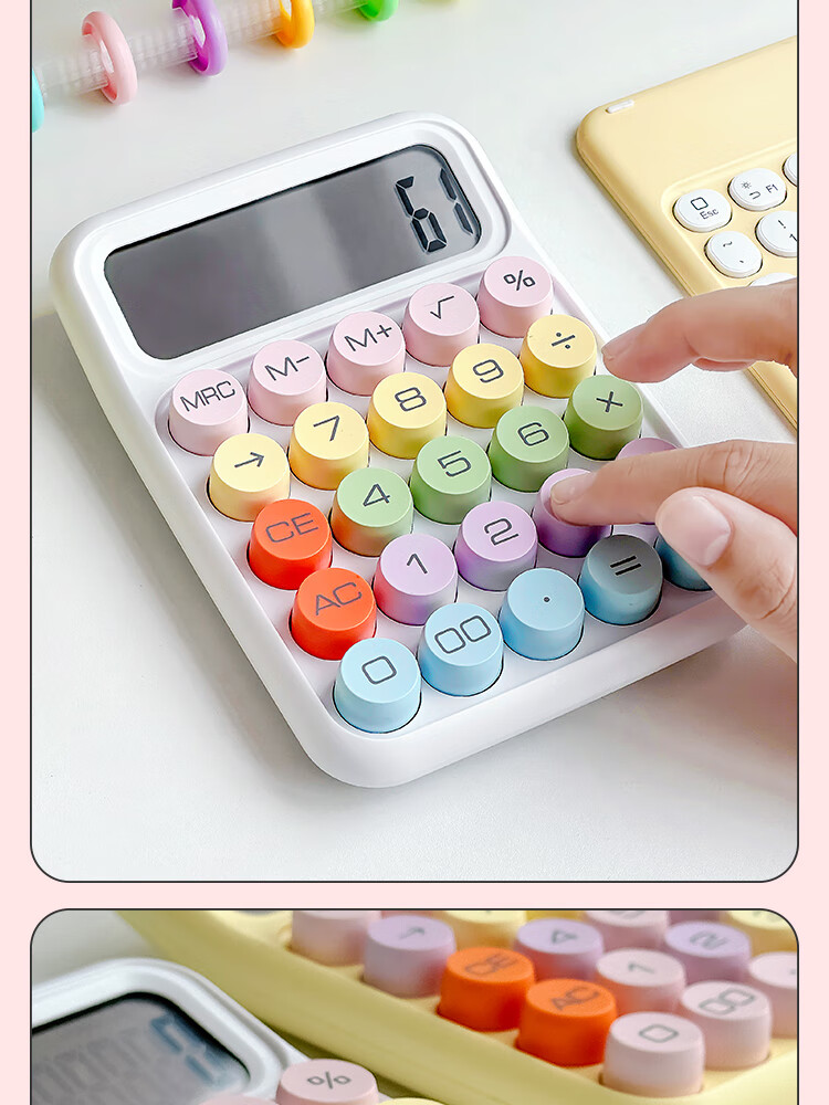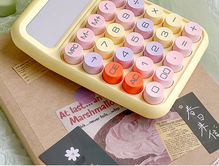三年二班 多巴胺计算器学生用彩色可爱机械按键计算机器办公室用高颜值财务会计商用/个 黄色款