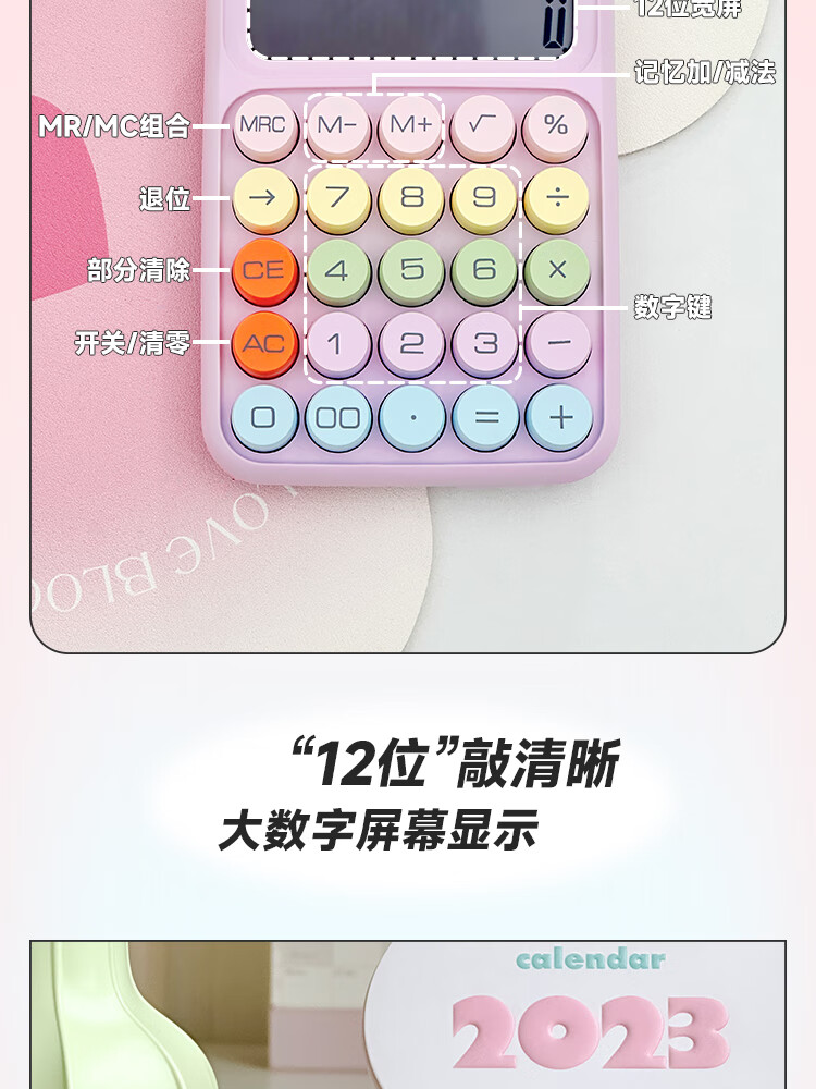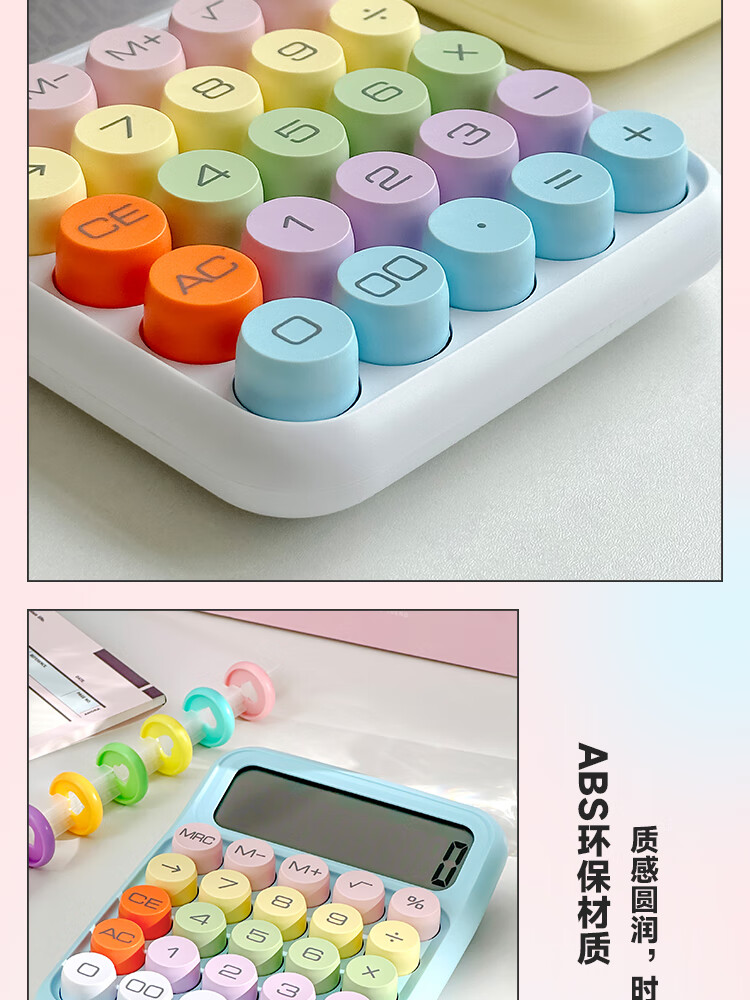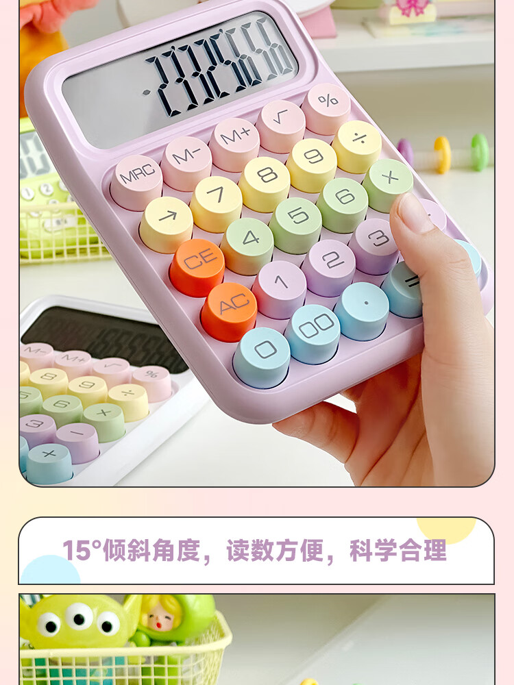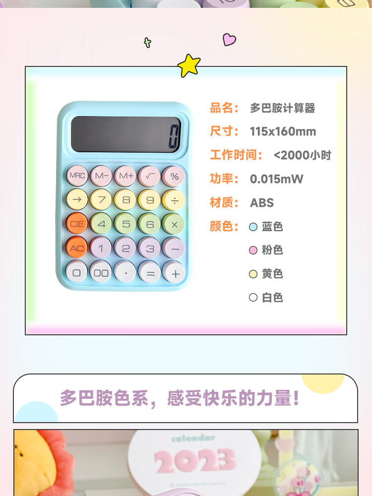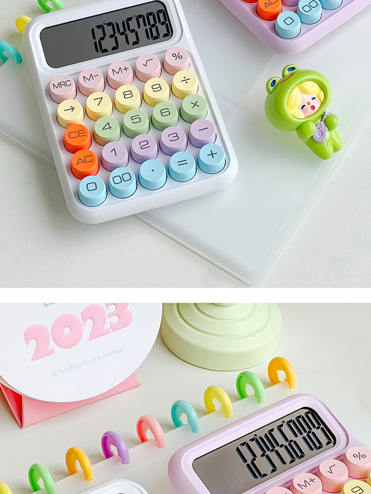 三年二班 多巴胺计算器学生用彩色可爱机械按键计算机器办公室用高颜值财务会计商用/个 黄色款