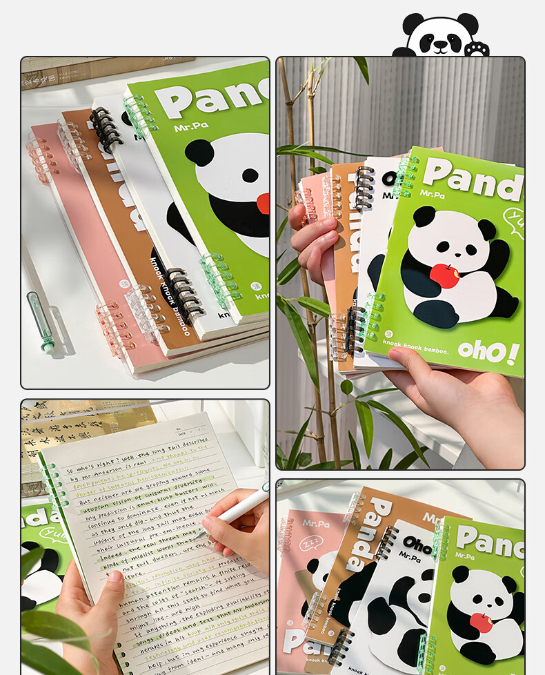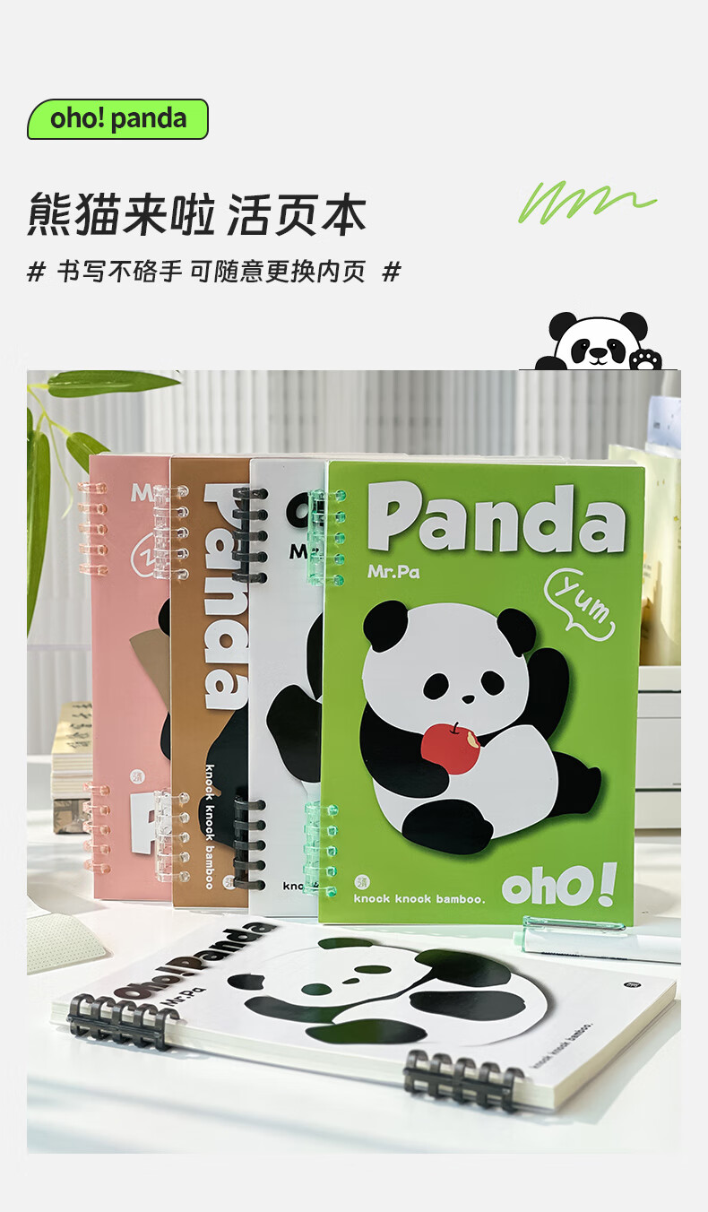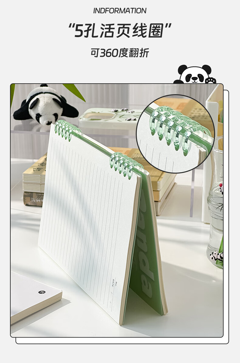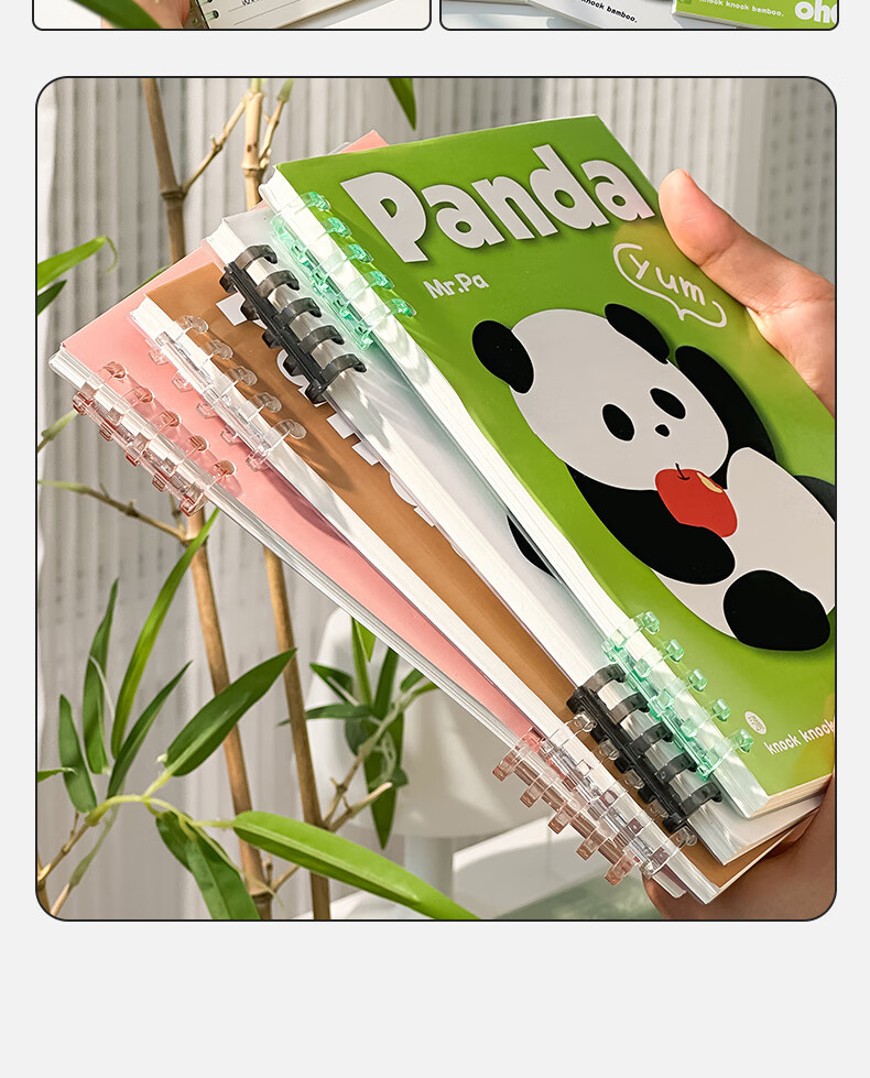 三年二班可爱熊猫限定不硌手活页笔记本本子可拆卸扣环记事本学生用高颜值日记本错题本/本 呼呼大睡(大号)
