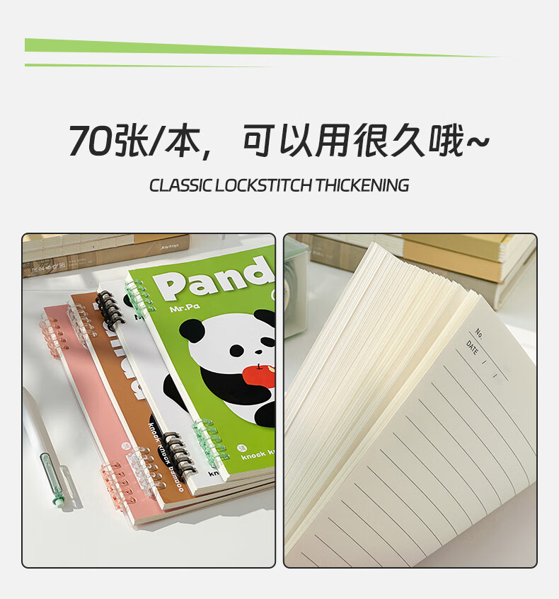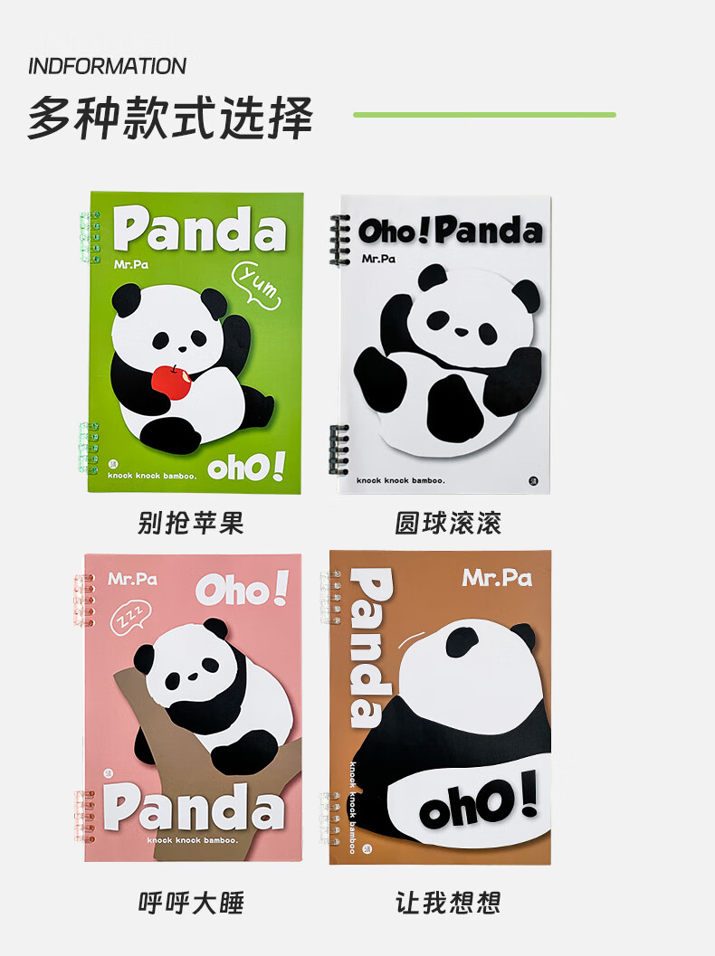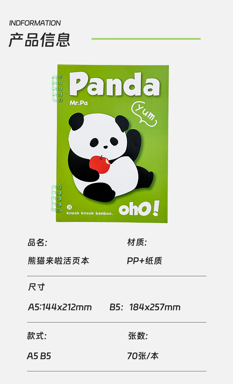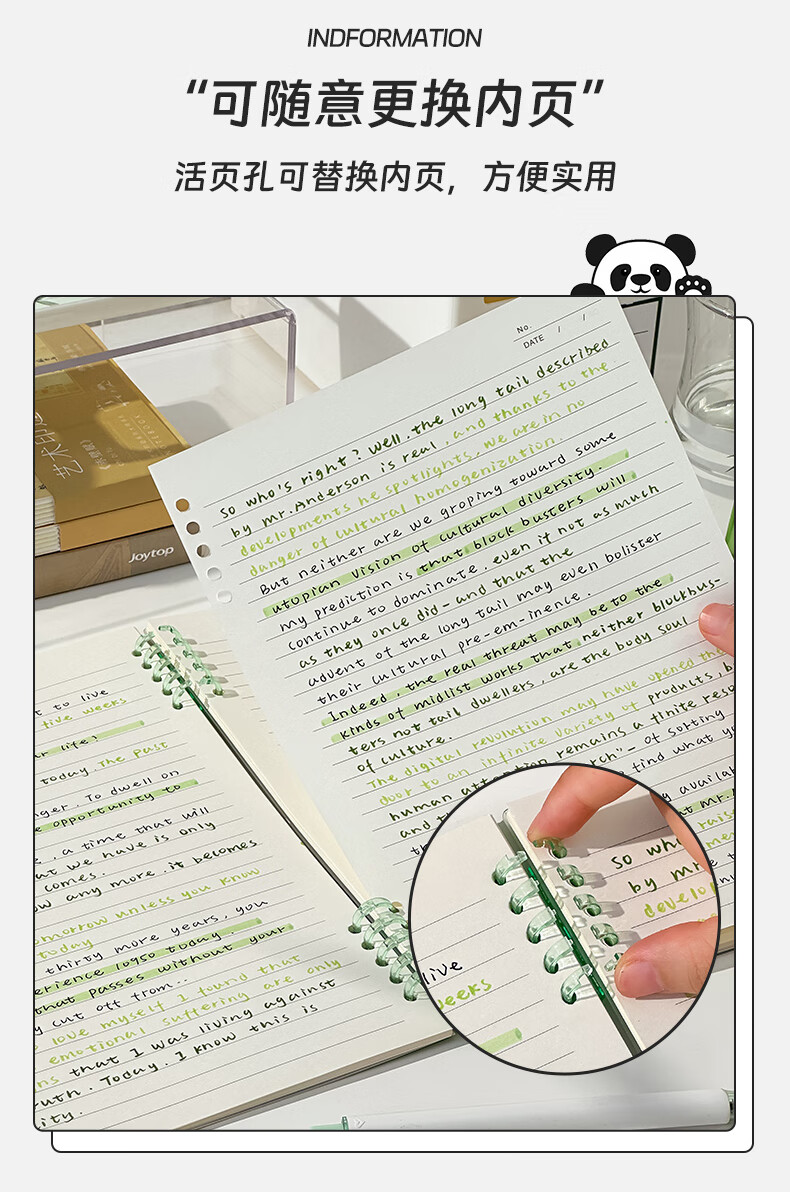 三年二班可爱熊猫限定不硌手活页笔记本本子可拆卸扣环记事本学生用高颜值日记本错题本/本 呼呼大睡(大号)