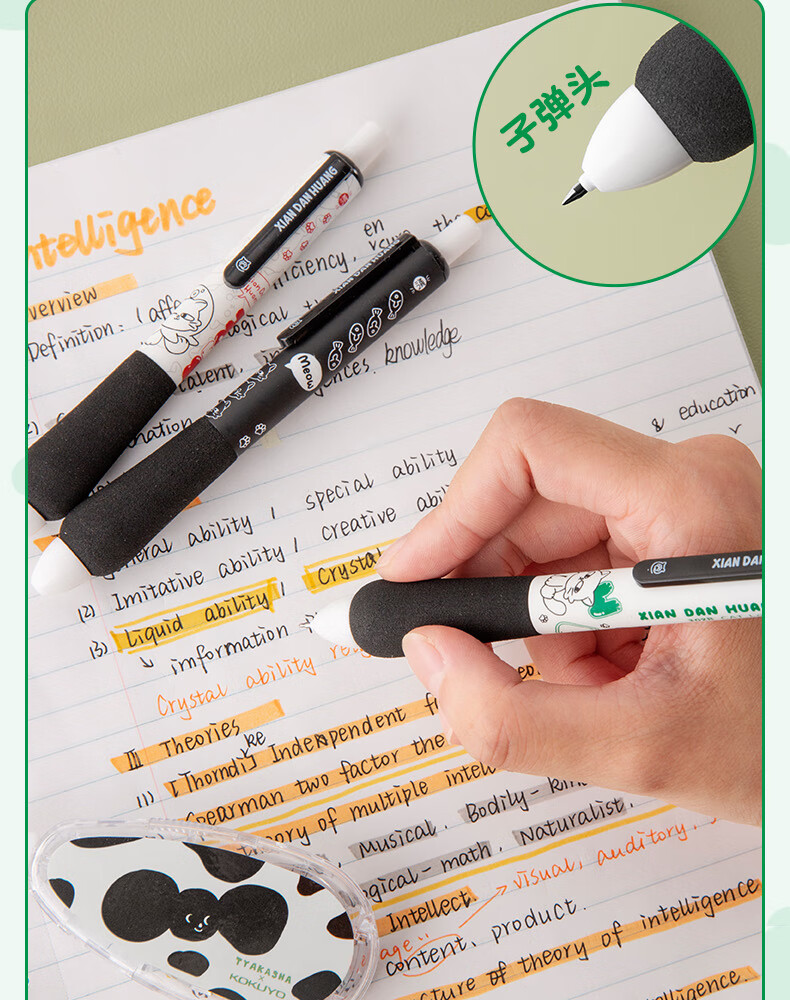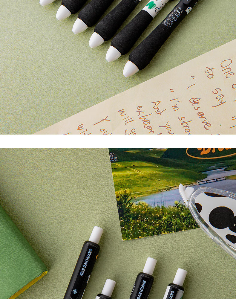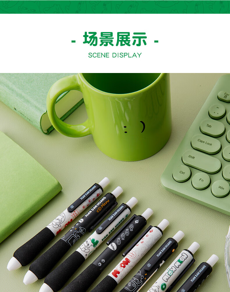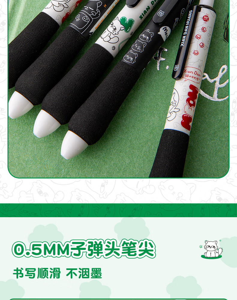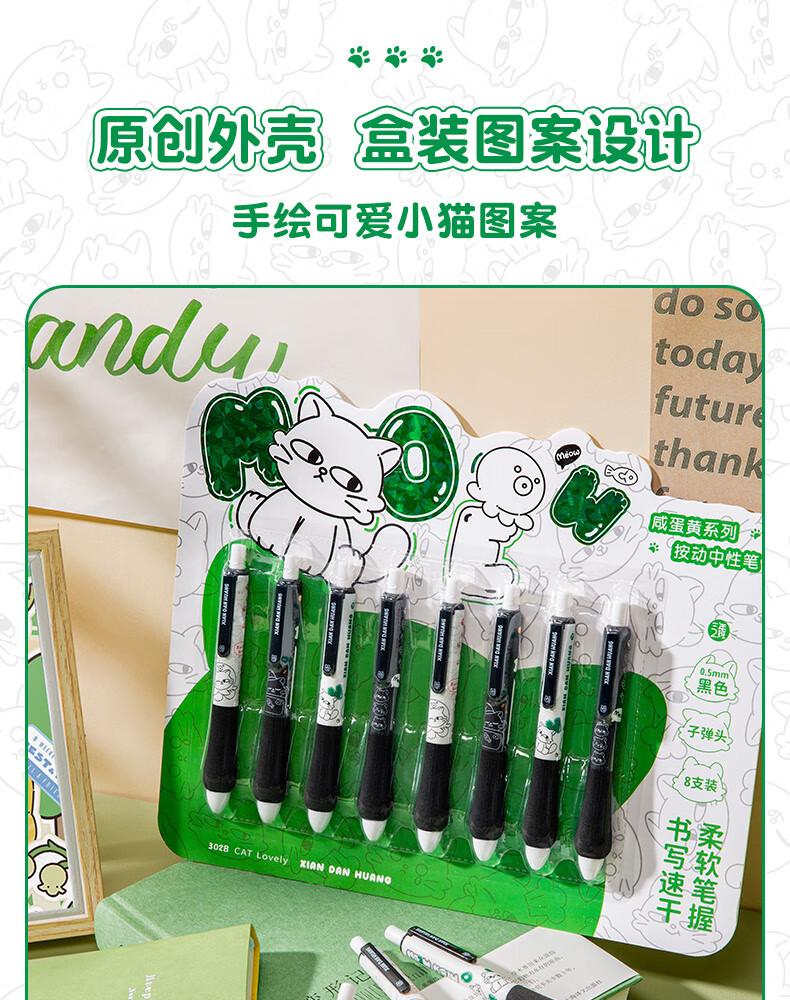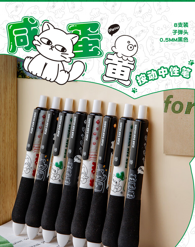 三年二班麻球MQ系列按动中性笔套装速干软握胖胖解压笔刷题笔学生考试专用高颜值签字笔减压笔/套 咸蛋黄按动中性笔-8支装