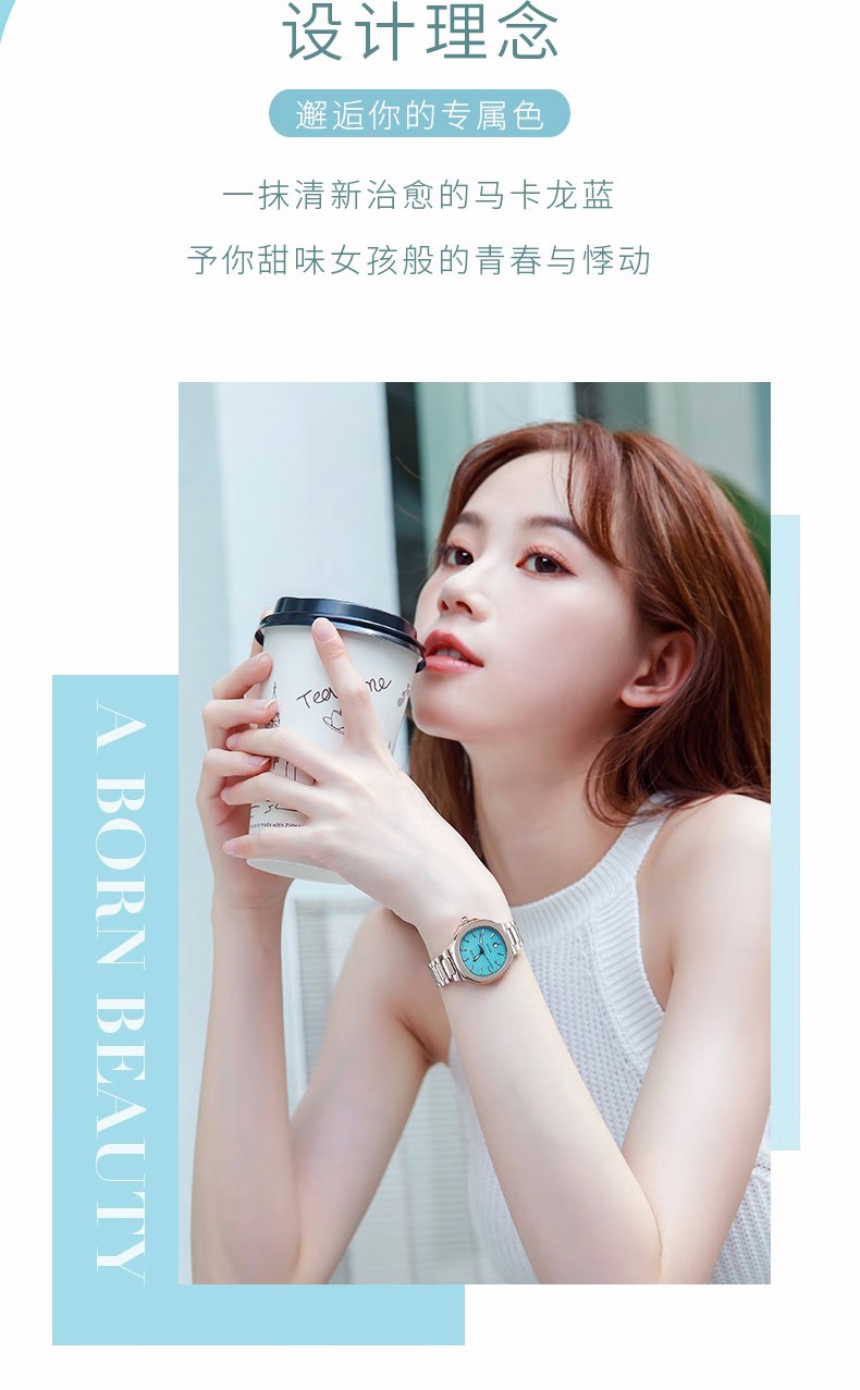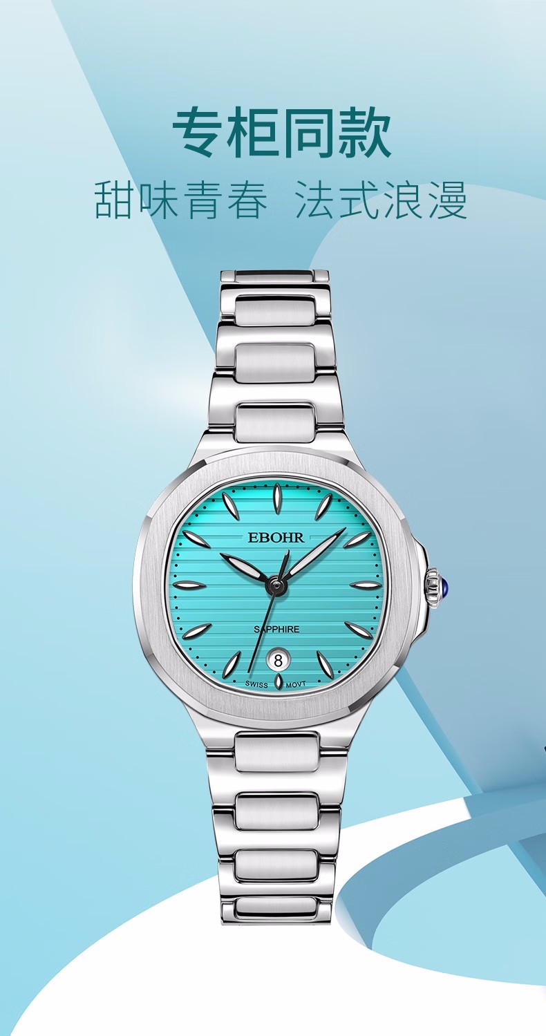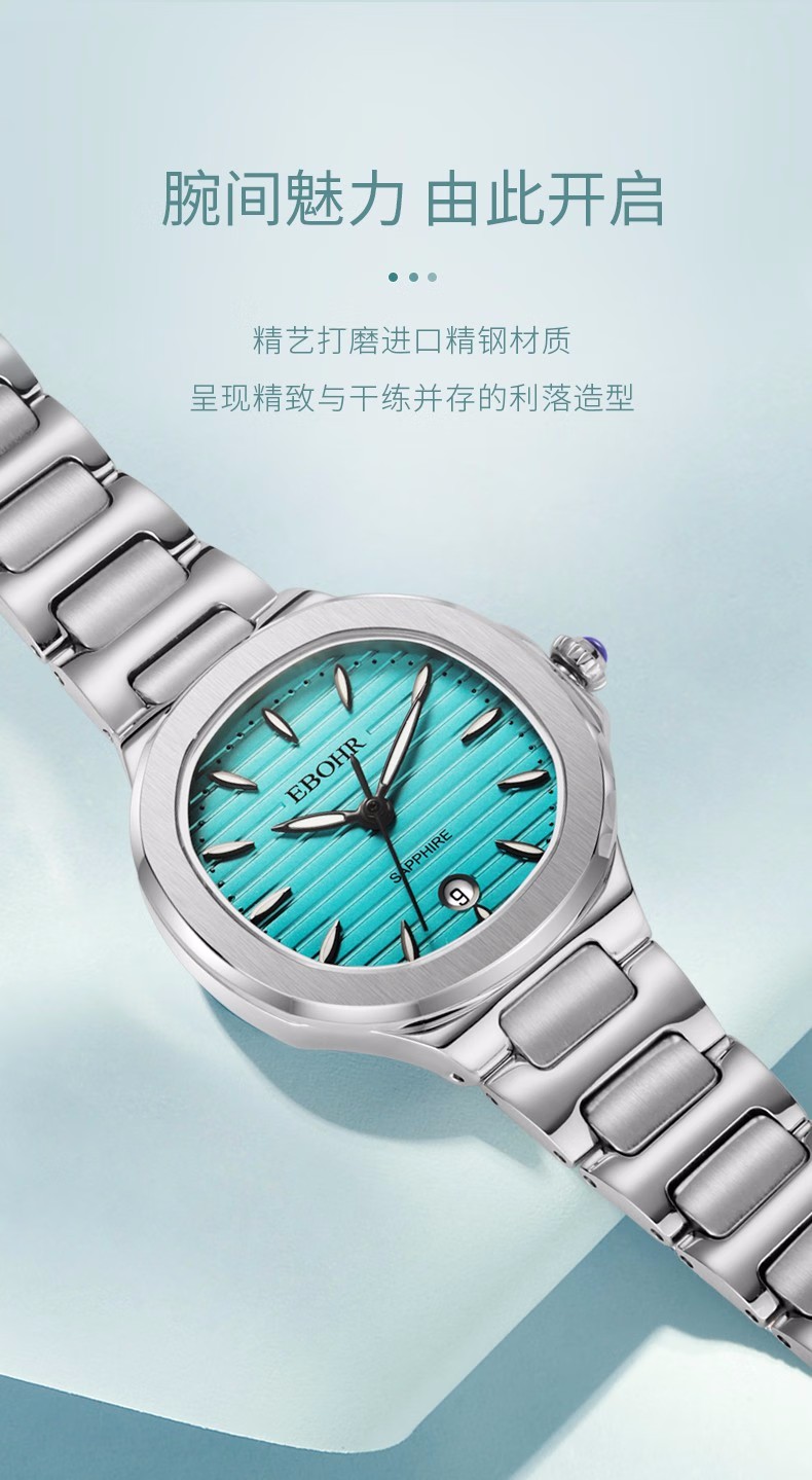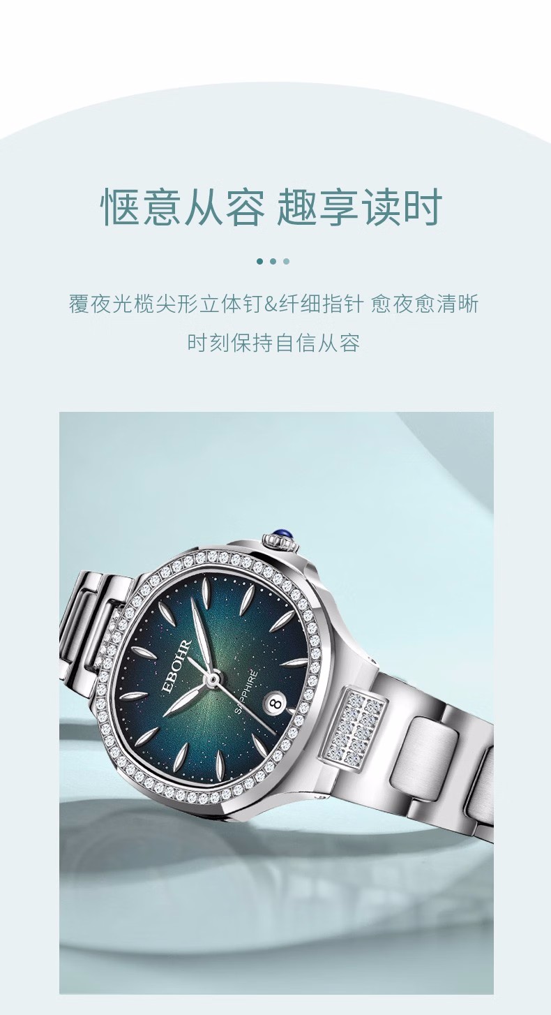 依波(EBOHR) 卡纳系列 石英手表休闲百搭一抹青绿女表22021726(单位1块) 绿色