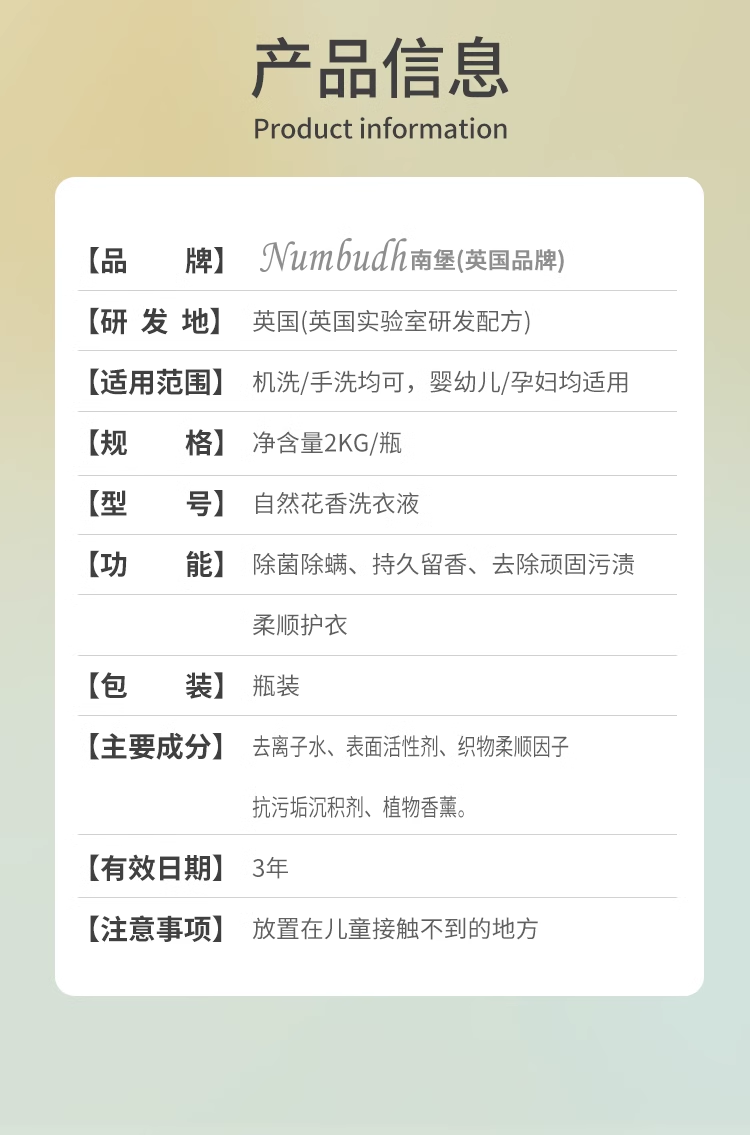 南堡(NUMBUDH)自然花香升级版洗衣液 2kg*4瓶 尼加拉蓝