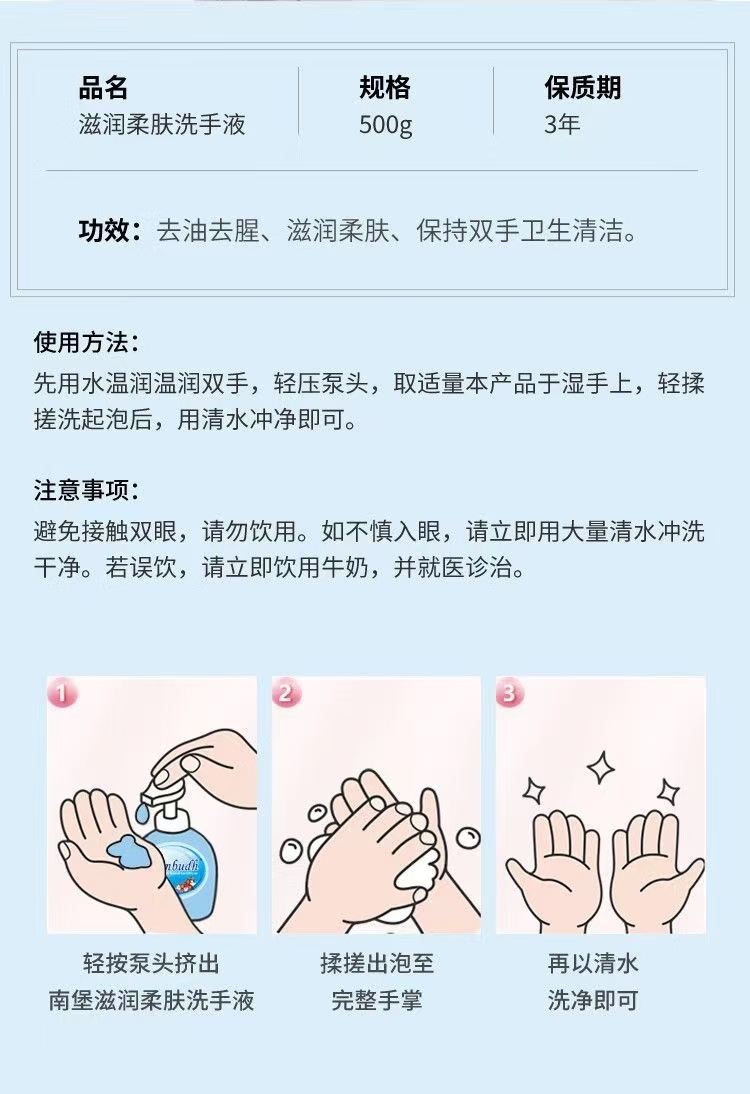 南堡(NUMBUDH)滋润柔肤洗手液 500g*6瓶 深蓝色