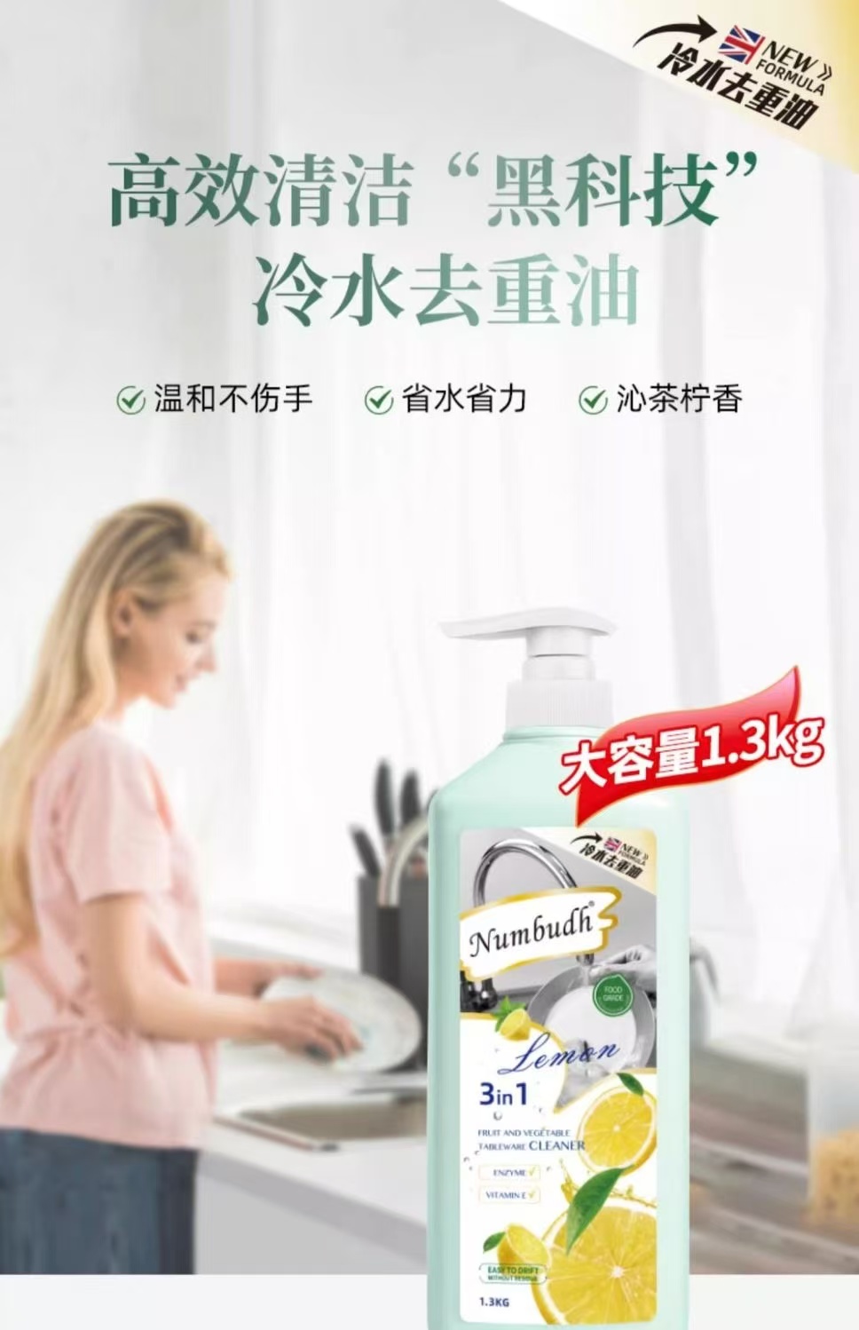 南堡(NUMBUDH)果蔬餐具净(沁茶柠香) 1.3kg*2瓶 天蓝色