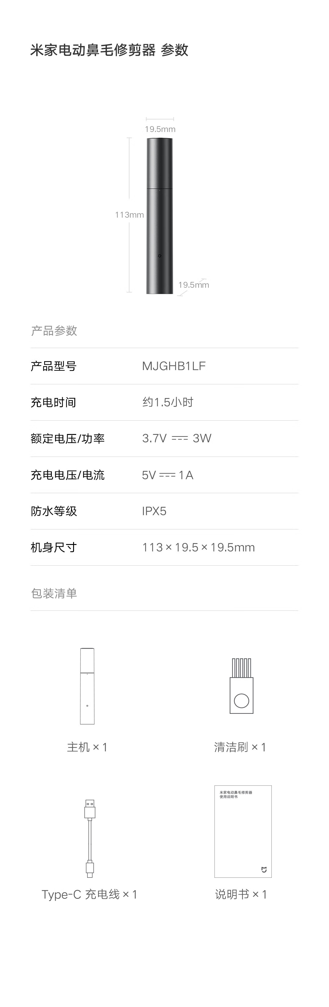 米家(MIJIA) 电动鼻毛修剪器MJGHB1LF (单位:个) 蓝颜灰