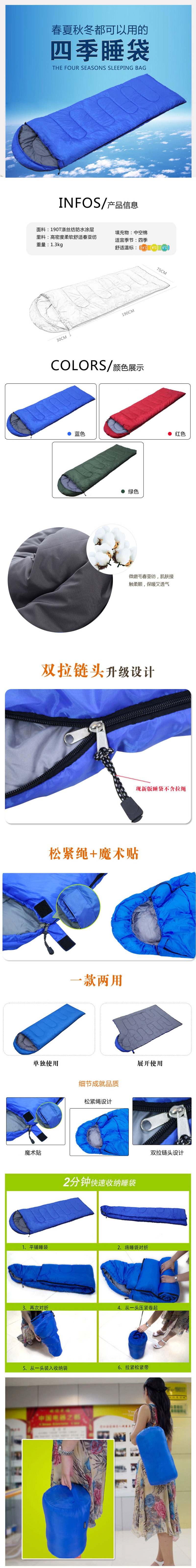 Tri-polar TP2914 四季中空棉信封式睡袋 (180+30)*75cm(单位:条) 蓝色1.3kg