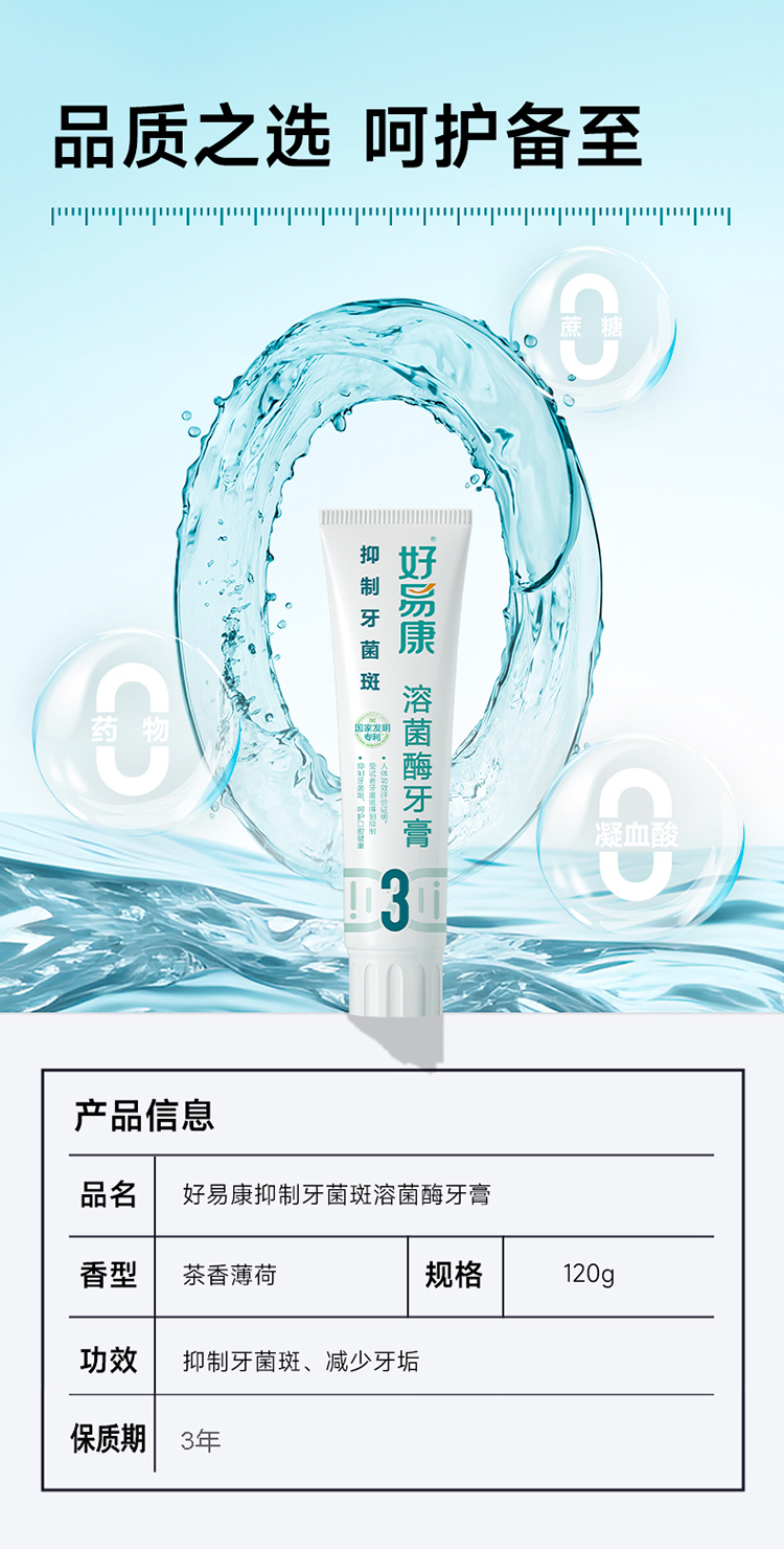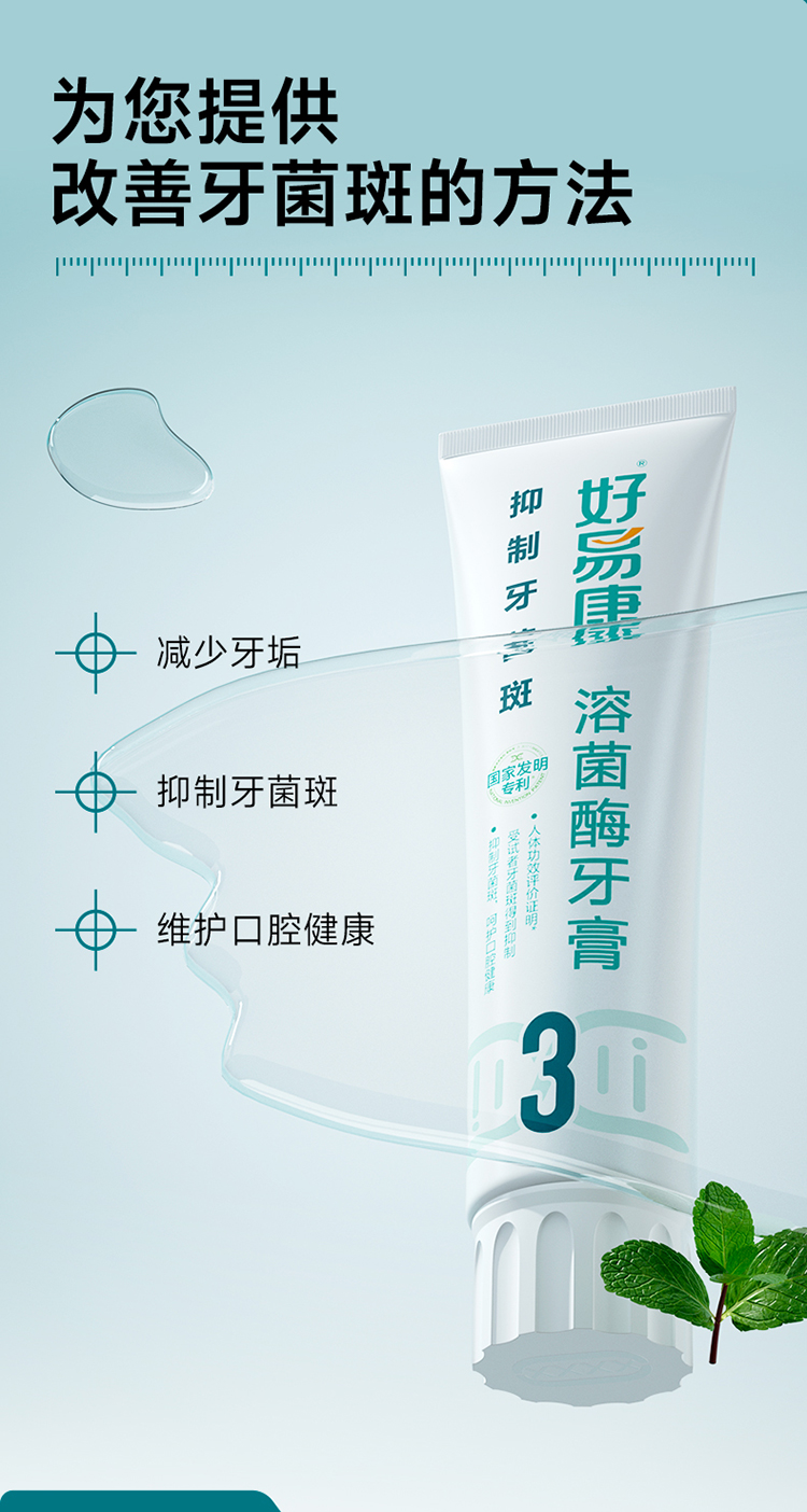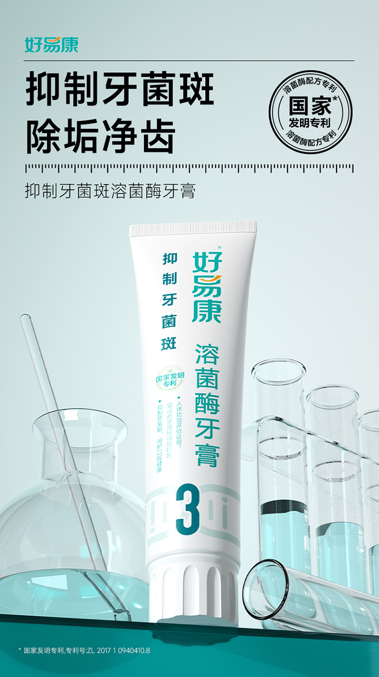 好易康抑制牙菌斑溶菌酶牙膏120g(3号)(单位:支) 本白色