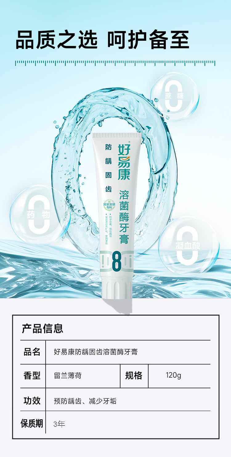 好易康防龋固齿溶菌酶牙膏120g(8号)(单位:支) 本白色