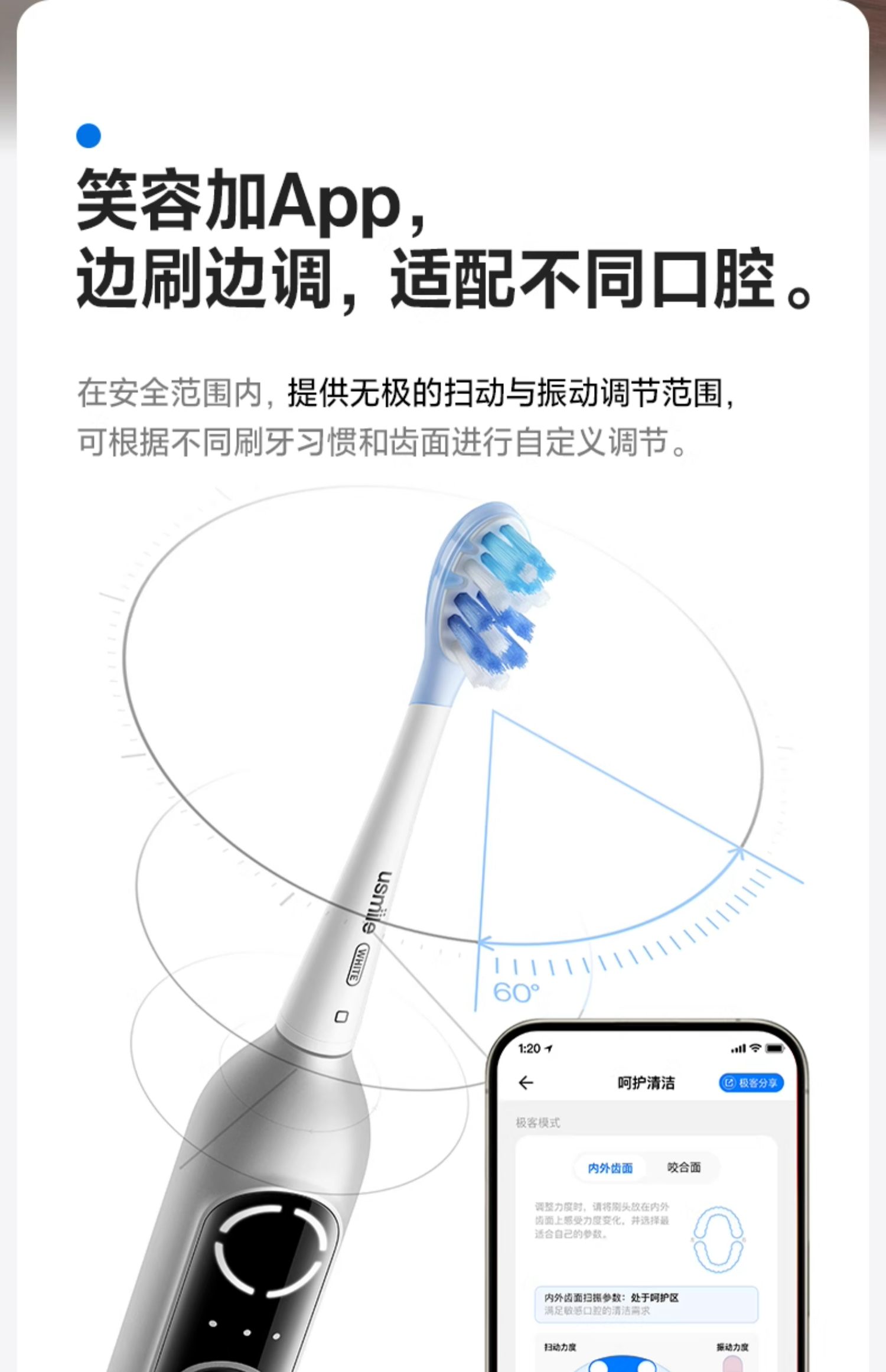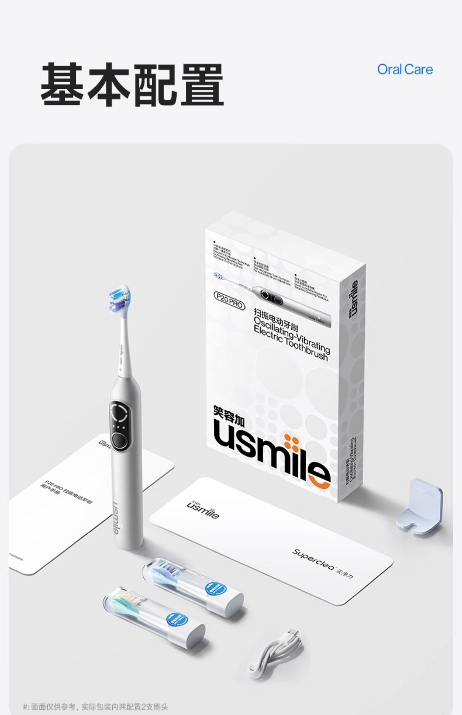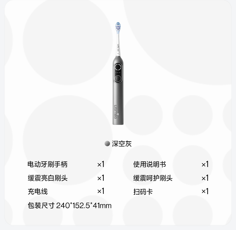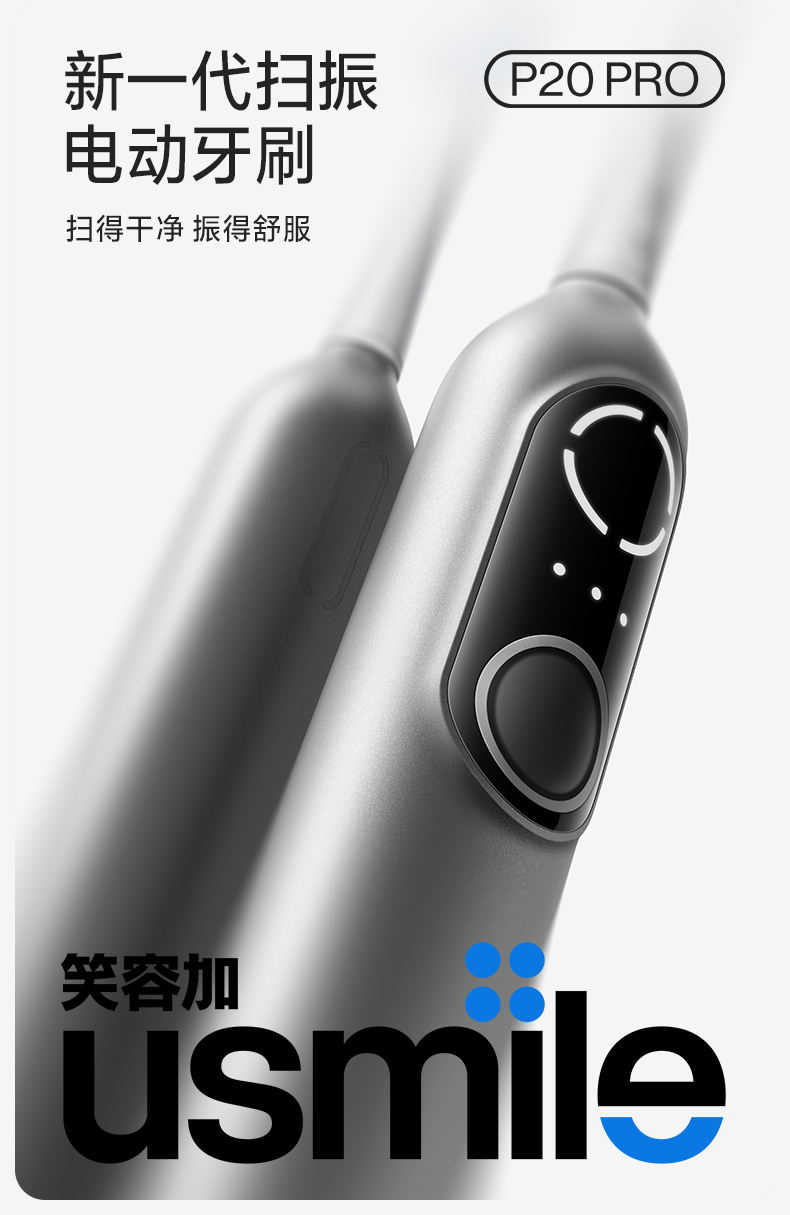 usmile 扫振电动牙刷 深空灰P20 PRO 续航90天 深空灰(单位:套)