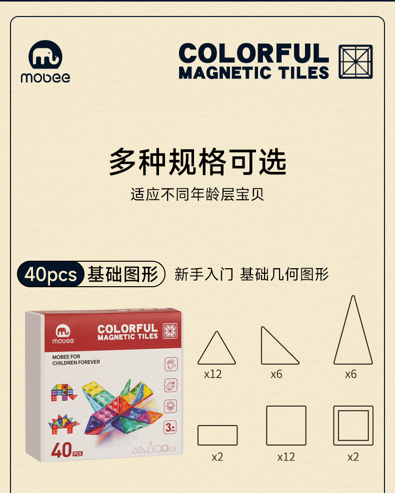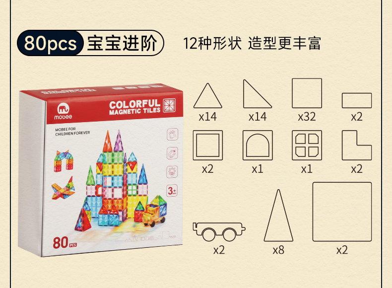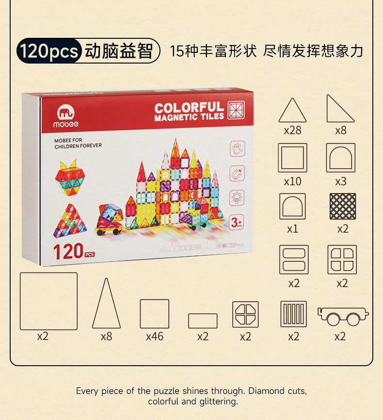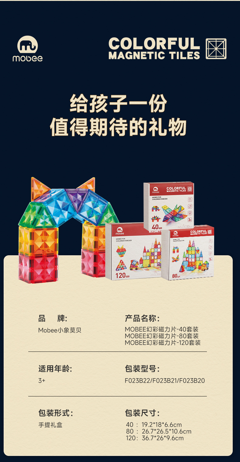 mobee F023B22 120片强劲磁吸 幻彩磁力片 (单位:盒)