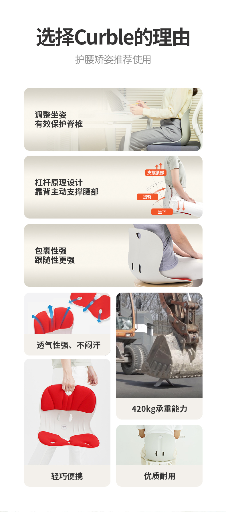可柔伴(curble)坐姿矫正座椅垫 护腰靠软坐垫wider(单位:个) 红色