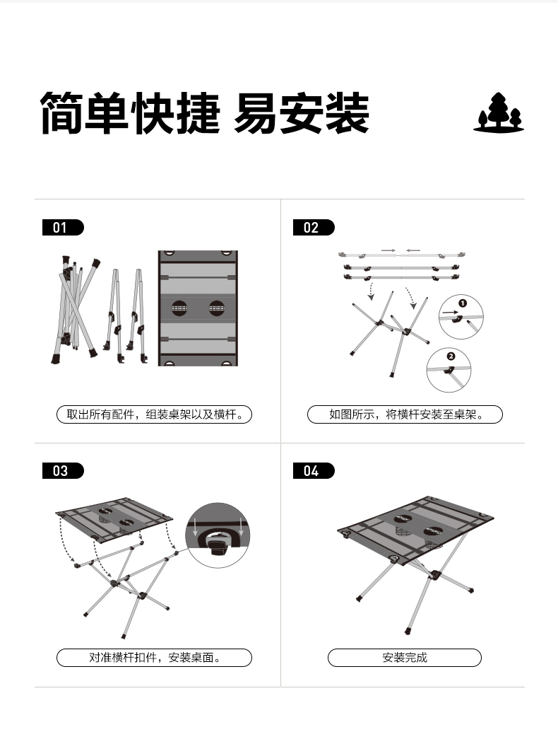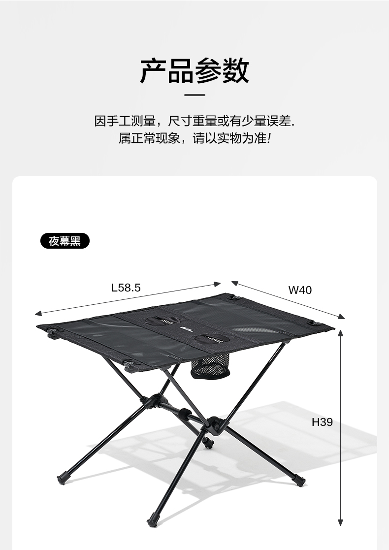 牧高笛(MOBIGARDEN)山羽户外折叠桌 NX21665052/个 夜幕黑