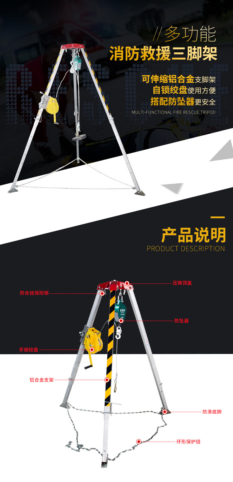 鸣固 消防救援三脚架1800磅20米绞盘(单位:个) 白色