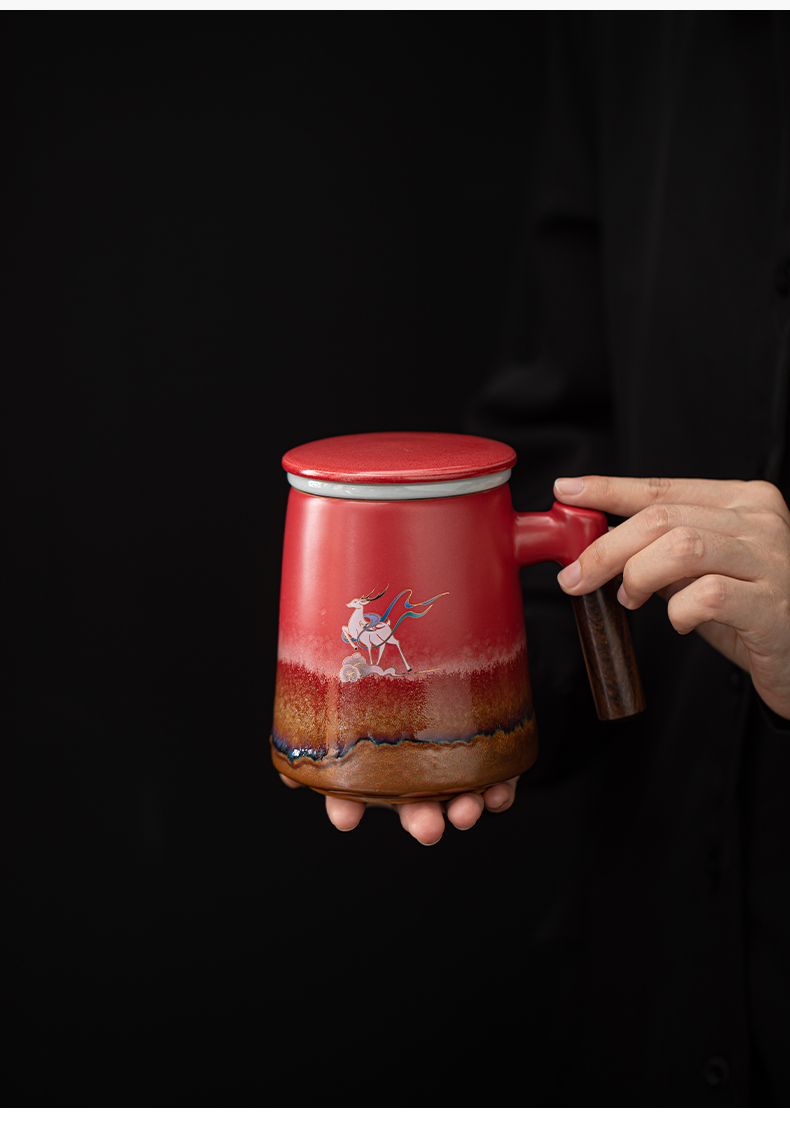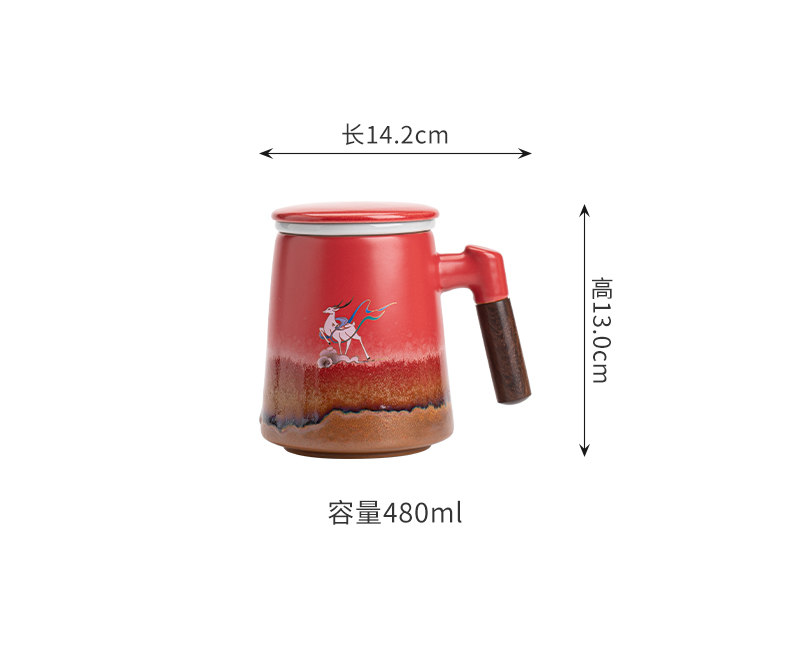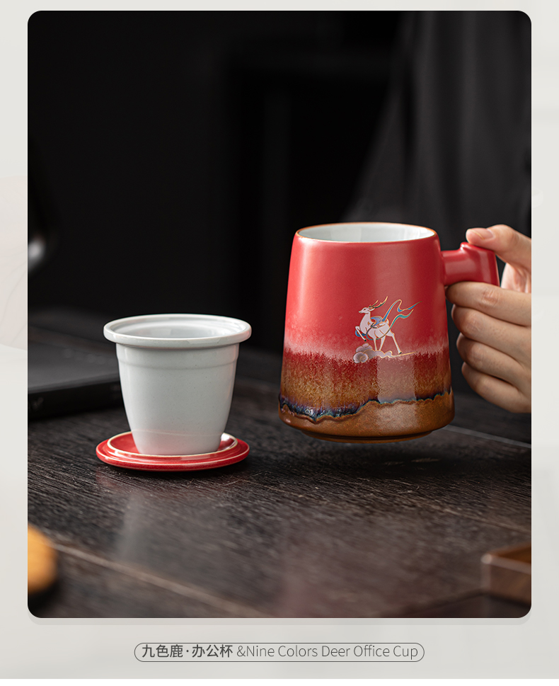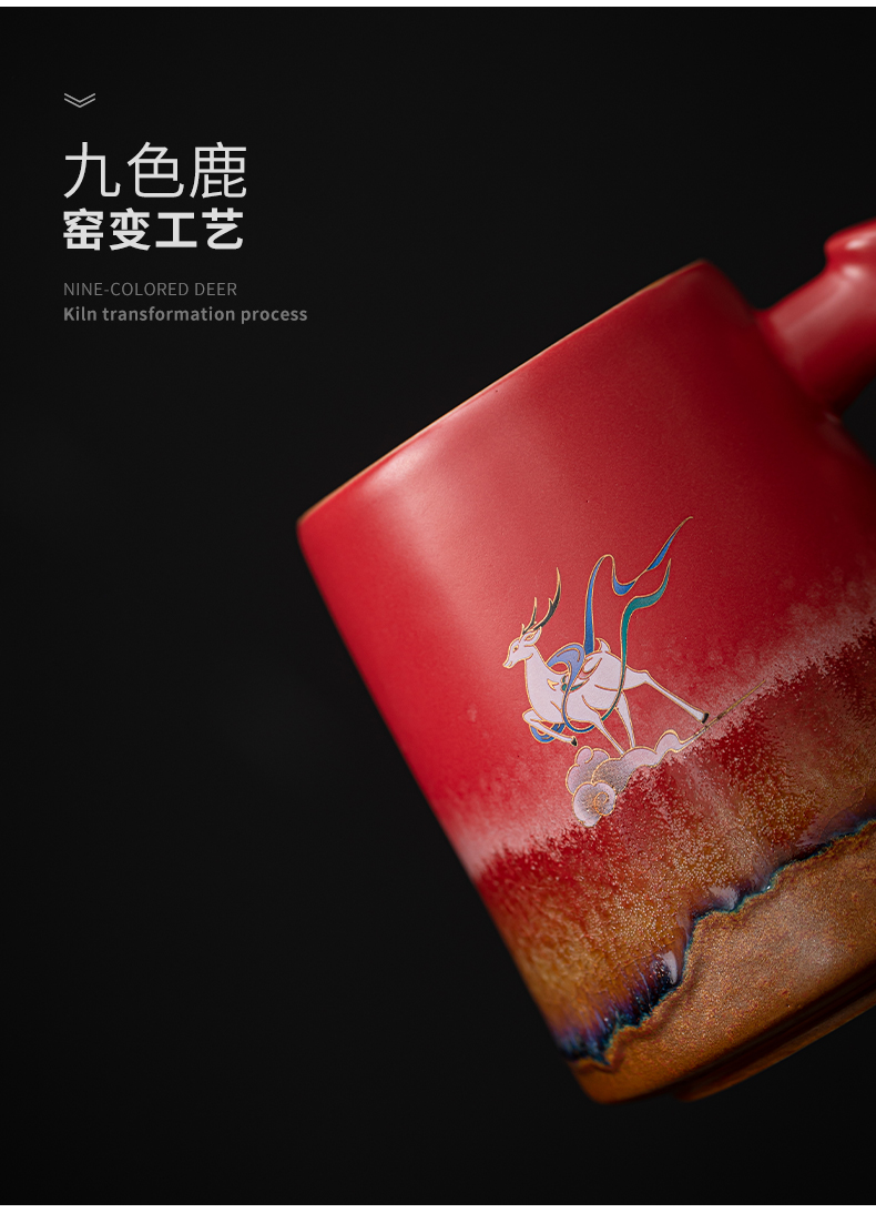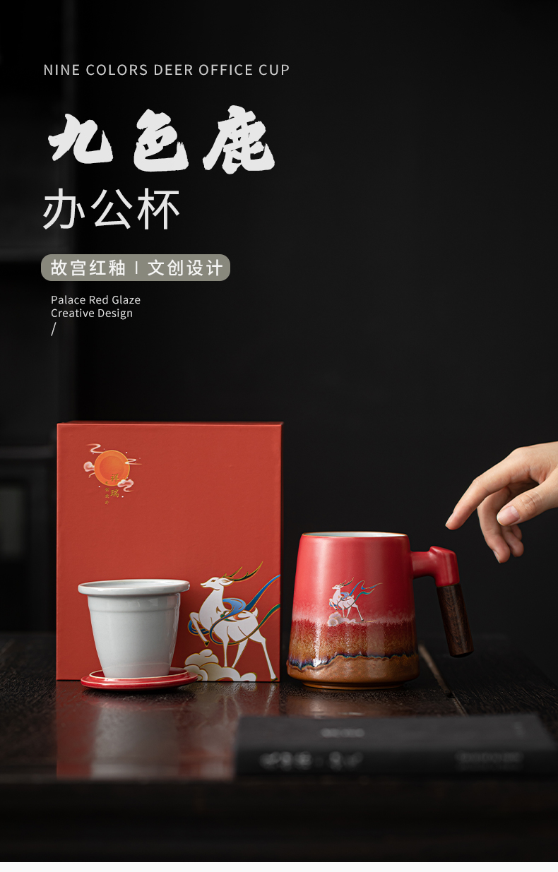 苏氏陶瓷(SUSHI CERAMICS)J1103办公杯故宫红九色麋鹿茶杯文创礼盒(单位:套)