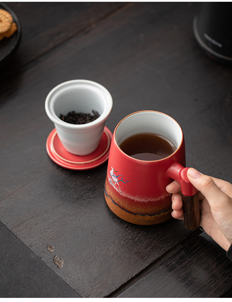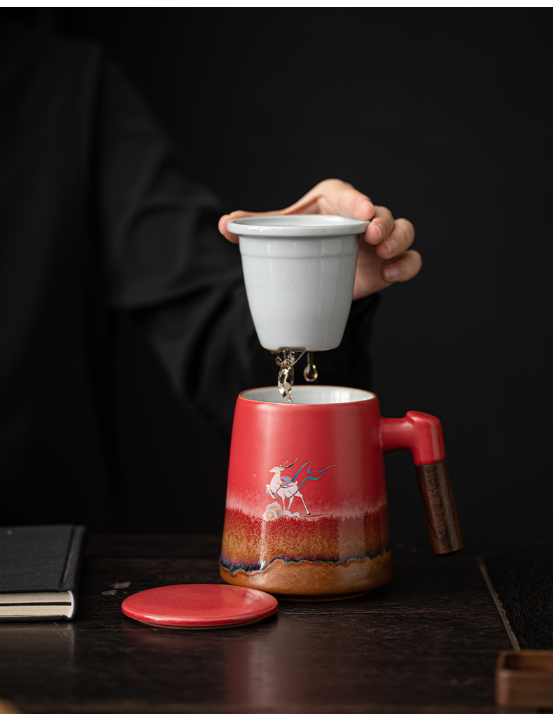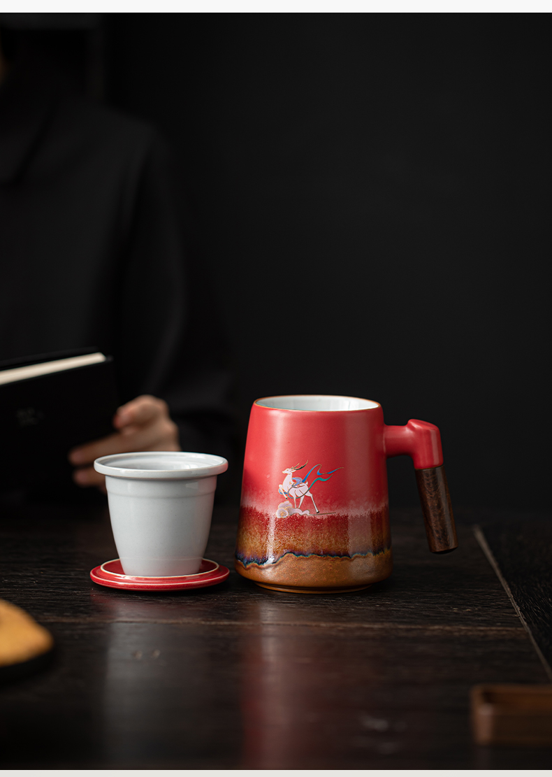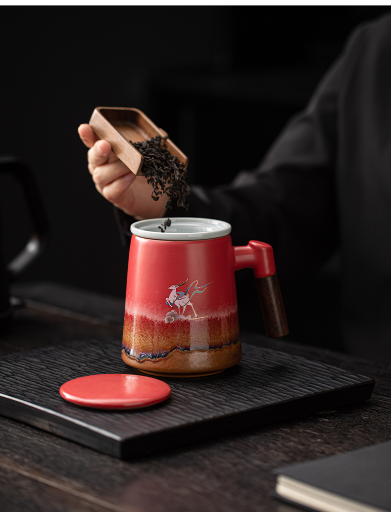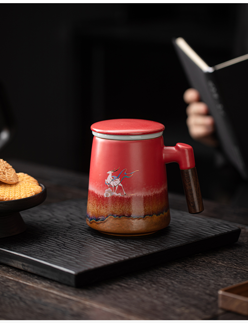 苏氏陶瓷(SUSHI CERAMICS)J1103办公杯故宫红九色麋鹿茶杯文创礼盒(单位:套)