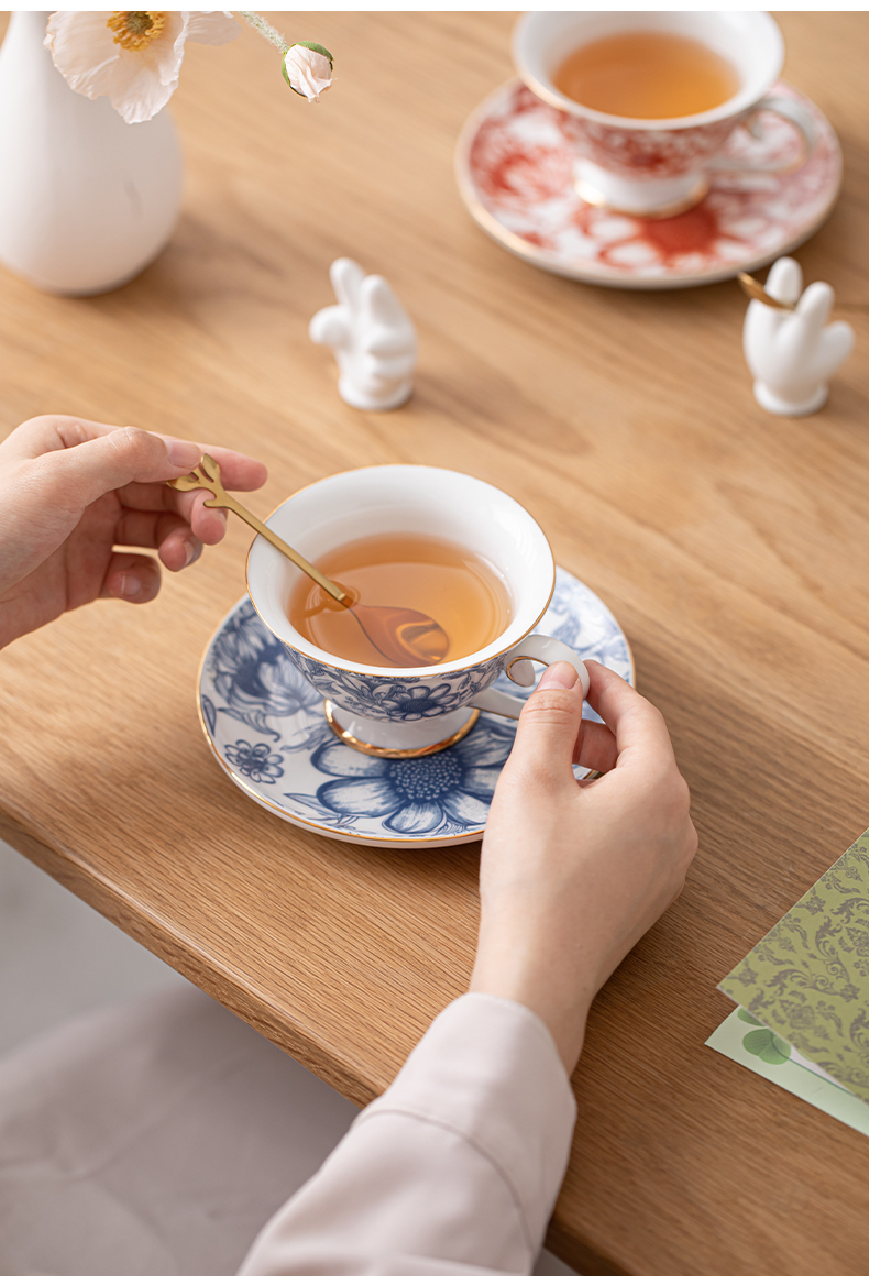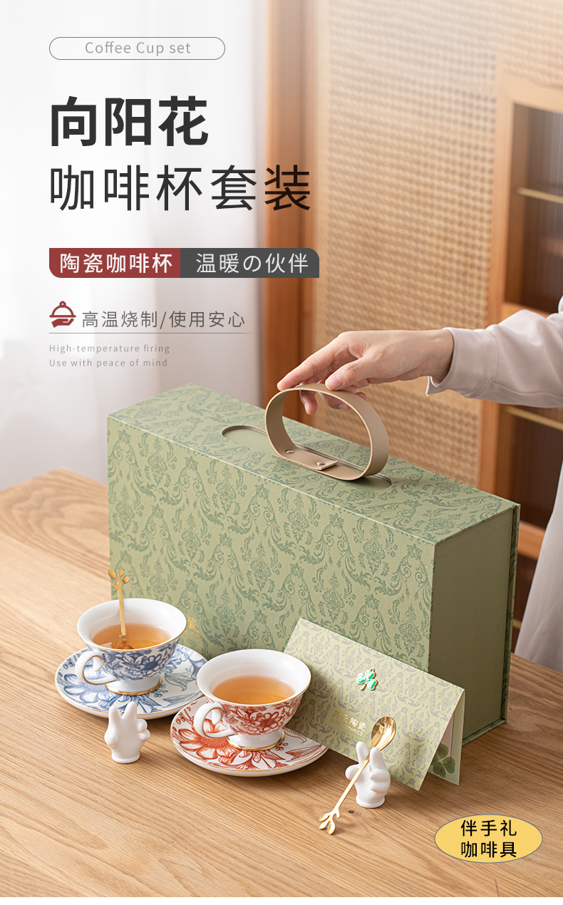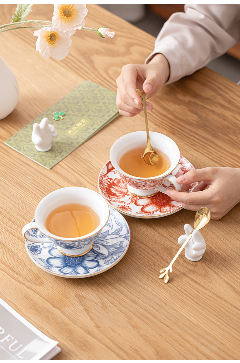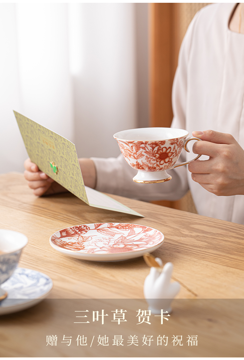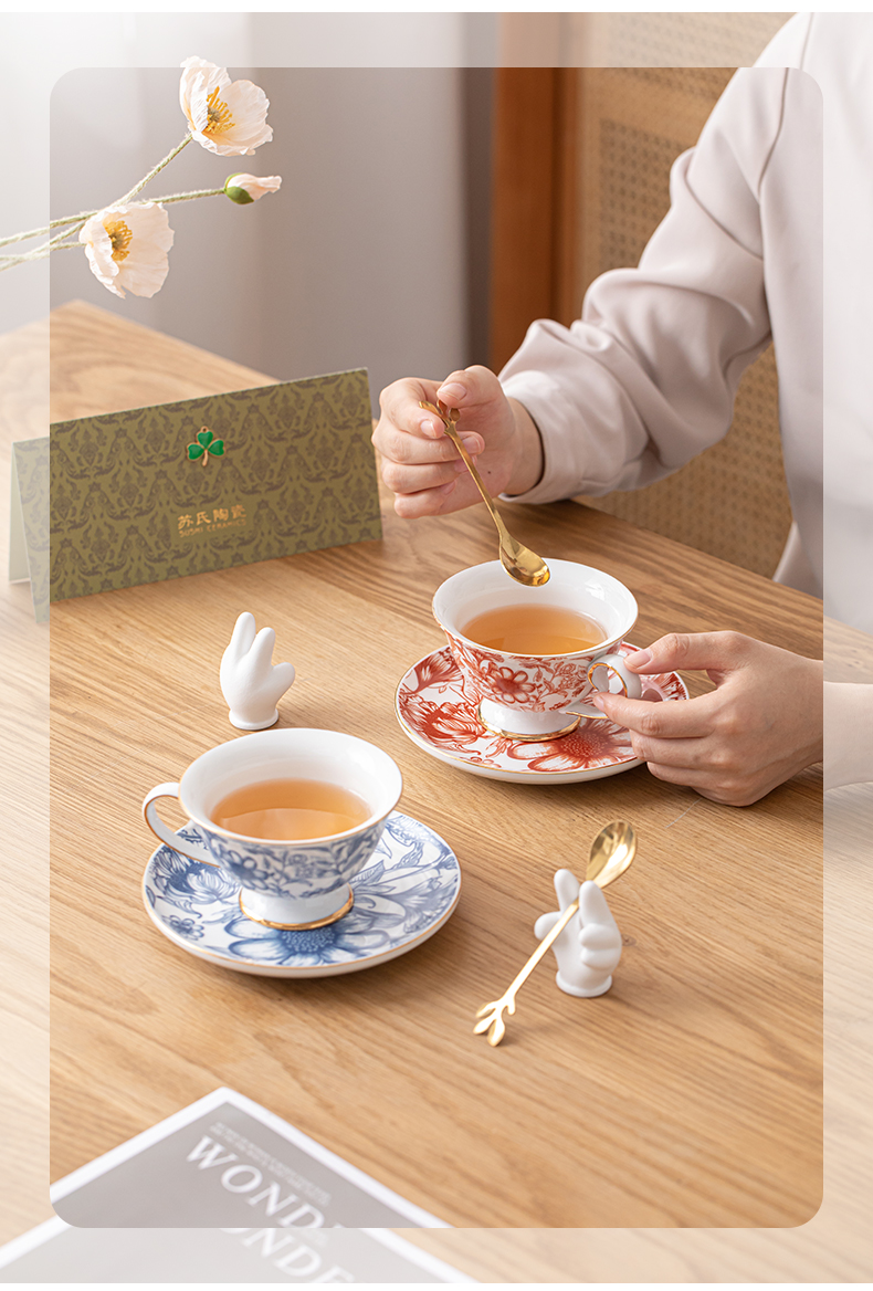 苏氏陶瓷(SUSHI CERAMICS)J1087咖啡杯碟套装向阳花英式情侣对杯(单位:套) 红色