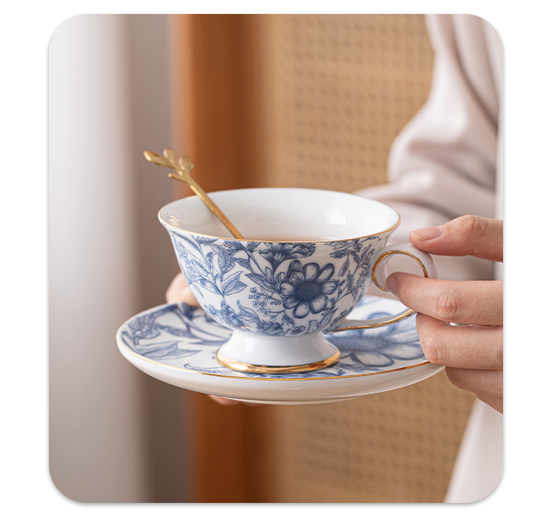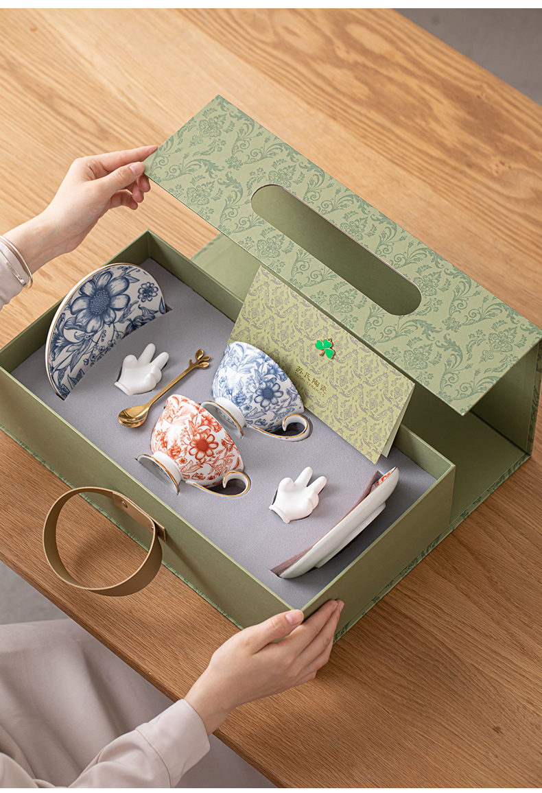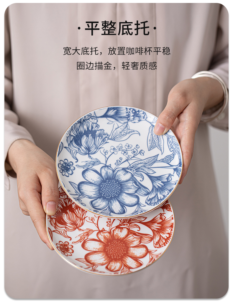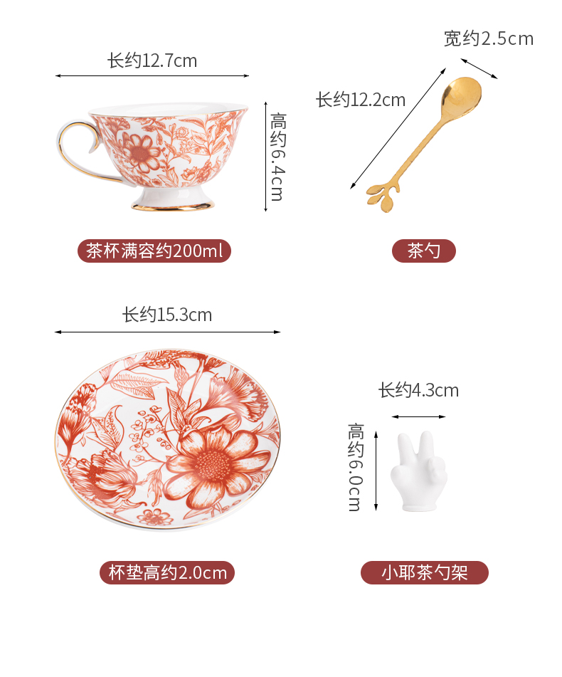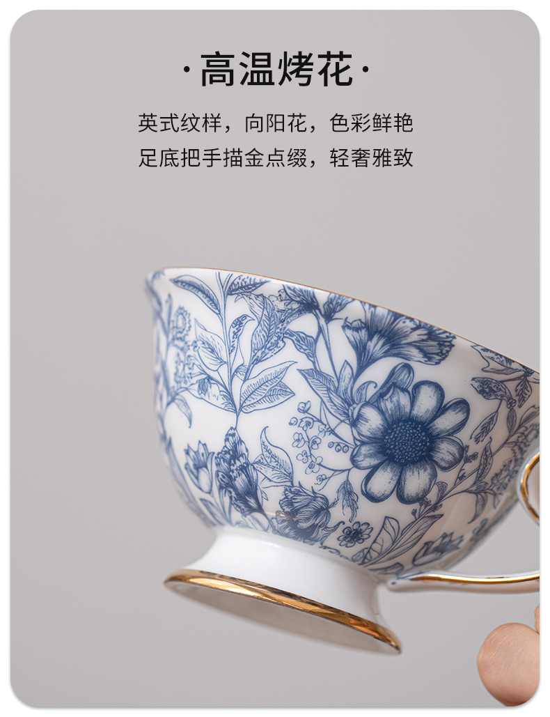 苏氏陶瓷(SUSHI CERAMICS)J1087咖啡杯碟套装向阳花英式情侣对杯(单位:套) 红色