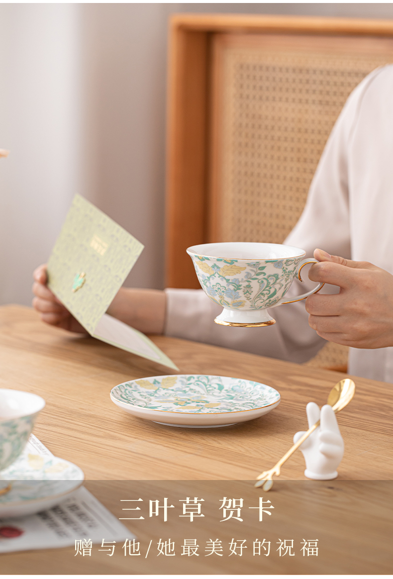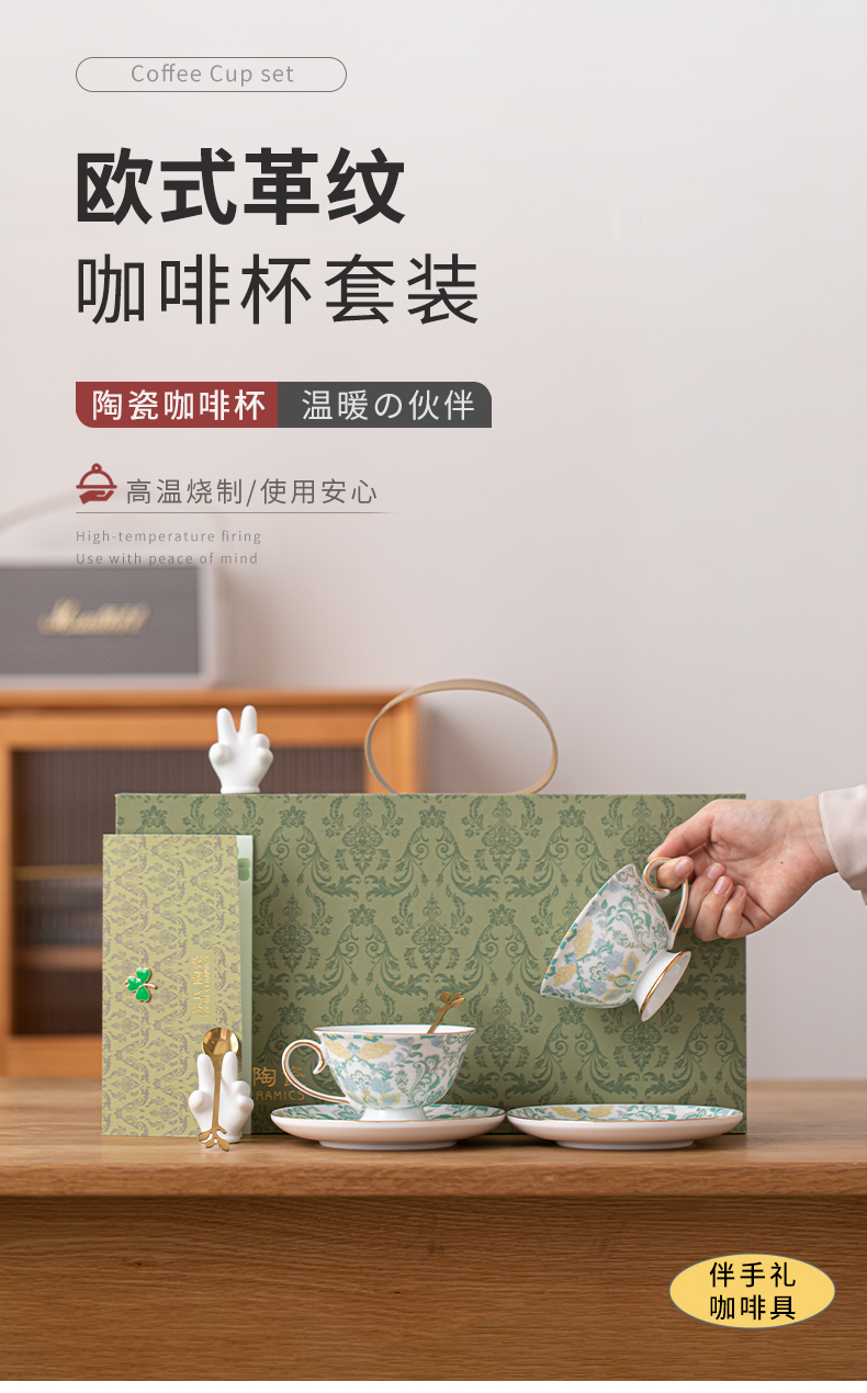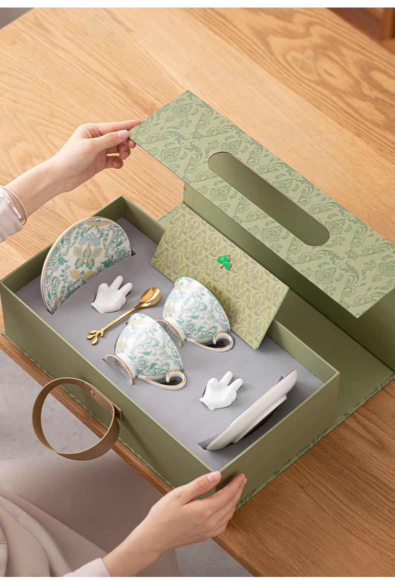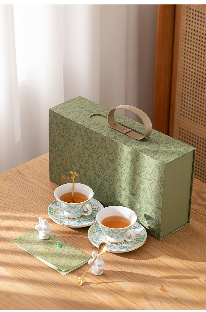 苏氏陶瓷(SUSHI CERAMICS)J1085咖啡杯碟套装革纹情侣轻奢伴手礼(单位:套) 浅杉绿