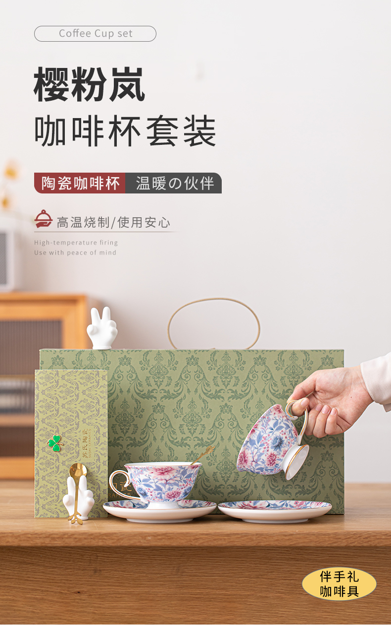 苏氏陶瓷(SUSHI CERAMICS)J1089咖啡杯碟套装樱粉岚结婚礼物乔伴手礼(单位:套) 混色