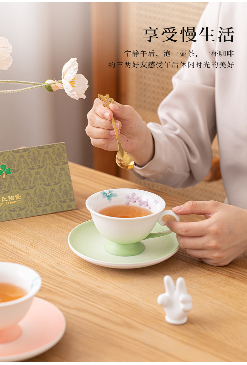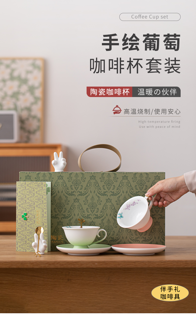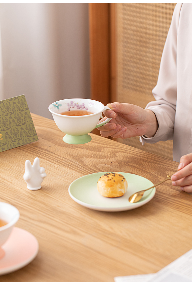 苏氏陶瓷(SUSHI CERAMICS)J1094手绘咖啡杯碟套装玫瑰葡萄结婚乔迁伴手礼(单位:套) 混色