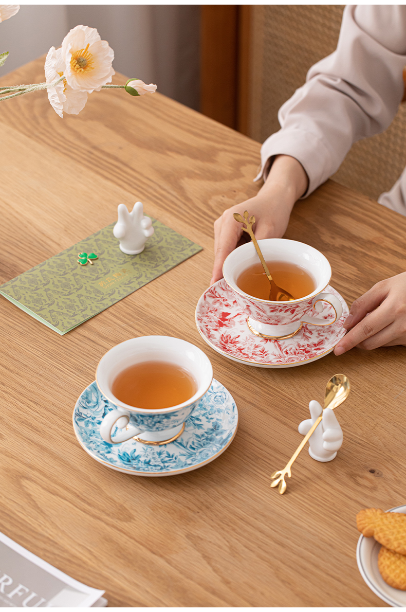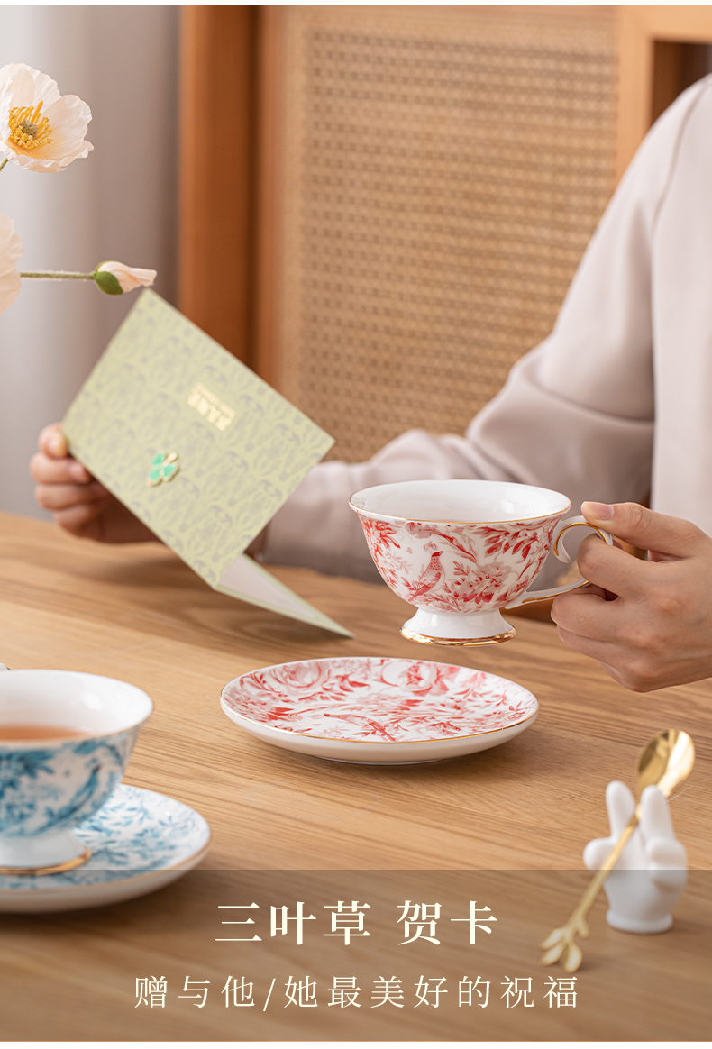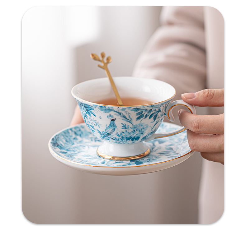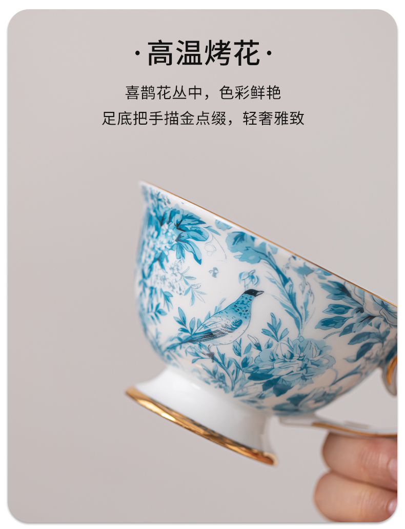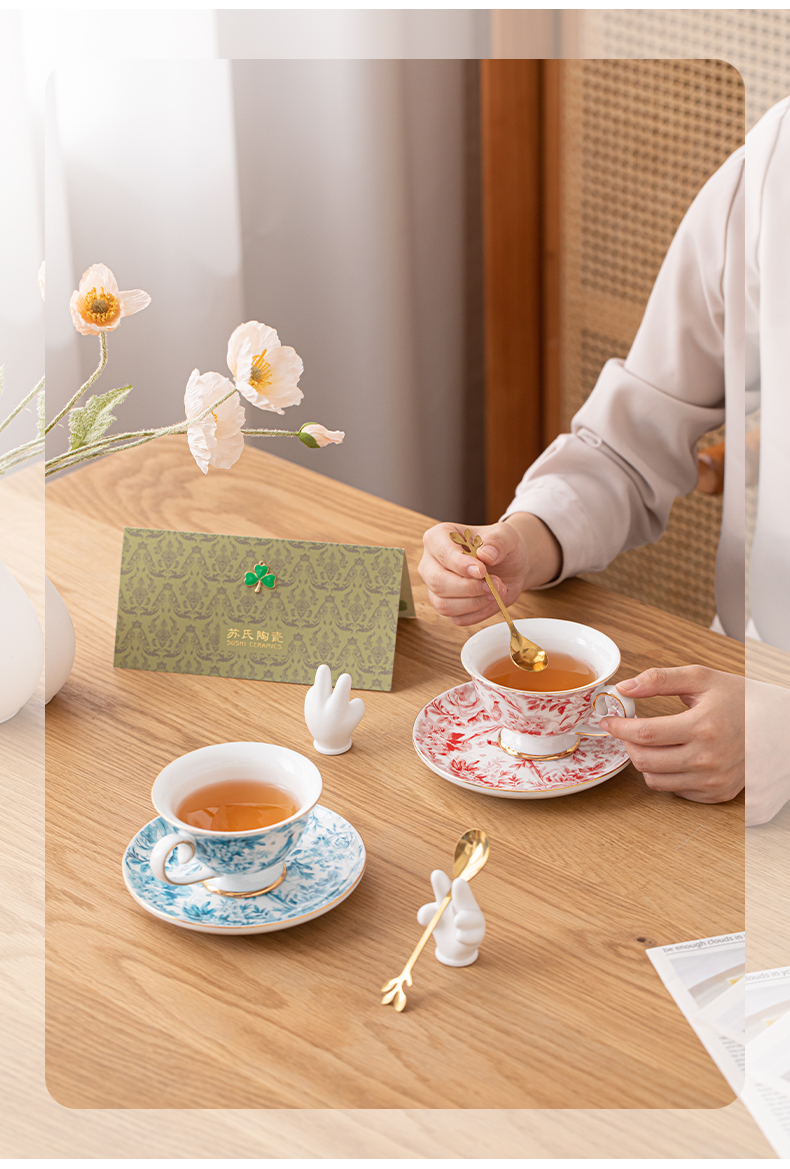 苏氏陶瓷(SUSHI CERAMICS)J1083咖啡杯碟套装花鹊轻奢生日乔迁伴手礼(单位:套) 混色