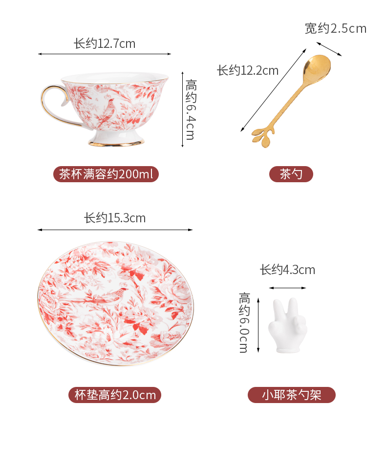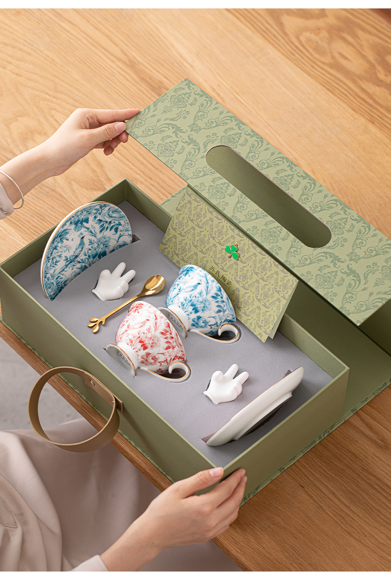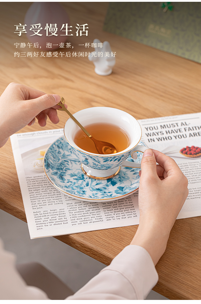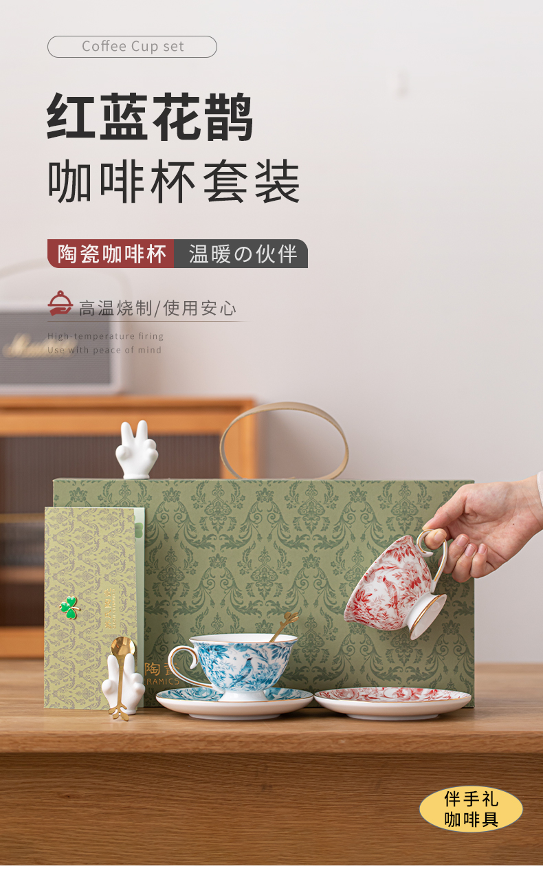 苏氏陶瓷(SUSHI CERAMICS)J1083咖啡杯碟套装花鹊轻奢生日乔迁伴手礼(单位:套) 混色
