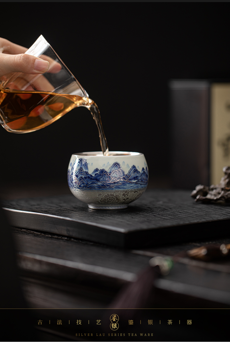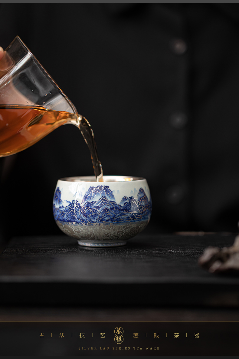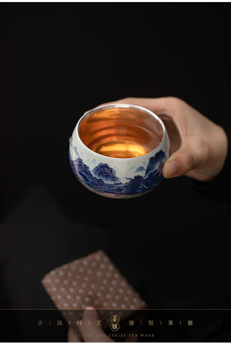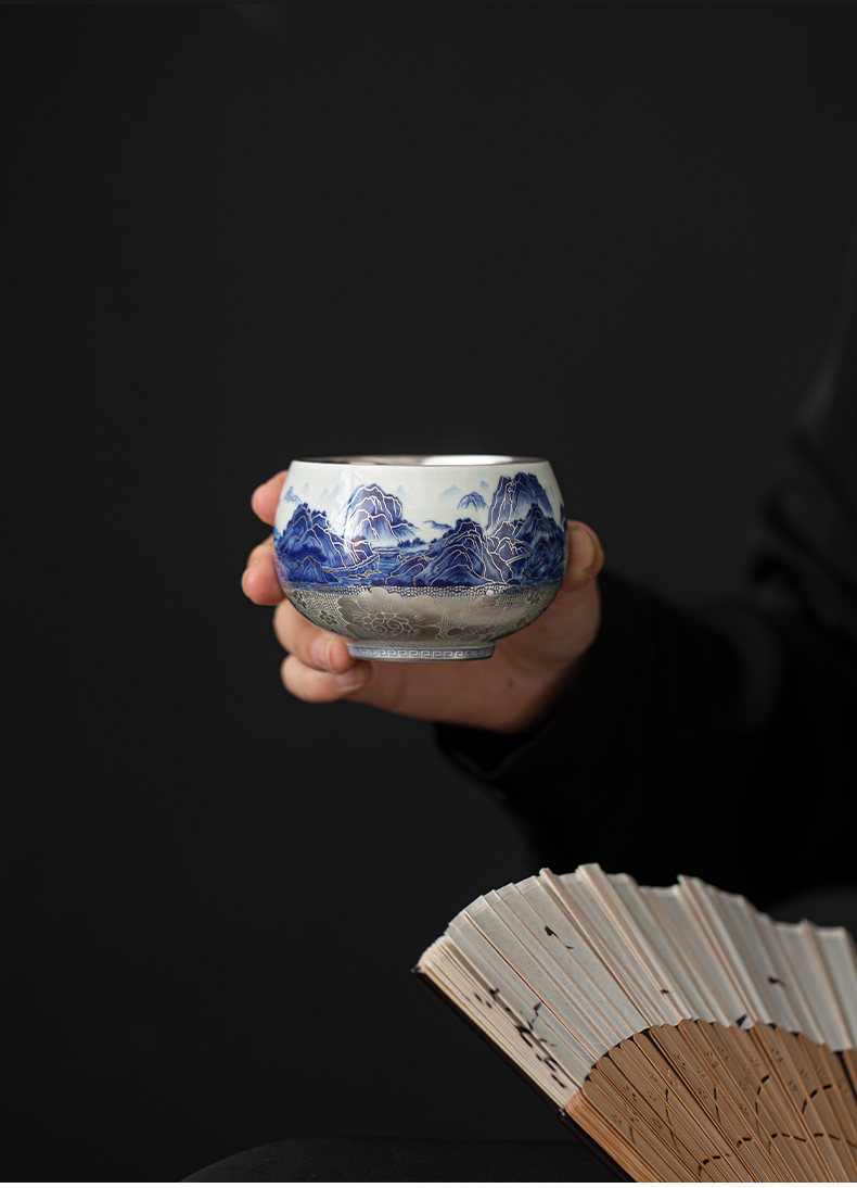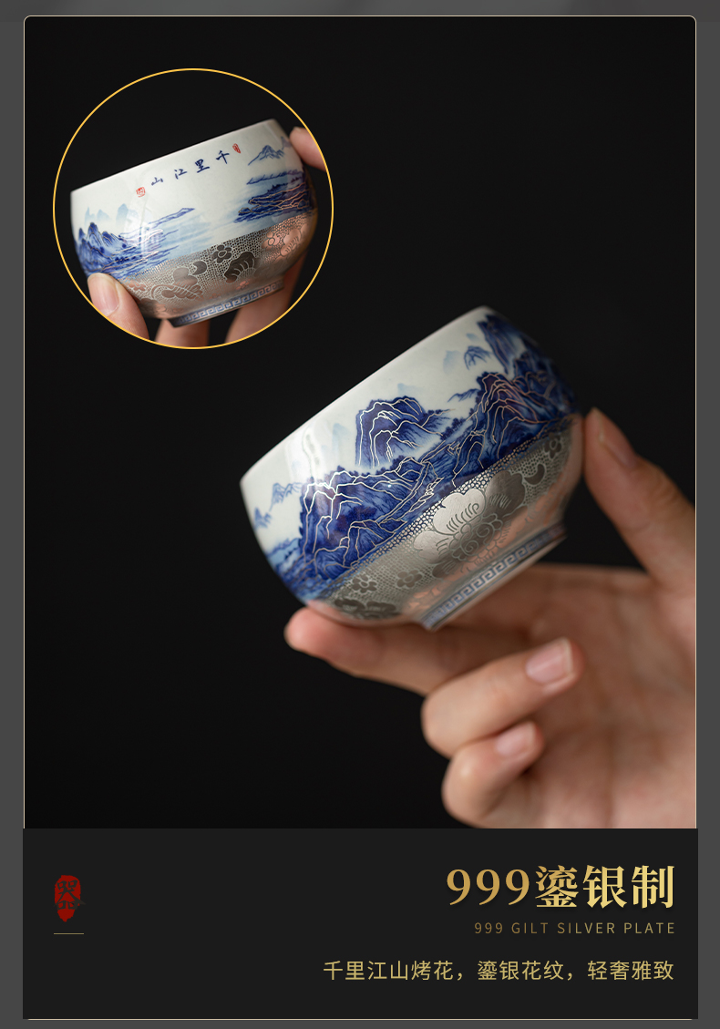 苏氏陶瓷(SUSHI CERAMICS)J1100鎏银千里江山茶杯郑文强作品(单位:个) 蓝色