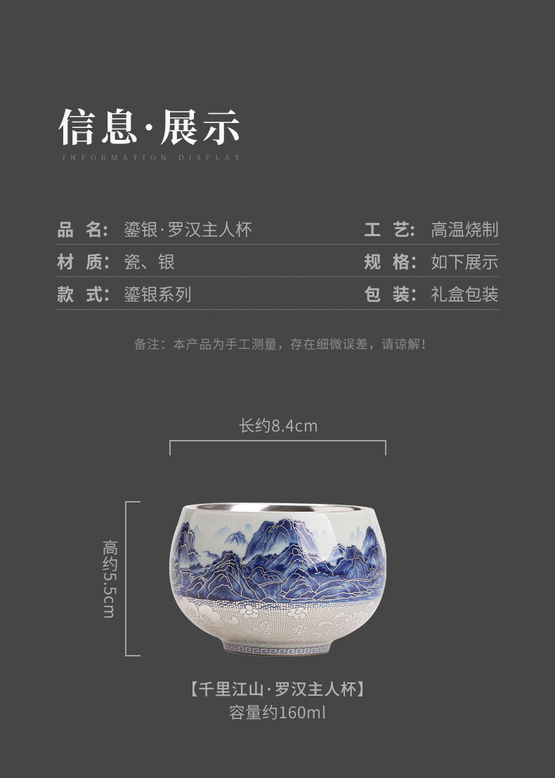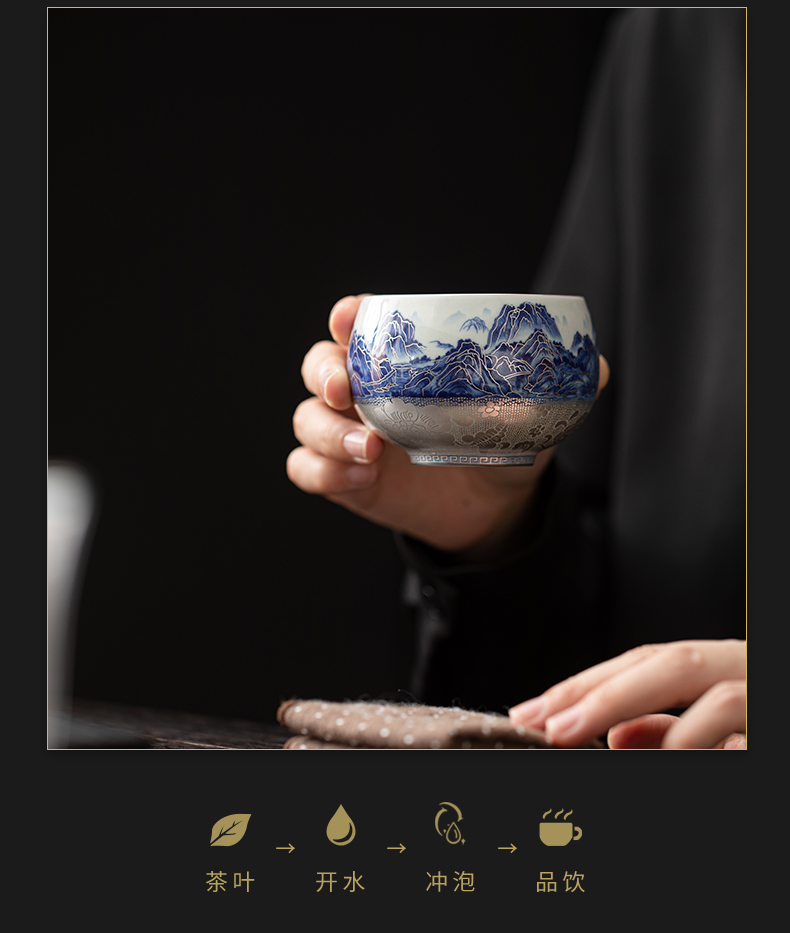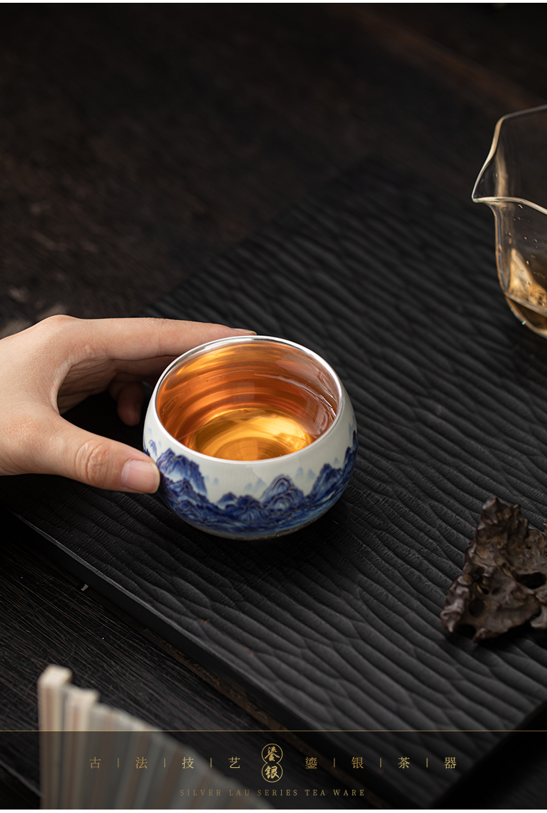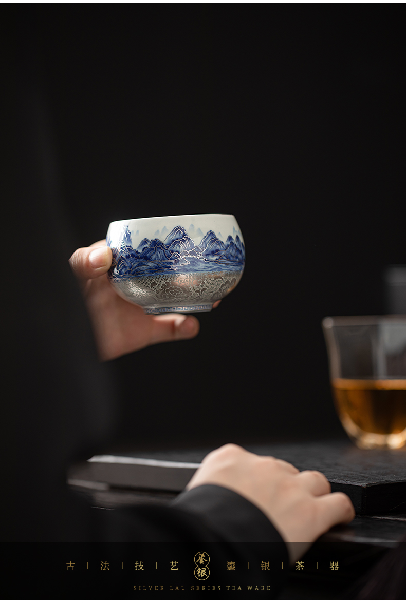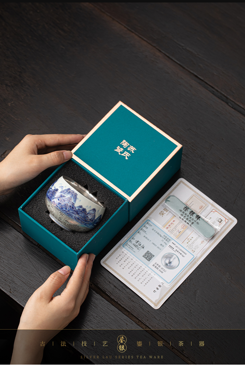 苏氏陶瓷(SUSHI CERAMICS)J1100鎏银千里江山茶杯郑文强作品(单位:个) 蓝色
