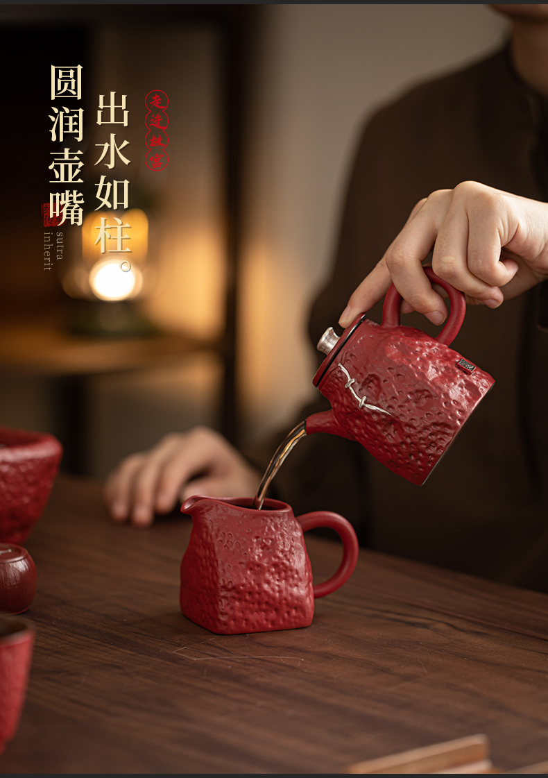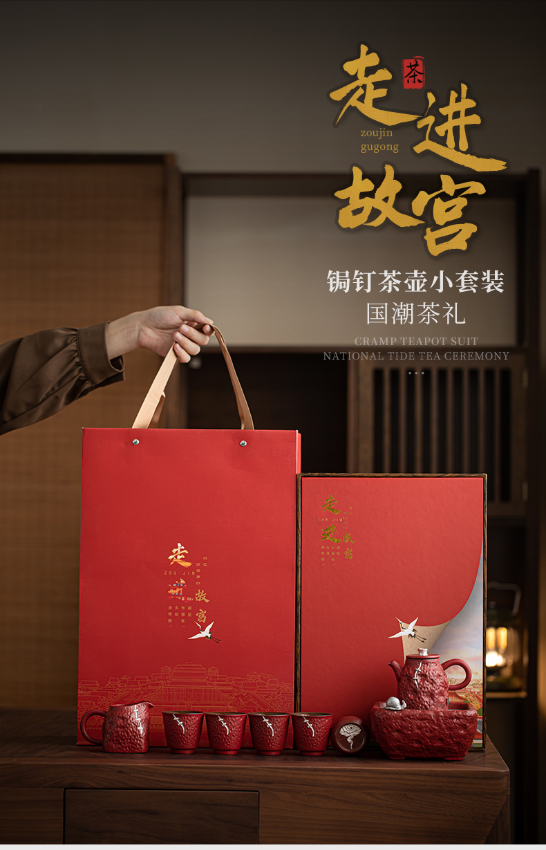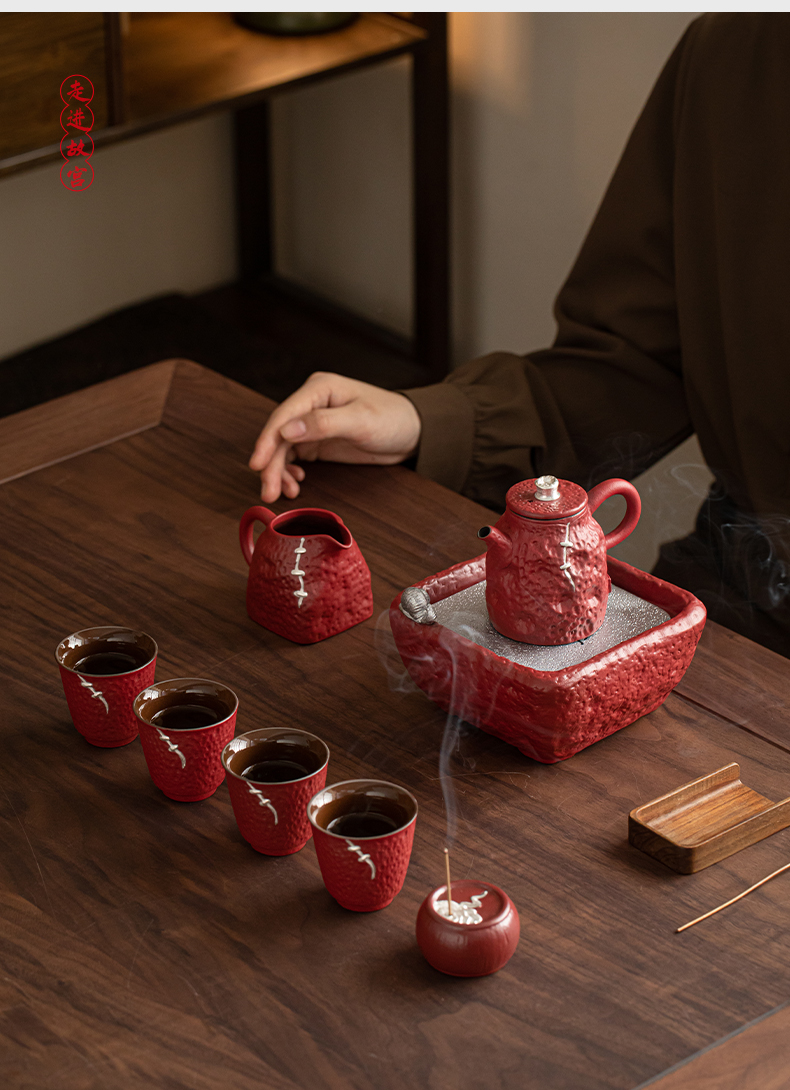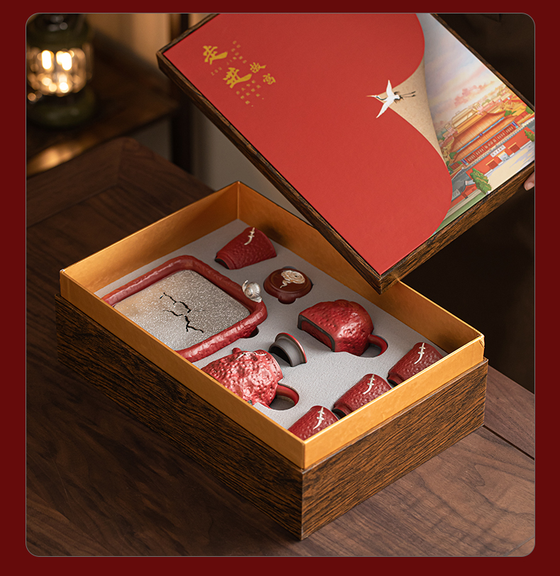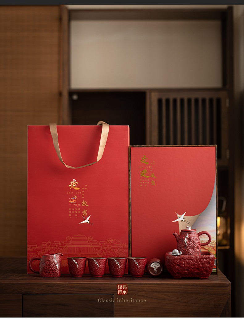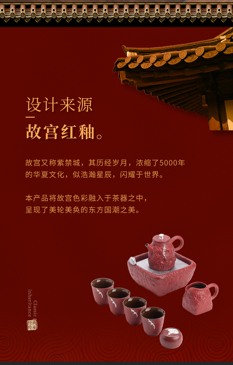 苏氏陶瓷(SUSHI CERAMICS)J1112走进故宫红茶具天佑壶复古茶具礼盒(单位:套) 红色