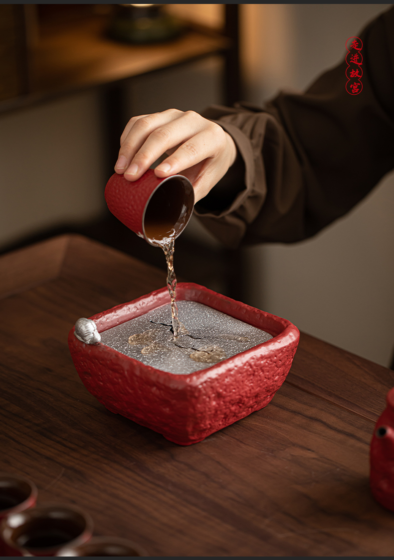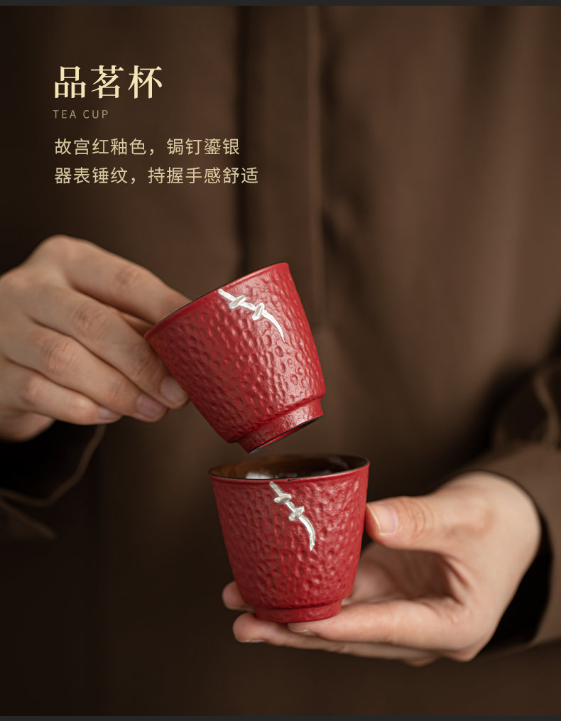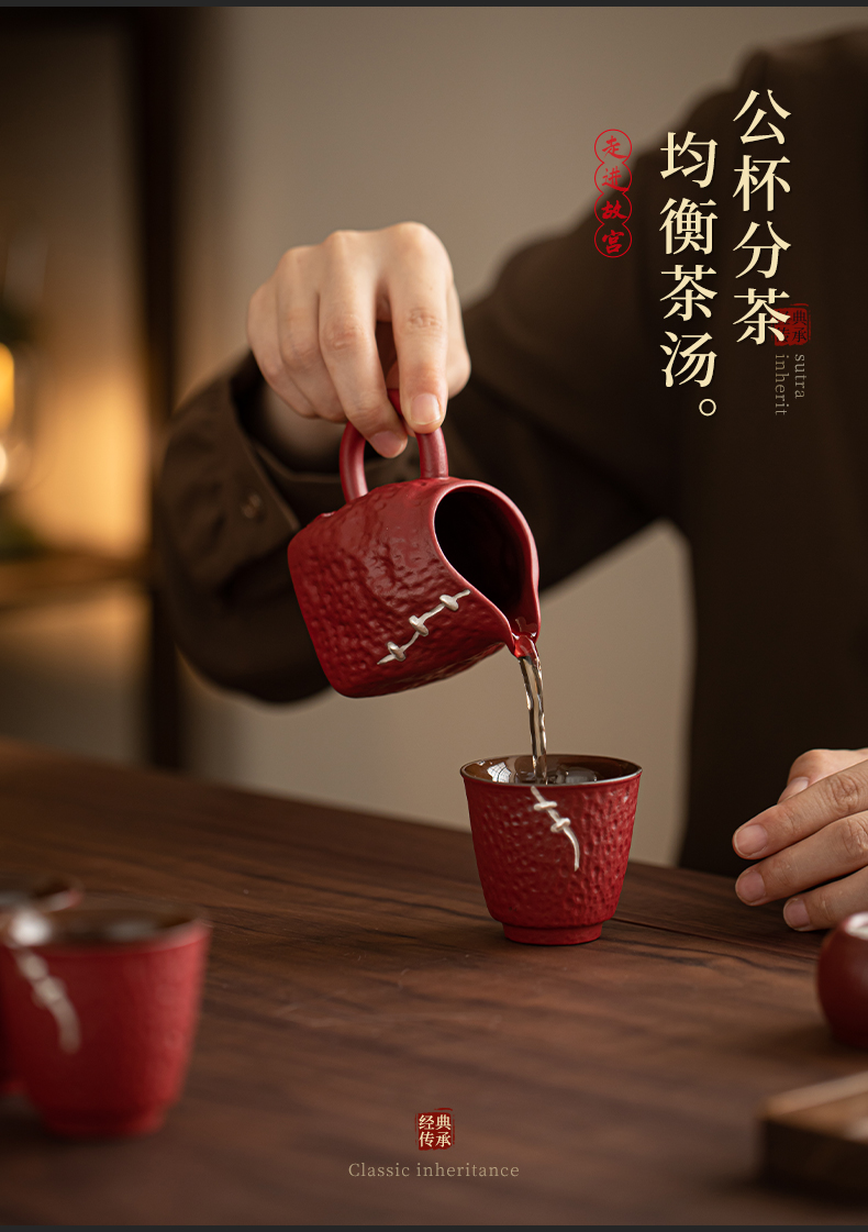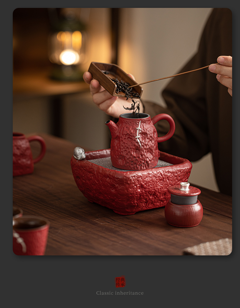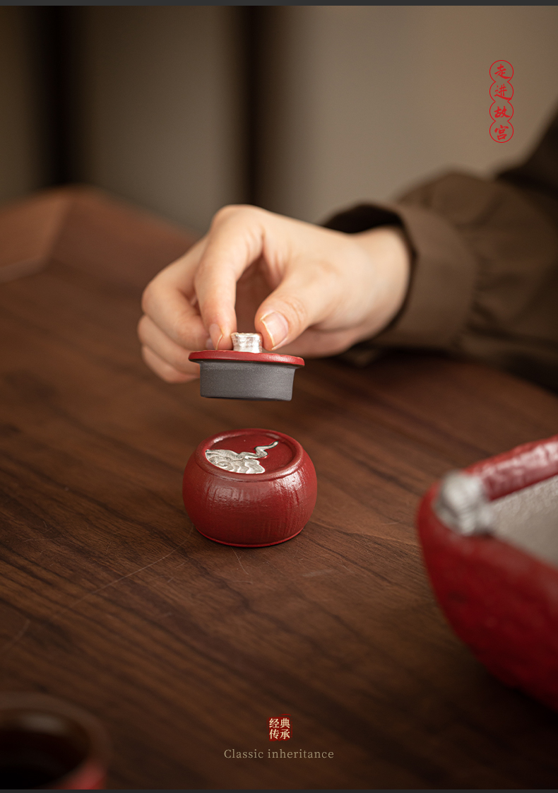 苏氏陶瓷(SUSHI CERAMICS)J1112走进故宫红茶具天佑壶复古茶具礼盒(单位:套) 红色
