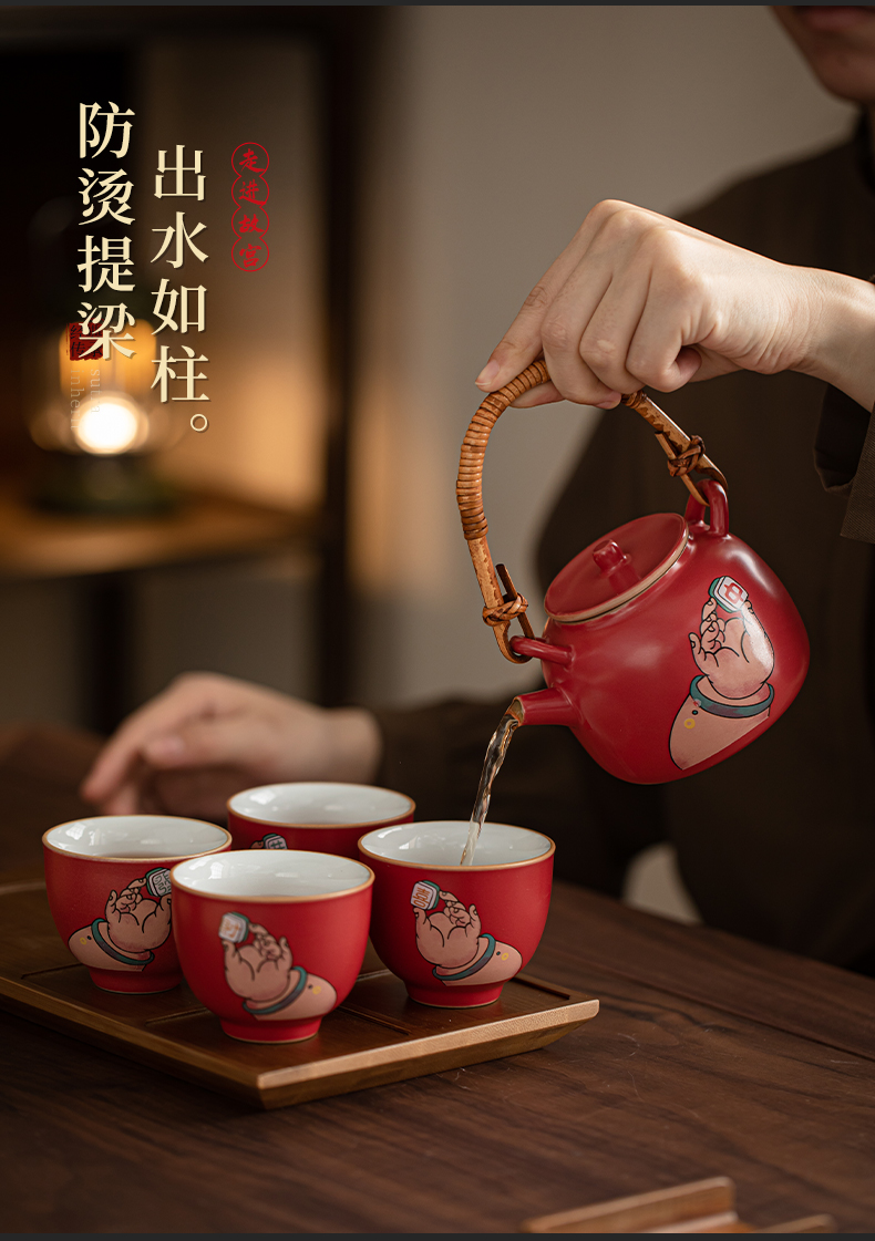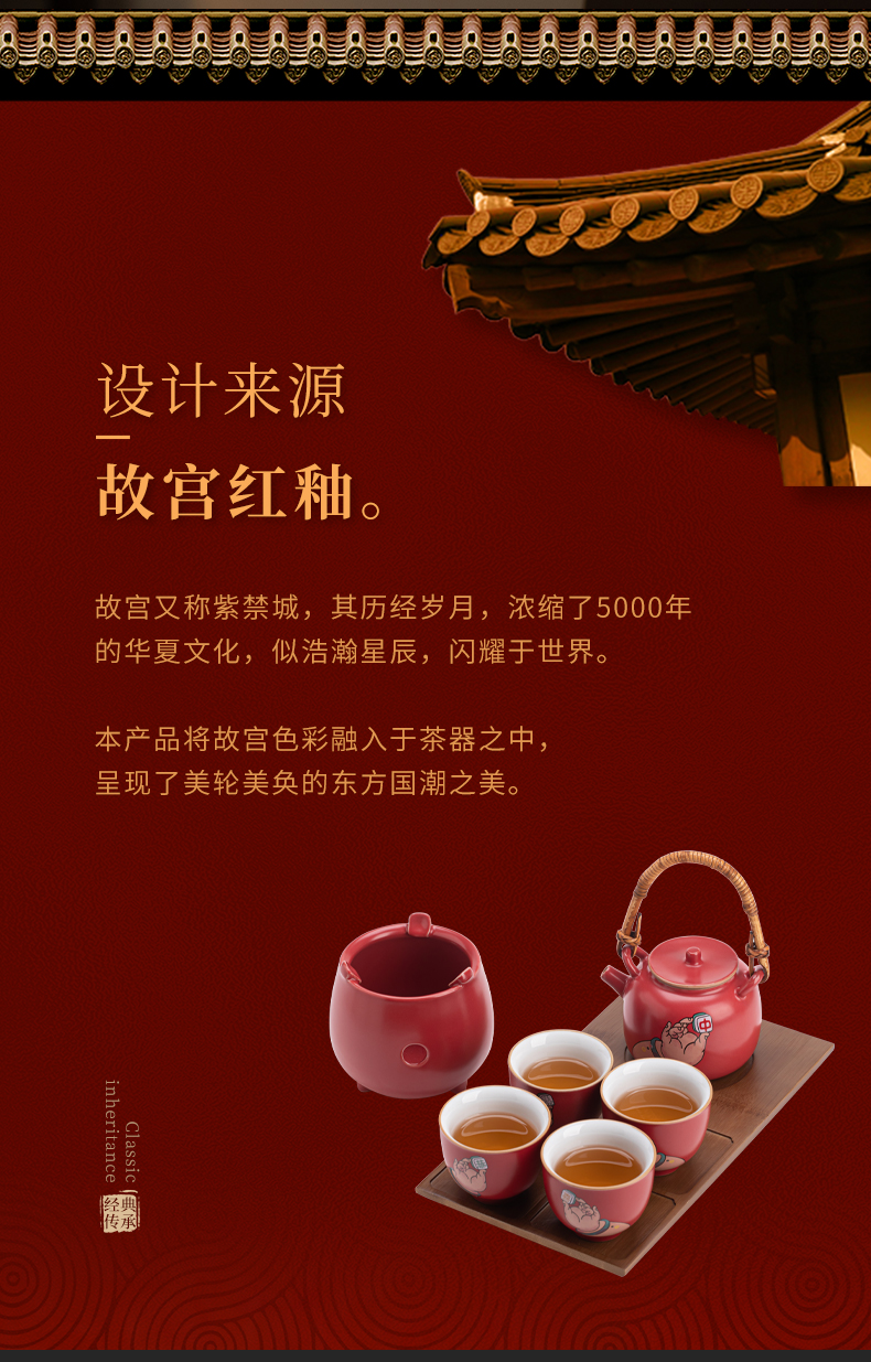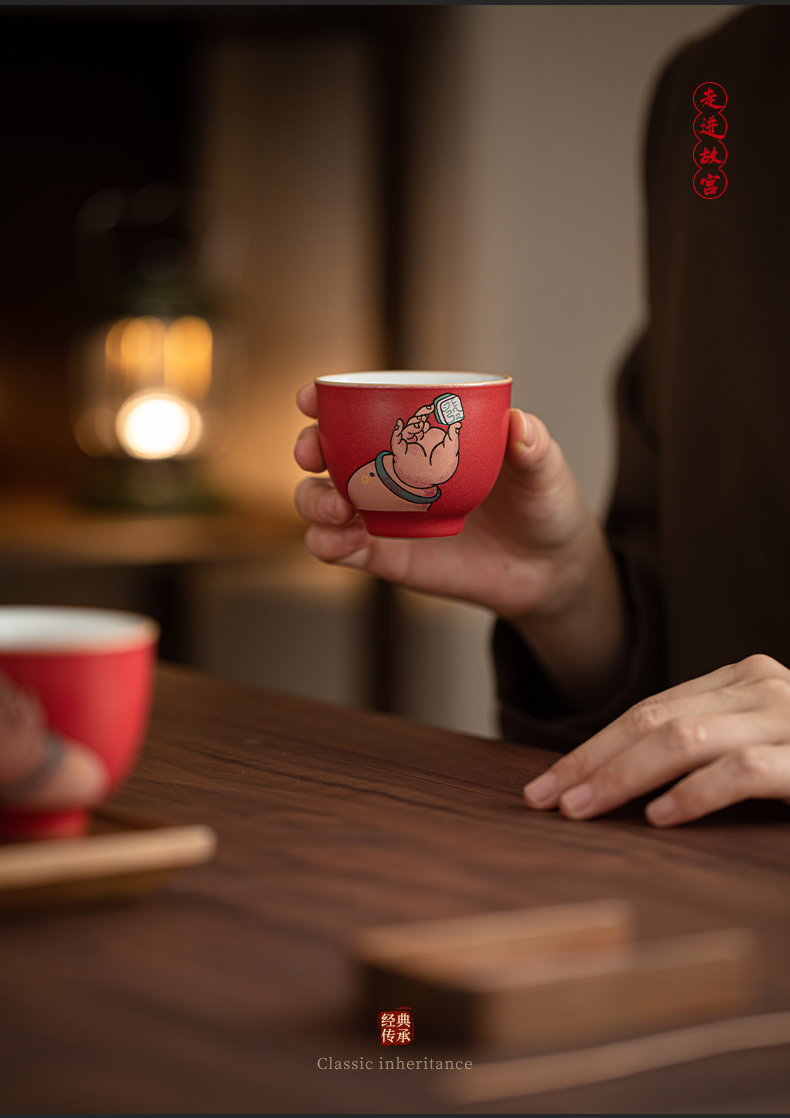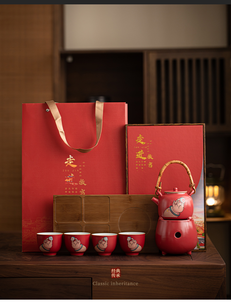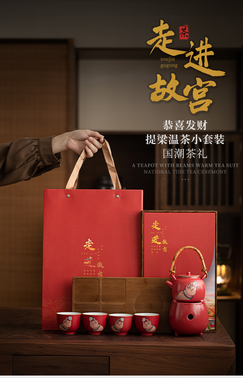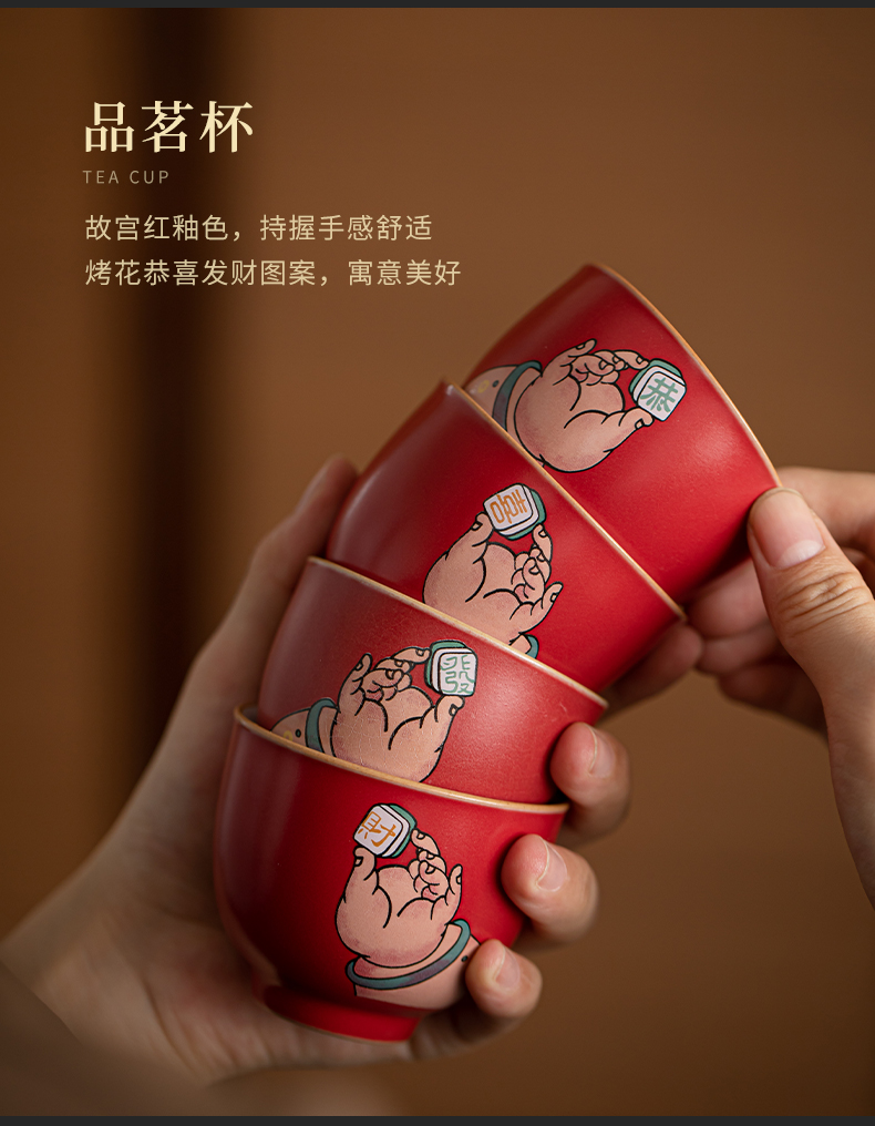 苏氏陶瓷(SUSHI CERAMICS)J1115走进故宫红心意恭喜发财茶具套装礼盒(单位:套) 红色