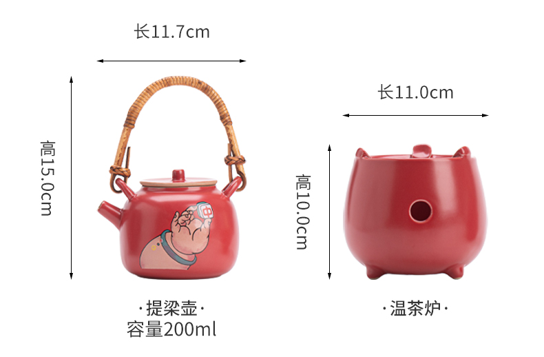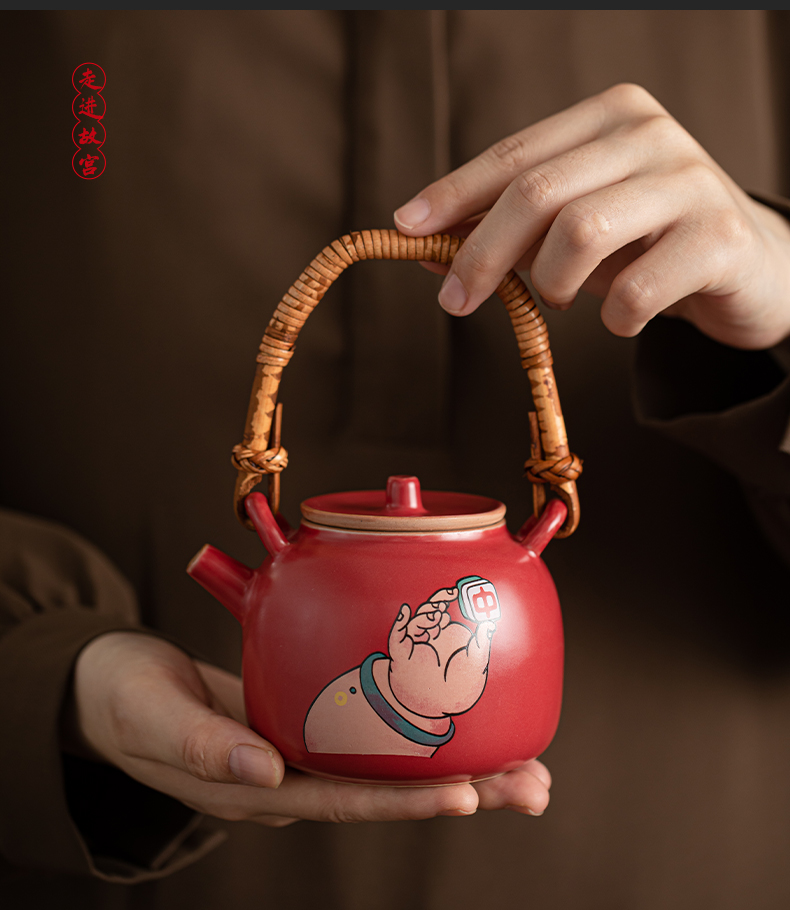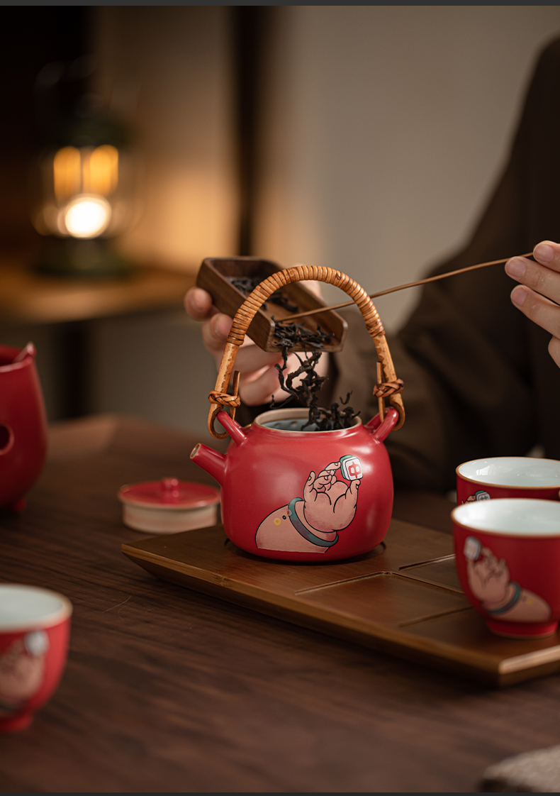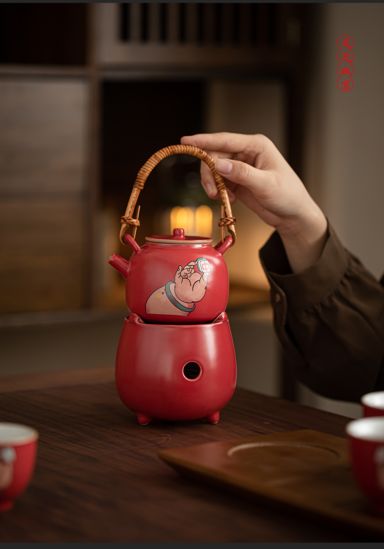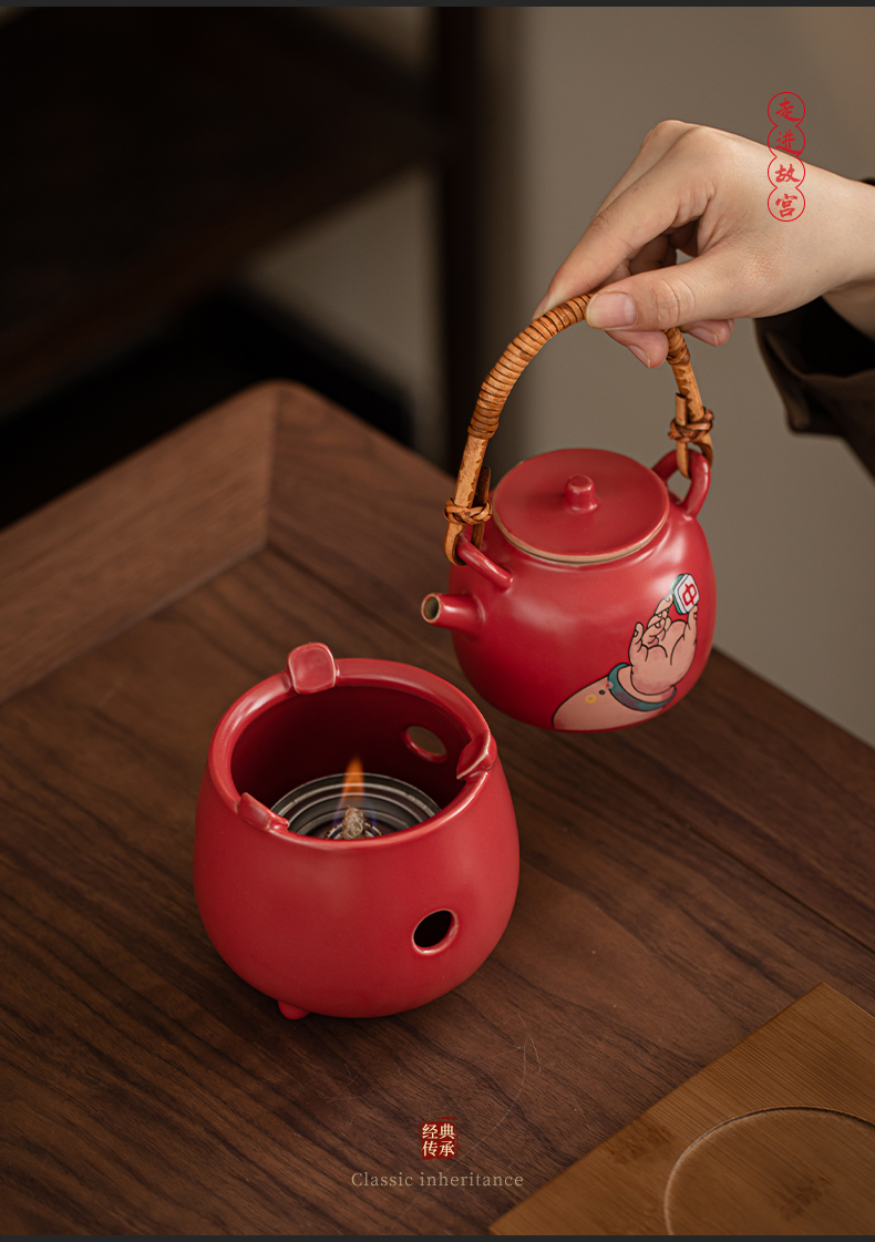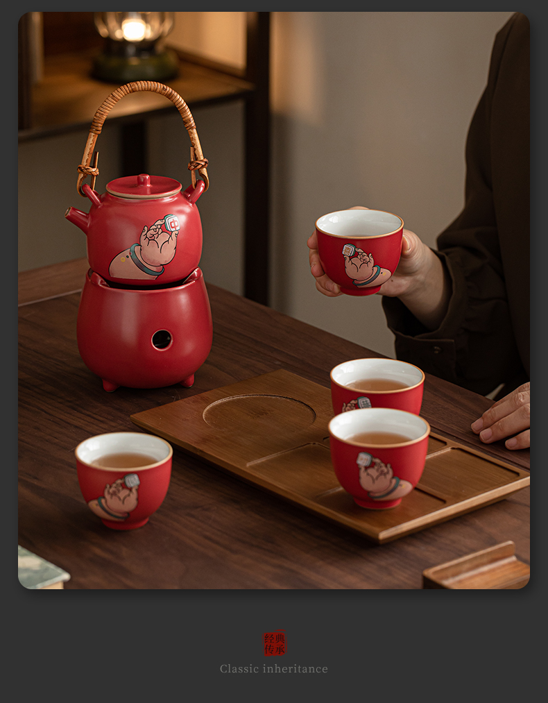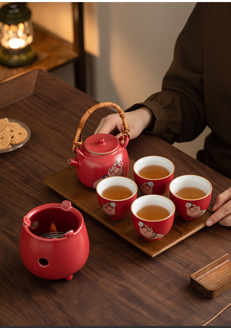 苏氏陶瓷(SUSHI CERAMICS)J1115走进故宫红心意恭喜发财茶具套装礼盒(单位:套) 红色