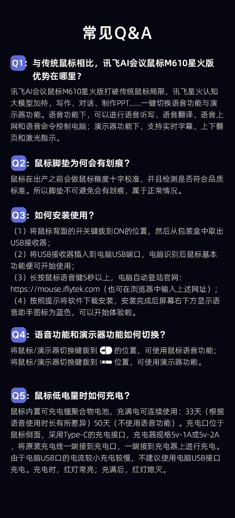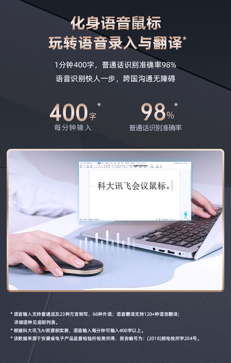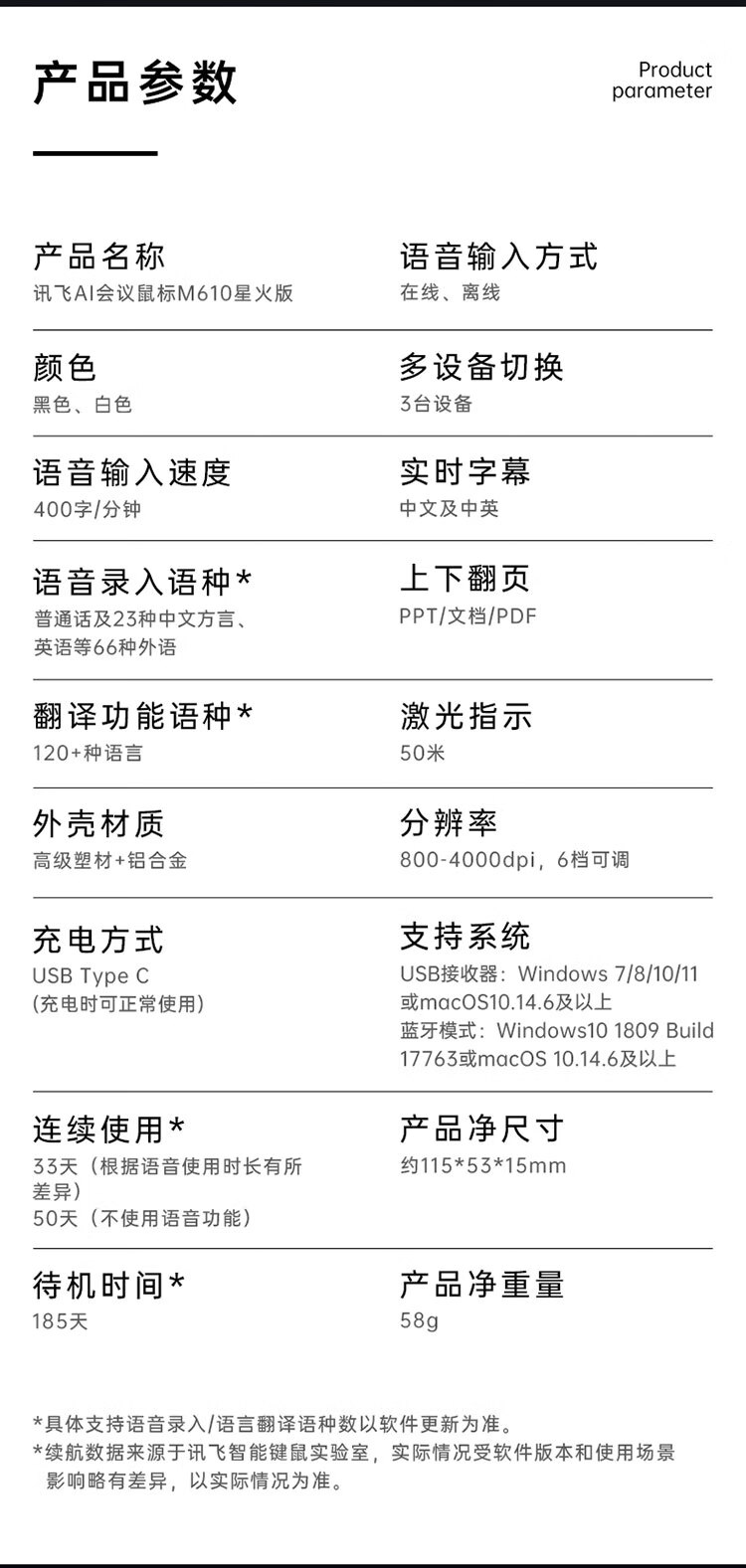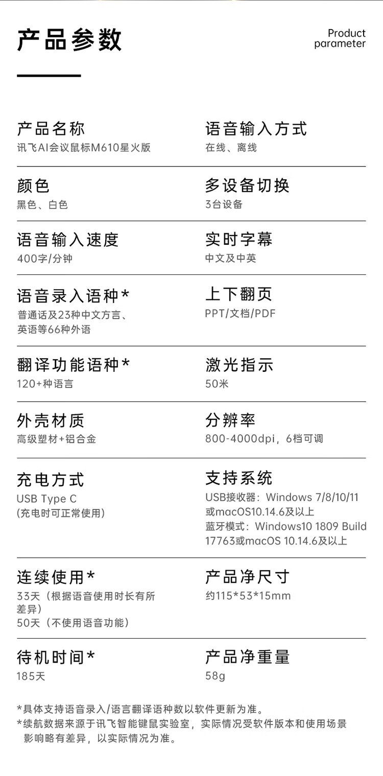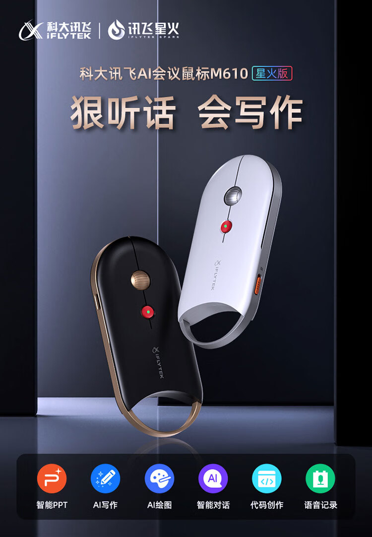 科大讯飞智能鼠标M610星火版皓月白(单位:台) M610星火版皓月白