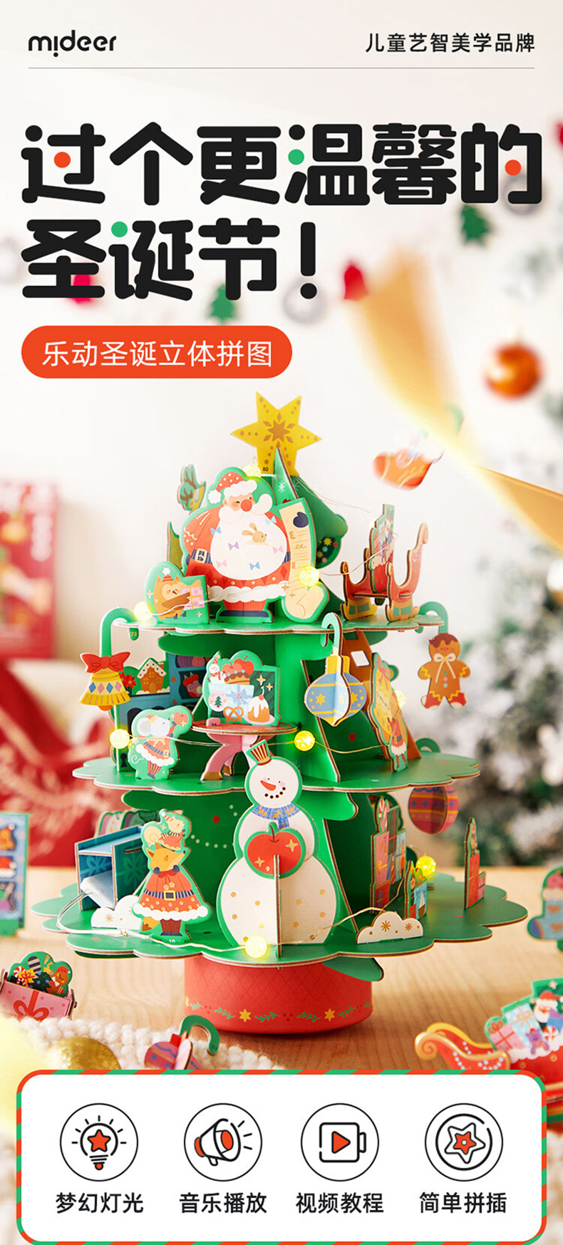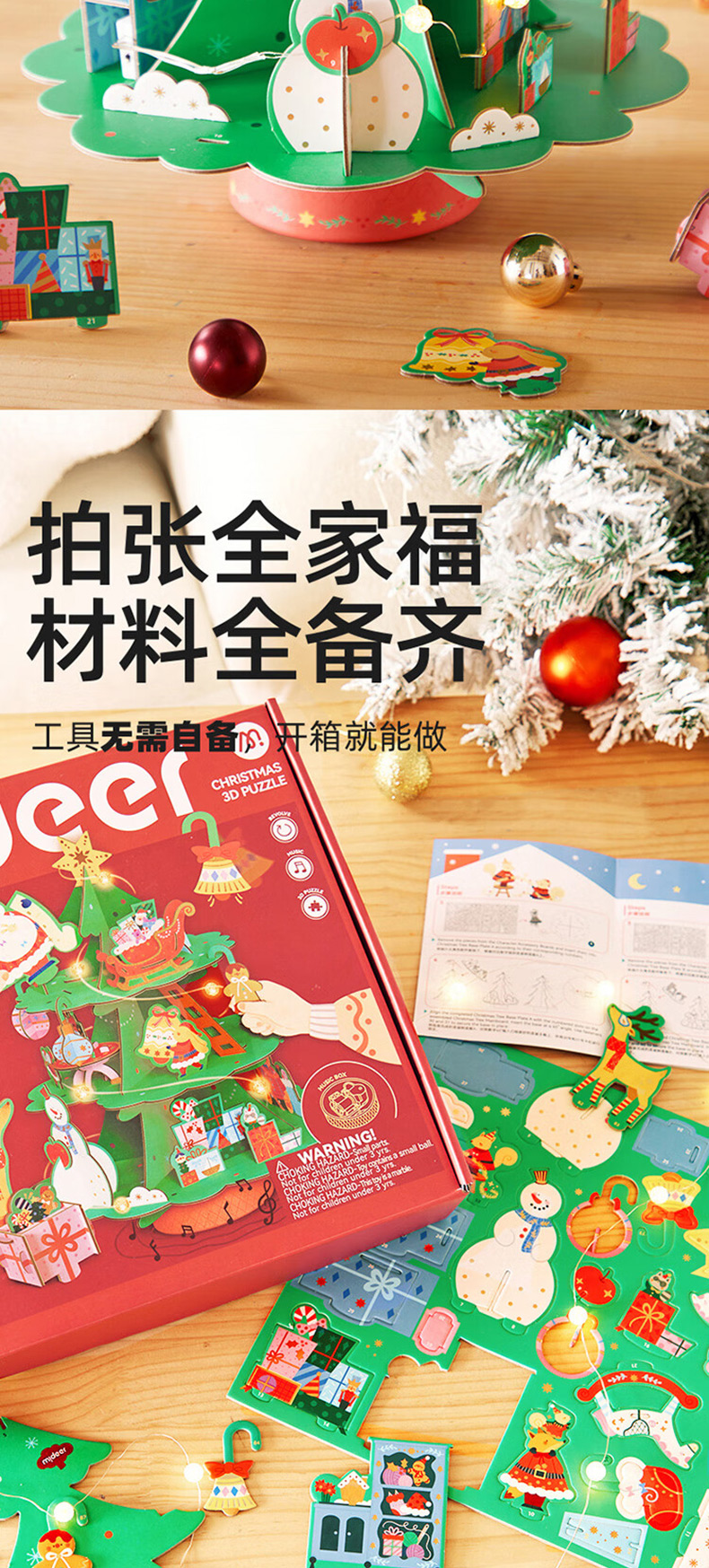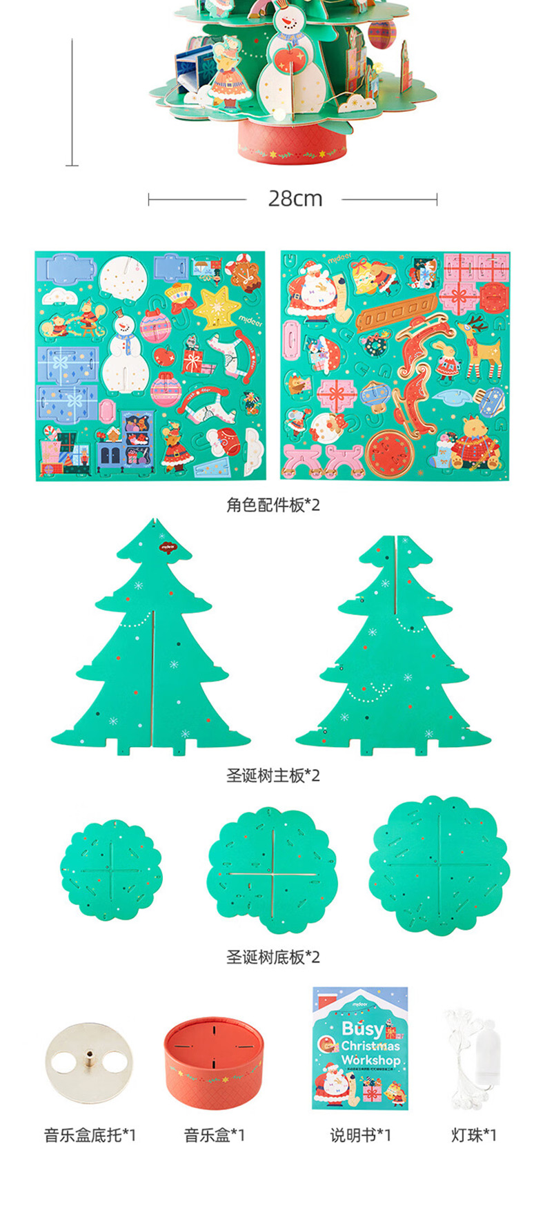 弥鹿mideer圣诞八音盒-圣诞乐动立体拼图忙忙碌碌圣诞工坊MD2299(单位:盒) 单色