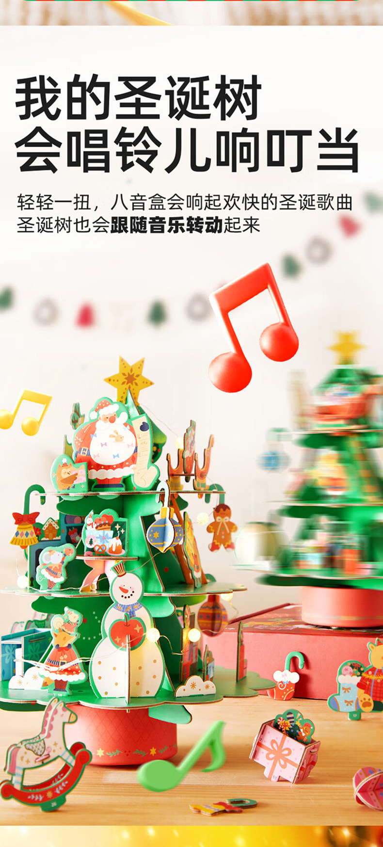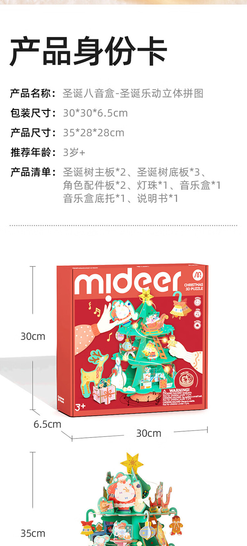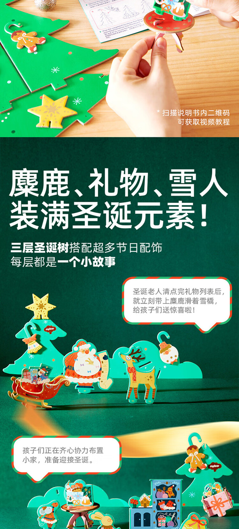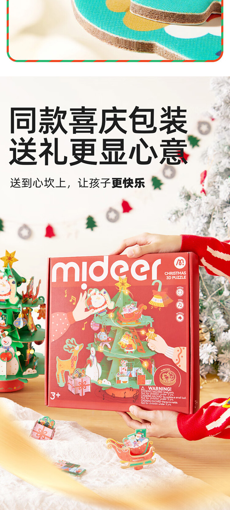 弥鹿mideer圣诞八音盒-圣诞乐动立体拼图忙忙碌碌圣诞工坊MD2299(单位:盒) 单色