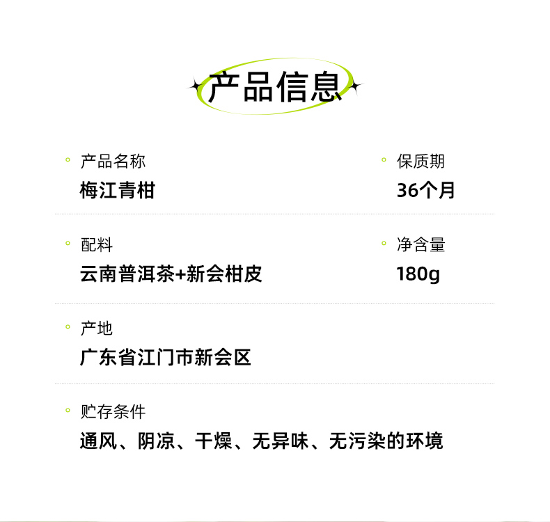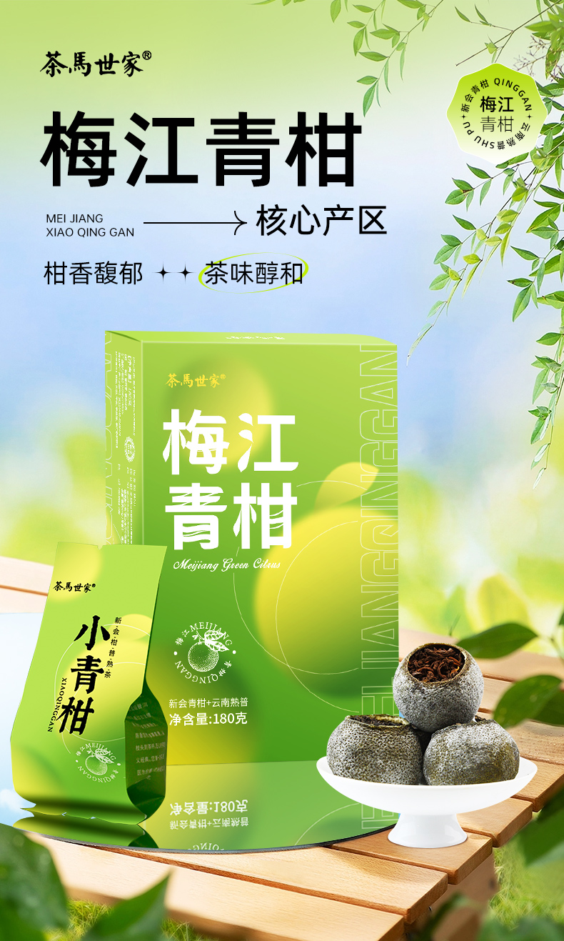 茶马世家梅江生晒小青柑盒装180g 单位:盒 雾雨绿