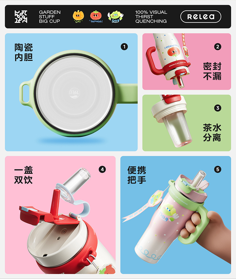 物生物(RELEA) JV012362-1300-JZ00 1300ml 大力水守保温杯 大橘为重陶瓷款(单位:个)