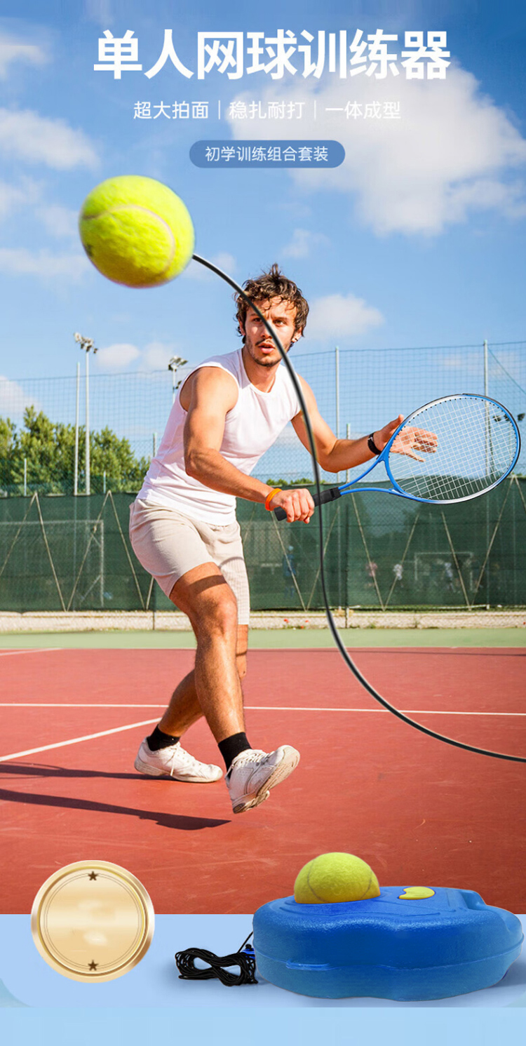 宏太(HongTai)五星专业级网球训练器单人打回弹带线初学者一个人专业网球拍 (单位:套) HT-03WB-蓝色双人拍套装