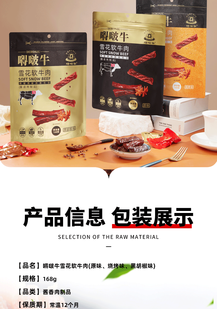嘚啵牛雪花软牛肉原味168g(单位:袋) 香槟色
