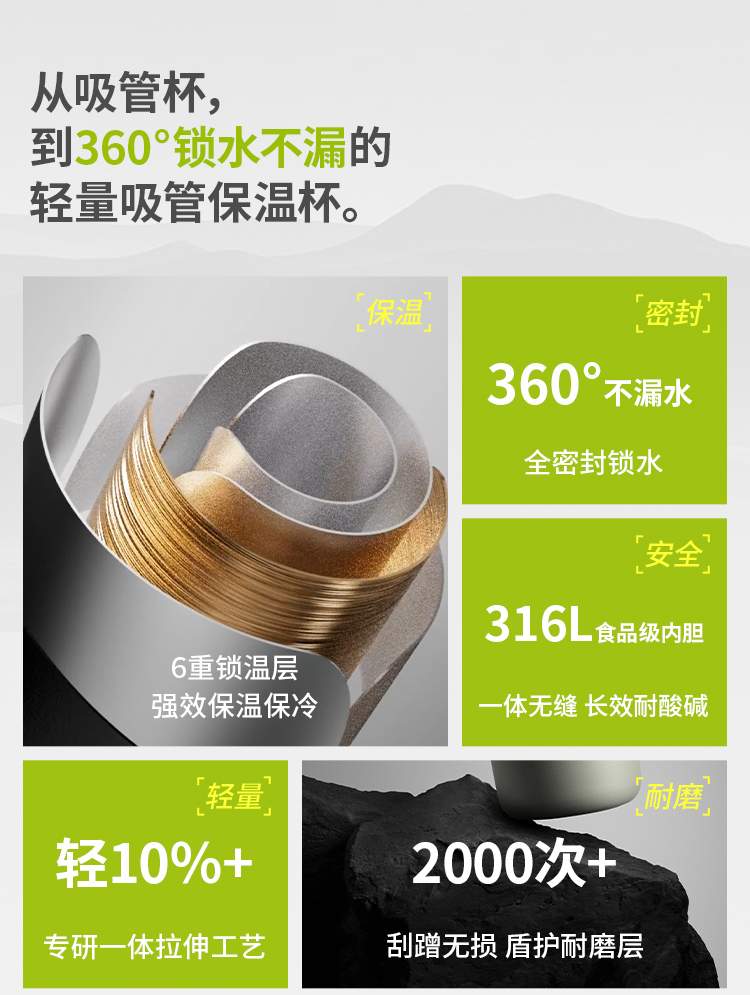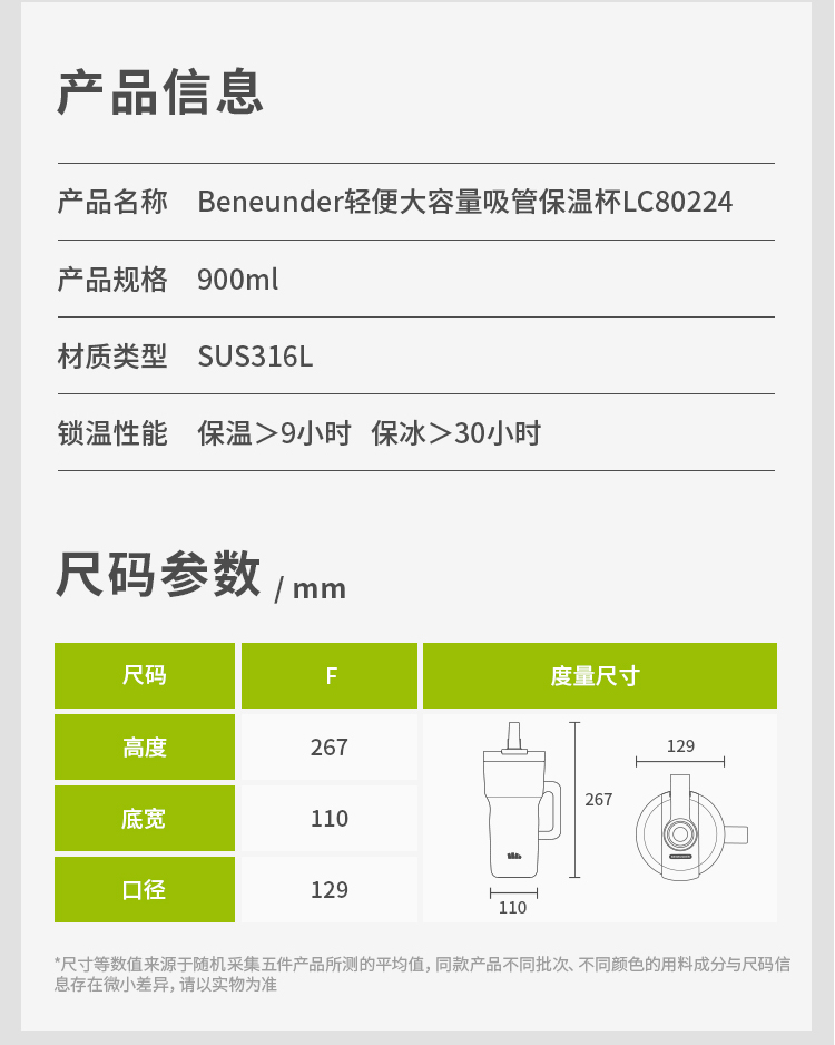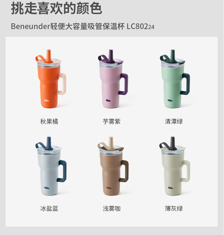 蕉下(beneunder)轻便大容量吸管保温杯LC80224(单位:个) 清潭绿
