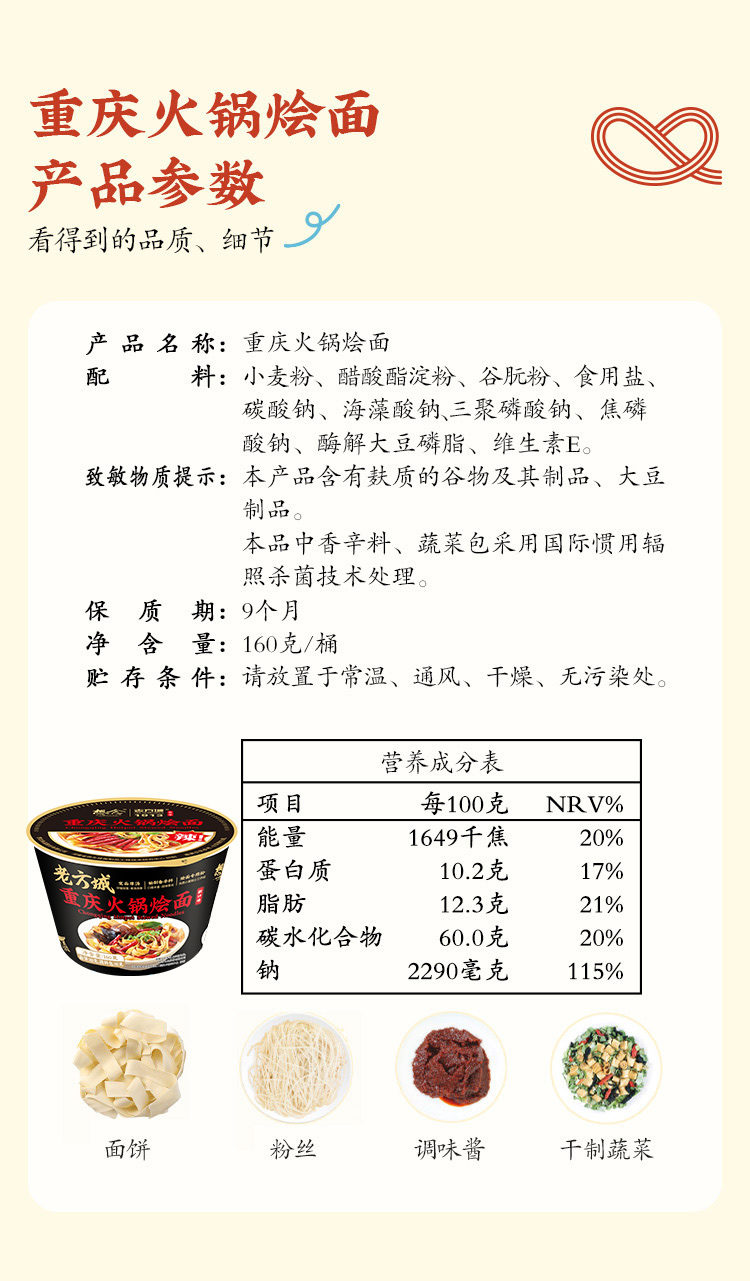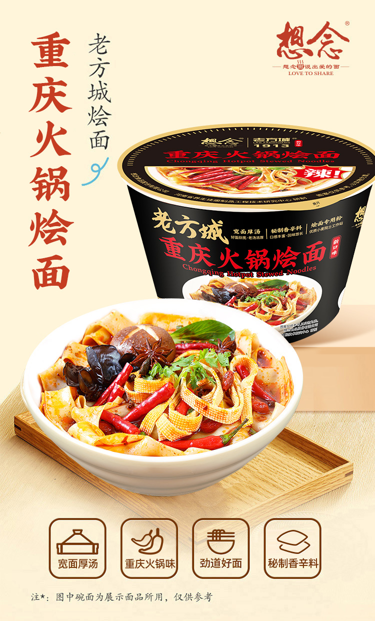 想念老方城重庆火锅烩面160g*6桶 曜石黑